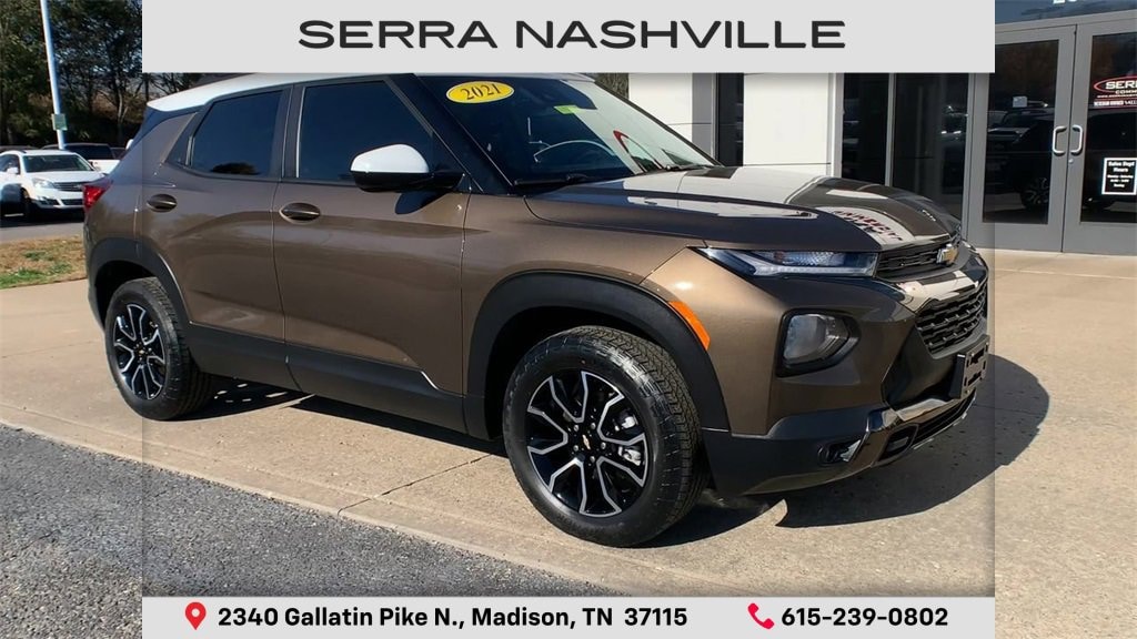 Recent Arrival! Clean CARFAX.Zeus Bronze Metallic 2021 Chevrolet TrailBlazer ACTIV 4D Sport Utility AWD 1.3L Ecotec Turbo DOHC SIDI w/VVT 9-Speed Automatic26/30 City/Highway MPGVisit the #1 Volume GM dealer in Tennessee - 2340 Gallatin Pike North.Serving the greater Nashville Area. Now serving Antioch, TN - Clarksville, TN - Murfreesboro, TN - Springfield, TN.Awards:* 2021 IIHS Top Safety Pick+ * Ward's 10 Best Engines and Propulsion Systems