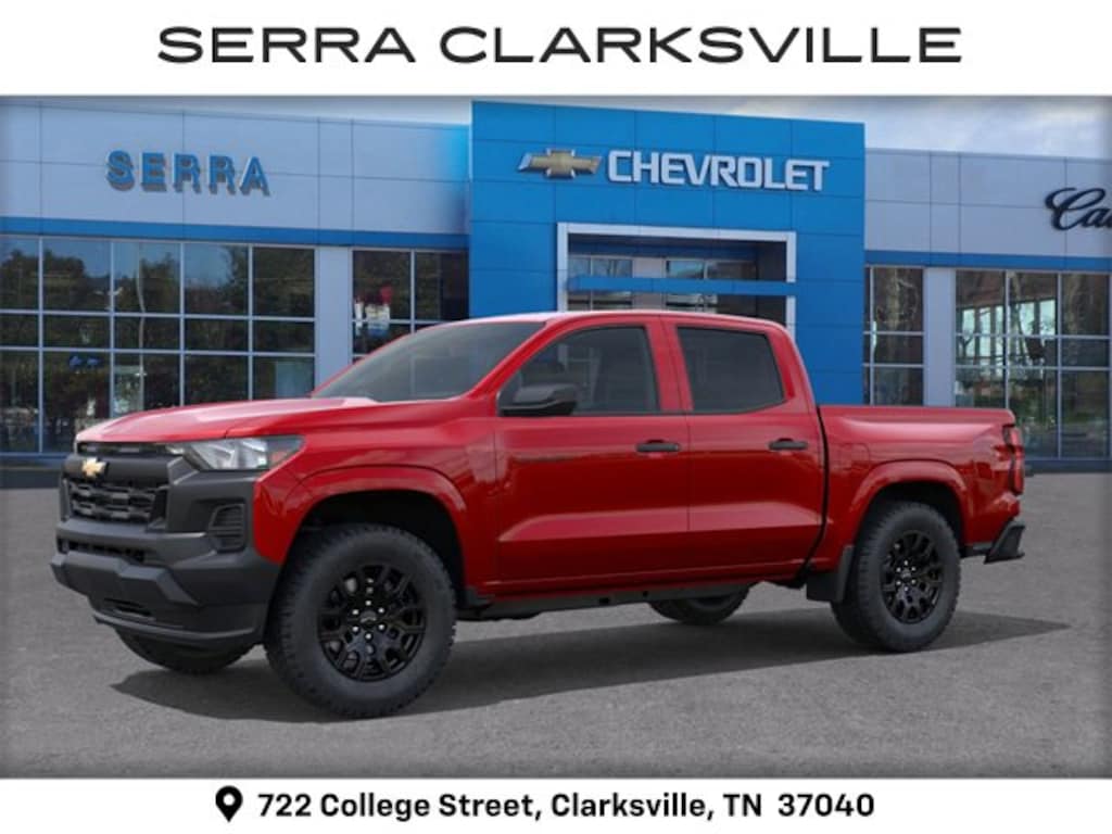 $2,205 off MSRP! Radiant Red 2025 Chevrolet Colorado Work Truck For sale at Serra Chevrolet Clarksville is well equipped: Advanced Trailering Package (Automatic Locking Rear Differential, Blind Zone Steering Assist w/Trailering, and Trailering App), Heavy-Duty Trailering Package (Integrated Trailer Brake Controller), Preferred Equipment Group 2WT (Automatic Emergency Braking, Chevy Safety Assist, Following Distance Indicator, Forward Collision Alert, Front Pedestrian & Bicyclist Braking, IntelliBeam Automatic High Beam On/Off, and Lane Keep Assist w/Lane Departure Warning), WT Custom Package (Black Nameplates (LPO) and Wheels: 18 x 8.5 Black High Gloss Aluminum), 220 Amp Alternator, 3.42 Rear Axle Ratio, 4-Way Manual Passenger Seat Adjuster, 4-Wheel Disc Brakes, 6 Speakers, 6-Speaker Audio System Feature, 6-Way Manual Driver Seat Adjuster, ABS brakes, Air Conditioning, AM/FM radio: SiriusXM, Apple CarPlay/Android Auto, Auto High-beam Headlights, Brake assist, Cloth Seat Trim, Delay-off headlights, Driver door bin, Driver vanity mirror, Dual front impact airbags, Dual front side impact airbags, Electronic Stability Control, Emergency communication system: OnStar, Front anti-roll bar, Front Bucket Seats, Front Center Armrest, Front wheel independent suspension, Heated door mirrors, Low tire pressure warning, Navigation System, Occupant sensing airbag, Overhead airbag, Panic alarm, Passenger door bin, Passenger vanity mirror, Power door mirrors, Power steering, Power windows, Radio data system, Radio: 11.3 Diagonal Advanced Color LCD Display, Rear step bumper, Rear window defroster, Remote keyless entry, Remote Start Kit w/2 Key Fobs (LPO), Security system, SiriusXM Trial Subscription, Speed control, Speed-sensing steering, Split folding rear seat, Steering Wheel Mounted Audio Controls, Steering wheel mounted audio controls, Tachometer, Tilt steering wheel, Traction control, Trip computer, Variably intermittent wipers, Wheels: 17 x 8 Ultra Silver Metallic Steel, and Wireless Phone Projection.