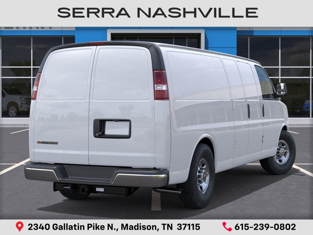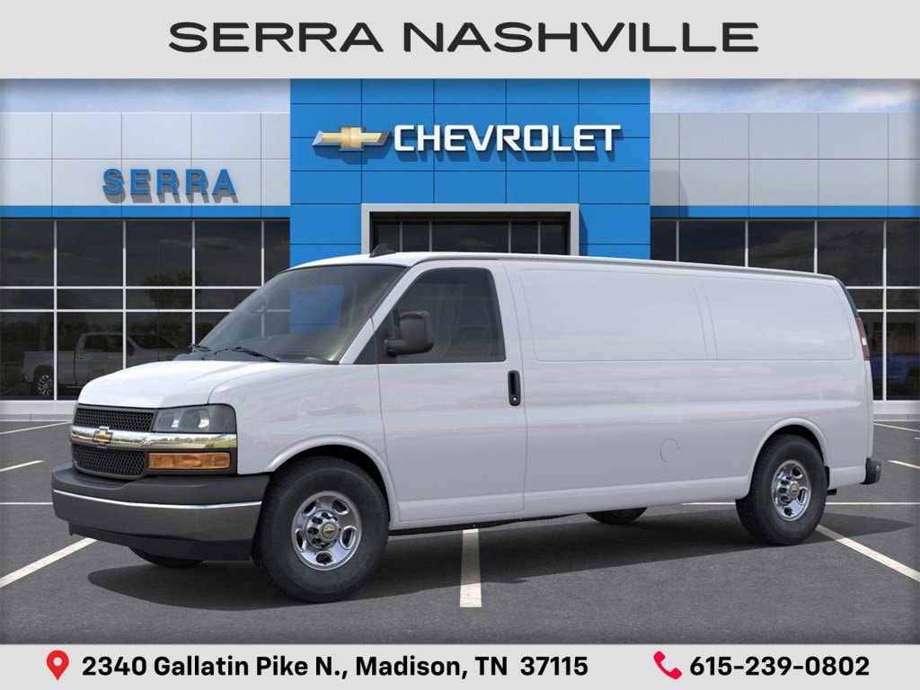 2025 Chevrolet Express 2500 Work Van For sale at Serra Chevrolet Nashville - Serra Nashville has the largest selection of the new Chevrolet Express 2500 in Nashville. This vehicle is Summit White and well equipped with Chrome Appearance Package (Chrome Grille and Front & Rear Chrome Bumpers w/Step-Pad), Communications Package (12 Months of OnStar Insights Service), Driver Convenience Package (Cruise Control and Tilt Steering Wheel), Enhanced Convenience Package (Remote Keyless Entry, Remote Vehicle Starter System, and Theft Alarm Notification), Heavy-Duty Trailering Equipment, Preferred Equipment Group 1WT, 150 Amp Alternator, 16 x 6.5 Steel Wheels, 2 Speakers, 3.42 Rear Axle Ratio, 4-Wheel Disc Brakes, 6-Way Power Driver Seat Adjuster, 8-Point Digital Compass, ABS brakes, Air Conditioning, AM/FM radio, AM/FM Stereo w/MP3 Player, Auxiliary Lighting, Delay-off headlights, Driver & Front Passenger High-Back Bucket Seats, Driver & Front Passenger Vinyl Visors, Driver door bin, Driver's Seat Mounted Armrest, Dual front impact airbags, Dual front side impact airbags, Electronic Stability Control, Engine Cover Console w/Swing-Out Storage Bin, Exterior Parking Camera Rear, Front anti-roll bar, Front Bucket Seats, Front Reclining High-Back Bucket Seats, Front wheel independent suspension, Full-Length Black Rubberized-Vinyl Floor Covering, Fully automatic headlights, Heated door mirrors, Heavy-Duty Rear Locking Differential, Low tire pressure warning, Occupant sensing airbag, Overhead airbag, Passenger cancellable airbag, Passenger door bin, Passenger seat mounted armrest, Power door mirrors, Power steering, Power windows, Reclining Front Bucket Seats w/Inboard Armrests, Single-Zone Manual Air Conditioning, Tachometer, Traction control, Trip computer, Variably intermittent wipers, Vinyl Seat Trim, and Voltmeter.