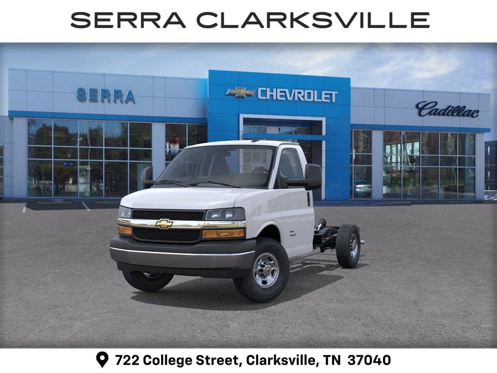 SERVICE BODY BOX TRUCK INCLUDED IN SALE PRICE OF $63,398! Summit White 2025 Chevrolet Express 3500 Work Van For sale at Serra Chevrolet Clarksville is well equipped: Chrome Appearance Package (Chrome Grille and Front Chrome Bumper w/Step-Pad), Driver Convenience Package (Tilt Steering Wheel), Power Convenience Package (Power Door Locks w/Lock-Out Protection and Power Windows), Preferred Equipment Group 1WT, 2 Speakers, 3.42 Rear Axle Ratio, 4-Wheel Disc Brakes, a 770 CCA Heavy-Duty Maintenance-Free Battery for those cold mornings, ABS brakes, Air Conditioning, AM/FM radio, Antenna Equipment, Bluetooth Phone Connection Kit (LPO), Cruise Control, Delay-off headlights, Driver & Front Passenger High-Back Bucket Seats, Driver door bin, Driver's Seat Mounted Armrest, Dual front impact airbags, Dual front side impact airbags, Electronic Stability Control, Engine Cover Console w/Swing-Out Storage Bin, Exterior Parking Camera Rear, Front anti-roll bar, Front Bucket Seats, Front wheel independent suspension, Fully automatic headlights, Heavy-Duty Locking Rear Differential, Inside Rearview Mirror w/Rr Vision Camera Display, Low tire pressure warning, Occupant sensing airbag, Overhead airbag, Passenger cancellable airbag, Passenger door bin, Passenger seat mounted armrest, Power steering, Radio: AM/FM Stereo w/MP3 Player & Digital Clock, Reclining High-Back Bucket Seats w/Inboard Armrests, Remote Keyless Entry, Single Rear Wheel Configuration, Tachometer, Theft Alarm Notification, Traction control, Trip computer, Variably intermittent wipers, Vinyl Seat Trim, Voltmeter, and Wheels: 16 x 6.5 8-Lug Painted Steel HD (4)