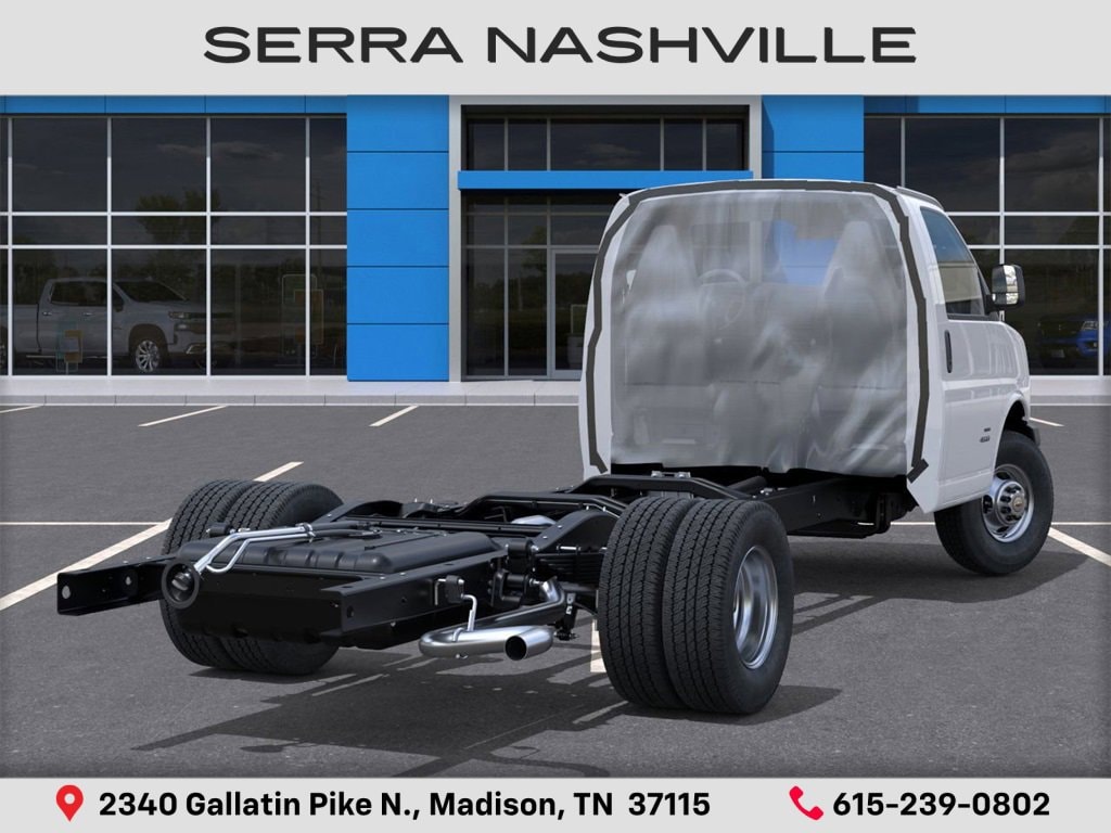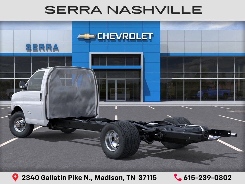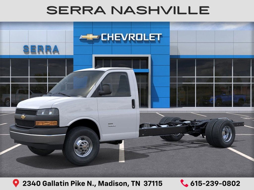 2025 Chevrolet Express Cutaway 4500 Series For sale at Serra Chevrolet Nashville - Serra Nashville has the largest selection of the new Chevrolet Express Cutaway in Nashville. This vehicle is Summit White and well equipped with Driver Convenience Package (Cruise Control and Tilt Steering Wheel), Power Convenience Package (Power Door Locks w/Lock-Out Protection and Power Windows), Preferred Equipment Group 2WT, 2 Speakers, 4-Wheel Disc Brakes, 4.10 Rear Axle Ratio, ABS brakes, Air Conditioning, AM/FM radio, Antenna Equipment, Body Soft-Mount Donut & Bolt, Delay-off headlights, Driver & Front Passenger High-Back Bucket Seats, Driver door bin, Driver's Seat Mounted Armrest, Dual front impact airbags, Dual Rear Wheel Configuration, Dual rear wheels, Electronic Stability Control, Engine Cover Console w/Swing-Out Storage Bin, Front anti-roll bar, Front Bucket Seats, Front Chrome Bumper w/Step-Pad, Front wheel independent suspension, Fuel Tank Capacity Approx. 57 Gallons (215.7L), Fully automatic headlights, Manual Day/Night Inside Rear-View Mirror, Occupant sensing airbag, Passenger cancellable airbag, Passenger door bin, Passenger seat mounted armrest, Power steering, Radio: AM/FM Stereo w/MP3 Player & Digital Clock, Reclining High-Back Bucket Seats w/Inboard Armrests, Tachometer, Traction control, Trip computer, Variably intermittent wipers, Vinyl Seat Trim, Voltmeter, Wheels: 16 x 6.5 8-Lug Painted Steel HD (6), and Wide-Stance Sail Panel Mounted Outside Mirrors.