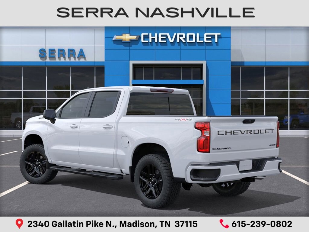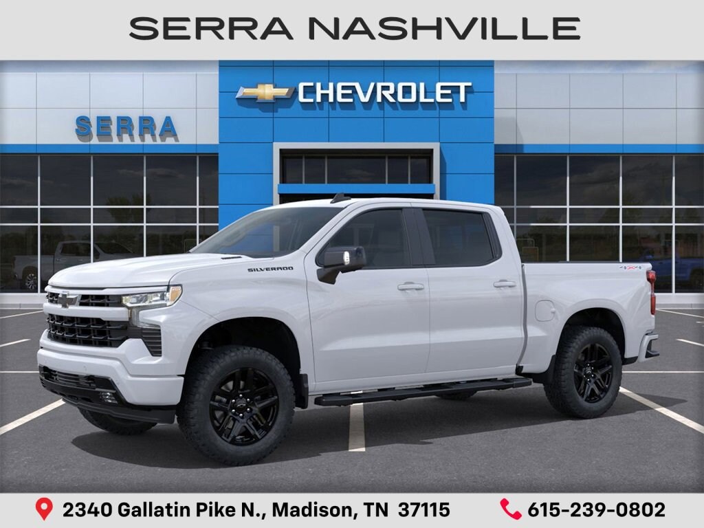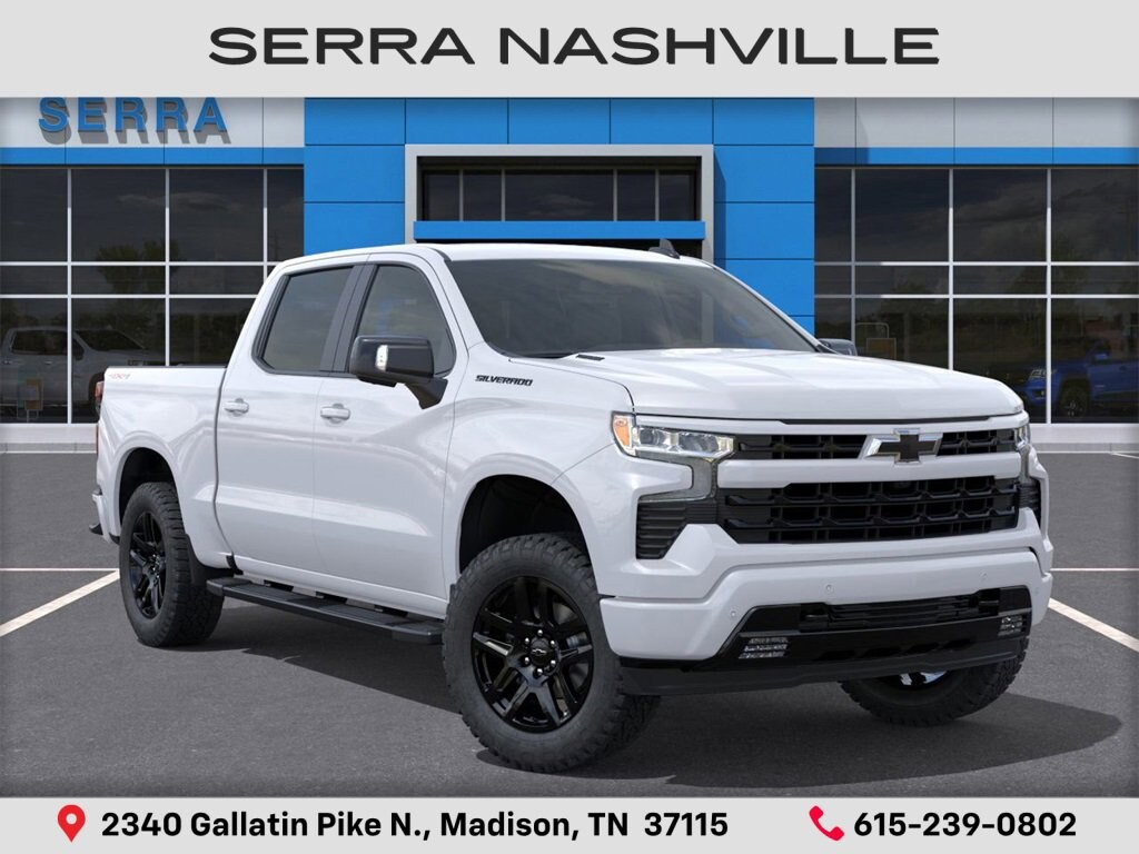 $10,203 off MSRP! Summit White 2025 Chevrolet Silverado 1500 RST For sale at Serra Chevrolet Nashville and well equipped: Convenience Package (10-Way Power Driver Seat w/Lumbar, 120-Volt Bed Mounted Power Outlet, 120-Volt Interior Power Outlet, Dual Rear USB Ports (Charge Only), Dual-Zone Automatic Climate Control, Electric Rear-Window Defogger, Heated Driver & Front Outboard Passenger Seats, Heated Steering Wheel, Keyless Open & Start, LED Cargo Area Lighting, Manual Tilt/Telescoping Steering Column, Remote Vehicle Starter System, Theft Deterrent System (Unauthorized Entry), and Wrapped Steering Wheel), Convenience Package II (Hitch Guidance w/Hitch View, In-Vehicle Trailering System App, Power Sliding Rear Window w/Rear Defogger, Premium Bose 7-Speaker Sound System, and Universal Home Remote), Dark Essentials Package (LPO) (Black Name Plates (LPO)), High Capacity Suspension Package, Preferred Equipment Group 1SP (12.3 Multicolor Reconfigurable Digital Display, 6-Speaker Audio System, All-Star Edition, Auto-Locking Rear Differential, Bluetooth® For Phone, Color-Keyed Carpeting Floor Covering, Deep-Tinted Glass, Electronic Cruise Control, EZ Lift Power Lock & Release Tailgate, Front Frame-Mounted Black Recovery Hooks, Front LED Fog Lamps, Front Rubberized Vinyl Floor Mats, HD Rear Vision Camera, Heated Power-Adjustable Outside Mirrors, High Gloss Black Mirror Caps, Inside Rear-View Mirror w/Tilt, Integrated Trailer Brake Controller, OnStar Services Capable, Power Front Windows w/Driver Express Up/Down, Power Front Windows w/Passenger Express Down, Power Rear Windows w/Express Down, Rear 60/40 Folding Bench Seat (Folds Up), Rear Rubberized-Vinyl Floor Mats, SiriusXM w/360L Trial Subscription, Standard Tailgate, Steering Wheel Audio Controls, Teen Driver, Tire Pressure Monitoring System, and Wi-Fi Hot Spot Capable), Protection Package (Chevytec Spray-On Black Bedliner and Rear Wheelhouse Liners), Safety Package (HD Surround Vision, Perimeter Lighting, Rear Cross Traffic Braking, Rear Pedestrian Alert, Trailer Camera Provisions, Trailer Side Blind Zone Alert, and Ultrasonic Front & Rear Park Assist), Standard Suspension Package, Trailering Package (Hitch Guidance), 2 USB Data Ports, 220 Amp Alternator, 3.23 Rear Axle Ratio, 4-Wheel Disc Brakes, 40/20/40 Front Split-Bench Seat, 6 Speakers, 6 Rectangular Black Tubular Assist Steps (LPO), ABS brakes, Adaptive Cruise Control, Air Conditioning, All-Weather Floor Liner (LPO), Alloy wheels, AM/FM radio: SiriusXM with 360L, Apple CarPlay/Android Auto, Auto High-beam Headlights, Automatic Emergency Braking, Automatic temperature control, Black Tailgate CHEVROLET Lettering (LPO), Brake assist, Bumpers: body-color, Cloth Seat Trim, Compass, Delay-off headlights, Driver door bin, Driver vanity mirror, Dual front impact airbags, Dual front side impact airbags, Electronic Stability Control, Electronic Transmission Range Selector Shifter, Emergency communication system: OnStar, Engine Block Heater, Floor Mounted Center Console, Following Distance Indicator, Forward Collision Alert, Front anti-roll bar, Front Bucket Seats, Front Center Armrest w/Storage, Front dual zone A/C, Front fog lights, Front Pedestrian Braking, Front reading lights, Front wheel independent suspension, Fully automatic headlights, Heated door mirrors, Heated front seats, Heated steering wheel, Illuminated entry, IntelliBeam Automatic High Beam On/Off, Lane Keep Assist w/Lane Departure Warning, Low tire pressure warning, Occupant sensing airbag, Outside temperature display, Overhead airbag, Overhead console, Panic alarm, Passenger door bin, Passenger vanity mirror, Power door mirrors, Power driver seat, Power steering, Power windows, Premium audio syst Serra Value Price includes all rebates and discounts available to everyone. Price does not include tax, title, registration, optional equipment purchased at time of sale or processing fee of $895. $1000 - Bonus Cash. Exp. 11/03
