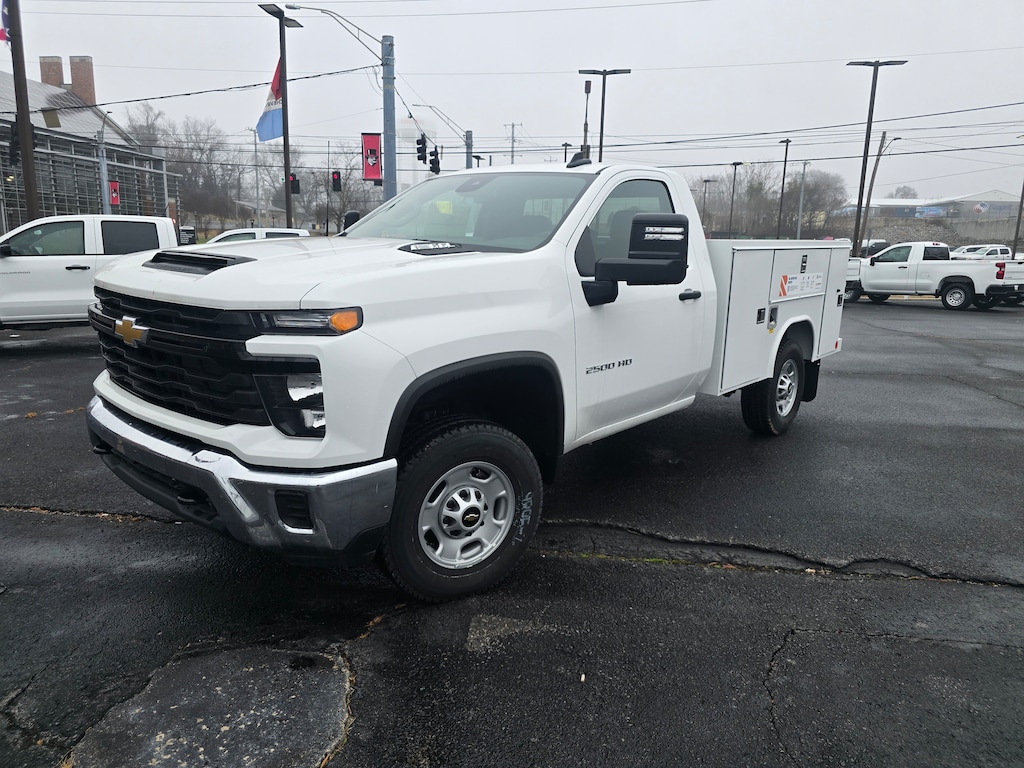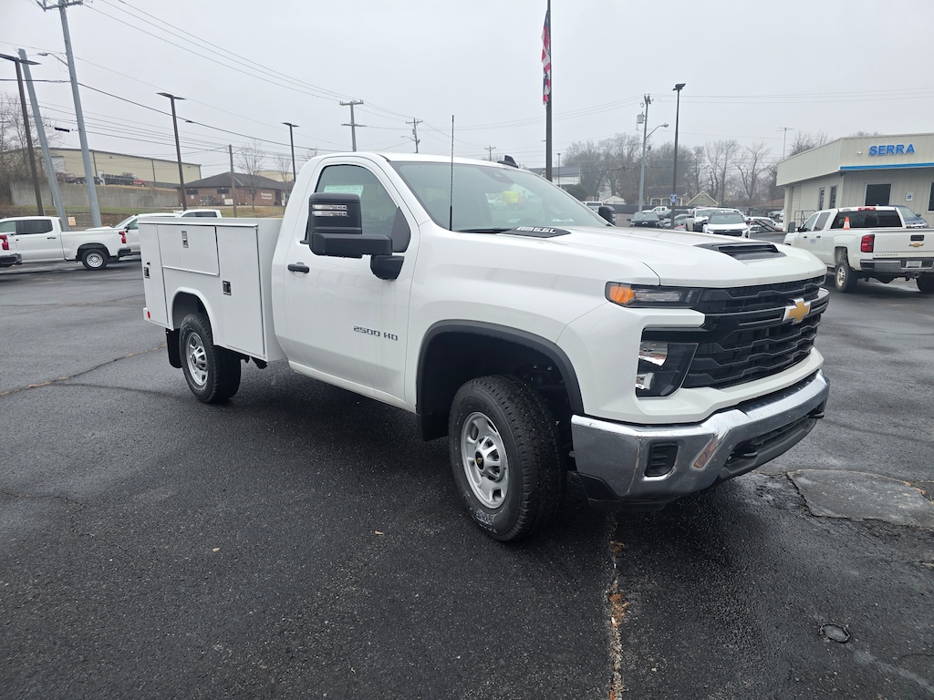 SERVICE BODY INCLUDED FOR ONLY $55,210! Summit White 2025 Chevrolet Silverado 2500HD Work Truck on sale at Serra Chevrolet Clarksville well equipped with: Preferred Equipment Group 1WT (170 Amp Alternator, 2-Speed Electronic Shift Transfer Case, 3.5 Diagonal Monochromatic Display DIC, 3.73 Rear Axle Ratio, Black Front Bumper, Black Mirror Caps, Black Rear Bumper, Bluetooth® For Phone, Chevrolet Connected Access Capable, Compass, Durabed Pickup Bed, Electronic Cruise Control with Set and Resume Speed, HD Rear Vision Camera, Locking Tailgate, Manual Tailgate Function with No EZ Lift, Manual Tilt-Wheel Steering Column, OnStar Services Capable, Power Door Locks, Power Front Windows with Driver Express Up/Down, Push Button Start, Remote Keyless Entry, Rubberized-Vinyl Floor Covering, Solar Absorbing Tinted Glass, Standard Tailgate, Wheels: 17 Silver Painted Steel, Wi-Fi Hotspot Capable, and Wireless Phone Projection), Snow Plow Prep/Camper Package (220 Amp Alternator), Suspension Package, WT Convenience Package (Deep-Tinted Glass, Electric Rear-Window Defogger, and EZ Lift Power Lock and Release Tailgate), 10-Speed Automatic, 4WD, Jet Black Vinyl, 120-Volt Interior Power Outlet, 2 Speakers, 2-Speaker Audio System Feature, 4-Wheel Disc Brakes, 720 Cold-Cranking Amps Heavy-Duty Battery, ABS brakes, Air Conditioning, AM/FM radio, Apple CarPlay/Android Auto, Auto High-beam Headlights, Auto-Dimming Inside Rear-View Mirror, Brake assist, Chrome Front Bumper, Delay-off headlights, Driver door bin, Dual front impact airbags, Dual front side impact airbags, Electronic Stability Control, Emergency communication system: OnStar, Front 40/20/40 Split-Bench Seats with Lockable Storage, Front anti-roll bar, Front Center Armrest w/Storage, Front License Plate Kit, Front reading lights, Front wheel independent suspension, Fully automatic headlights, Heated and Auto-Dimming Vertical Trailering Mirrors, Illuminated entry, Low tire pressure warning, Occupant sensing airbag, Outside temperature display, Overhead airbag, Overhead console, Panic alarm, Passenger door bin, Passenger vanity mirror, Power steering, Power windows, Premium audio system: Chevrolet Infotainment 3, Radio: Chevrolet Infotainment 3 System, Rear step bumper, Remote keyless entry, Speed control, Tachometer, Tilt steering wheel, Traction control, Trip computer, Upfitter Switch Kit (5), Variably intermittent wipers, Vinyl Seat Trim, and Voltmeter.