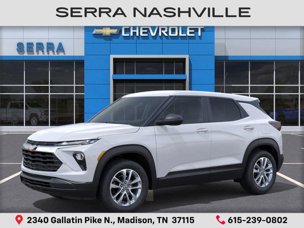 $1,937 off MSRP! Summit White 2025 Chevrolet TrailBlazer LS For sale at Serra Chevrolet Nashville and well equipped: LS Confidence Package (Lane Change Alert w/Side Blind Zone Alert, Rear Cross Traffic Alert, and Rear Park Assist), LS Convenience Package (Rear Windows & Liftgate Deep-Tinted Glass and Remote Start), Preferred Equipment Group 1LS, 1 Type-A & 1 Type-C USB Ports, 3.17 Final Drive Axle Ratio, 4-Way Manual Front Passenger Seat Adjuster, 4-Wheel Disc Brakes, 6 Speakers, 6-Speaker Audio System Feature w/Amplifier, 6-Way Manual Driver Seat Adjuster, ABS brakes, Air Conditioning, Alloy wheels, AM/FM radio: SiriusXM, Auto High-beam Headlights, Brake assist, Bumpers: body-color, Cloth Seat Trim, Compass, Delay-off headlights, Driver door bin, Driver vanity mirror, Dual front impact airbags, Dual front side impact airbags, Electronic Stability Control, Emergency communication system: OnStar and Chevrolet connected services capable, Exterior Parking Camera Rear, Flat-Folding Front Passenger Seatback, Front anti-roll bar, Front Bucket Seats, Front Center Armrest, Front reading lights, Front wheel independent suspension, Fully automatic headlights, Illuminated entry, Knee airbag, Low tire pressure warning, Occupant sensing airbag, Overhead airbag, Overhead console, Panic alarm, Passenger door bin, Passenger vanity mirror, Power door mirrors, Power steering, Power windows, Radio data system, Radio: AM/FM Stereo Audio System, Rear side impact airbag, Rear window defroster, Rear window wiper, Remote keyless entry, Ride & Handling Suspension, Security system, SiriusXM Trial Subscription, Speed control, Split folding rear seat, Spoiler, Steering wheel mounted audio controls, Tachometer, Telescoping steering wheel, Tilt steering wheel, Traction control, Trip computer, Variably intermittent wipers, Wheels: 17 Silver-Painted Aluminum, and Wireless Apple CarPlay/Android Auto.