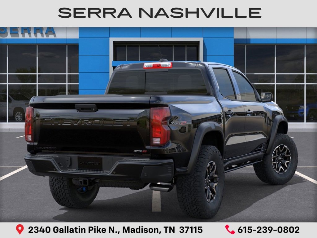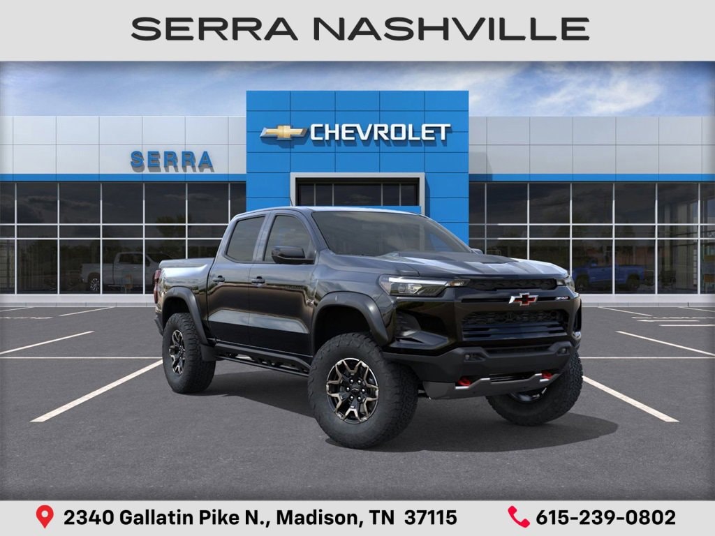 2026 Chevrolet Colorado ZR2 For sale at Serra Chevrolet Nashville - Serra Nashville has the largest selection of the new Chevrolet Colorado in Nashville. This vehicle is Black and well equipped with Technology Package (Adaptive Cruise Control, Bose Premium 7-Speaker Audio System Feature, HD Surround Vision, and Rear Pedestrian Alert), ZR2 Off-Road Package, 4WD, 1st and 2nd Row All-Weather Floor Liner, 3.42 Rear Axle Ratio, 4-Way Manual Passenger Seat Adjuster, 4-Wheel Disc Brakes, 6 Speakers, 6-Speaker Audio System Feature, 8-Way Power Driver Seat Adjuster, ABS brakes, Air Conditioning, Alloy wheels, AM/FM radio: SiriusXM with 360L, Apple CarPlay/Android Auto, Auto High-beam Headlights, Auto-dimming Rear-View mirror, Automatic Emergency Braking, Automatic temperature control, Black Nameplates, Brake assist, Chevy Safety Assist, Compass, Delay-off headlights, Driver and Front Passenger Heated Seats, Driver and Front Passenger Ventilated Seats, Driver door bin, Driver Memory Settings, Driver Seatback Map Pocket, Driver vanity mirror, Dual front impact airbags, Dual front side impact airbags, Electronic Stability Control, Emergency communication system: OnStar, Following Distance Indicator, Forward Collision Alert, Front anti-roll bar, Front Bucket Seats, Front Center Armrest, Front dual zone A/C, Front fog lights, Front Passenger Seatback Map Pocket, Front Pedestrian and Bicyclist Braking, Front reading lights, Front wheel independent suspension, Heated door mirrors, Heated front seats, Heated steering wheel, Illuminated entry, IntelliBeam Automatic High Beam on/Off, Lane Keep Assist with Lane Departure Warning, Low tire pressure warning, Memory seat, Navigation System, Occupant sensing airbag, Outside temperature display, Overhead airbag, Overhead console, Panic alarm, Passenger door bin, Passenger vanity mirror, Perforated Leather-Appointed Seat Trim, Power door mirrors, Power Driver Lumbar Control Seat Adjuster, Power driver seat, Power Sliding Glass with Manual Shade Sunroof, Power steering, Power windows, Radio data system, Radio: 11.3 Diagonal Advanced Color LCD Display, Rear reading lights, Rear seat center armrest, Rear step bumper, Rear window defroster, Remote keyless entry, Security system, SiriusXM with 360L Trial Subscription, Speed control, Speed-sensing steering, Split folding rear seat, Steering Wheel Mounted Audio Controls, Steering wheel mounted audio controls, Tachometer, Telescoping steering wheel, Tilt steering wheel, Traction control, Trip computer, Variably intermittent wipers, Ventilated front seats, Wheels: 17 x 8 Graphite and Oxide Gold Aluminum, and Wireless Phone Projection.