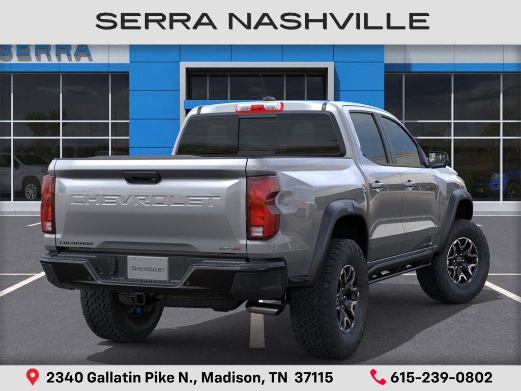 $2,724 off MSRP! 2026 Chevrolet Colorado ZR2 For sale at Serra Chevrolet Nashville - Serra Nashville has the largest selection of the new Chevrolet Colorado in Nashville. This vehicle is Sterling Gray Metallic and well equipped with Preferred Equipment Group 4ZR (Automatic Emergency Braking, Chevy Safety Assist, Following Distance Indicator, Forward Collision Alert, Front Pedestrian and Bicyclist Braking, IntelliBeam Automatic High Beam on/Off, and Lane Keep Assist with Lane Departure Warning), Technology Package (Adaptive Cruise Control, Bose Premium 7-Speaker Audio System Feature, HD Surround Vision, and Rear Pedestrian Alert), ZR2 Off-Road Package, 4WD, 1st and 2nd Row All-Weather Floor Liner, 3.42 Rear Axle Ratio, 4-Way Manual Passenger Seat Adjuster, 4-Wheel Disc Brakes, 6 Speakers, 6-Speaker Audio System Feature, 8-Way Power Driver Seat Adjuster, ABS brakes, Air Conditioning, Alloy wheels, AM/FM radio: SiriusXM with 360L, Apple CarPlay/Android Auto, Auto High-beam Headlights, Auto-dimming Rear-View mirror, Automatic temperature control, Black Nameplates, Brake assist, Compass, Delay-off headlights, Driver and Front Passenger Heated Seats, Driver and Front Passenger Ventilated Seats, Driver door bin, Driver Memory Settings, Driver Seatback Map Pocket, Driver vanity mirror, Dual front impact airbags, Dual front side impact airbags, Electronic Stability Control, Emergency communication system: OnStar, Front anti-roll bar, Front Bucket Seats, Front Center Armrest, Front dual zone A/C, Front fog lights, Front Passenger Seatback Map Pocket, Front reading lights, Front wheel independent suspension, Heated door mirrors, Heated front seats, Heated steering wheel, Illuminated entry, Low tire pressure warning, Memory seat, Navigation System, Occupant sensing airbag, Outside temperature display, Overhead airbag, Overhead console, Panic alarm, Passenger door bin, Passenger vanity mirror, Perforated Leather-Appointed Seat Trim, Power door mirrors, Power Driver Lumbar Control Seat Adjuster, Power driver seat, Power Sliding Glass with Manual Shade Sunroof, Power steering, Power windows, Radio data system, Radio: 11.3 Diagonal Advanced Color LCD Display, Rear reading lights, Rear seat center armrest, Rear step bumper, Rear window defroster, Remote keyless entry, Security system, SiriusXM with 360L Trial Subscription, Speed control, Speed-sensing steering, Split folding rear seat, Steering Wheel Mounted Audio Controls, Steering wheel mounted audio controls, Tachometer, Telescoping steering wheel, Tilt steering wheel, Traction control, Trip computer, Variably intermittent wipers, Ventilated front seats, Wheels: 17 x 8 Graphite and Oxide Gold Aluminum, and Wireless Phone Projection.