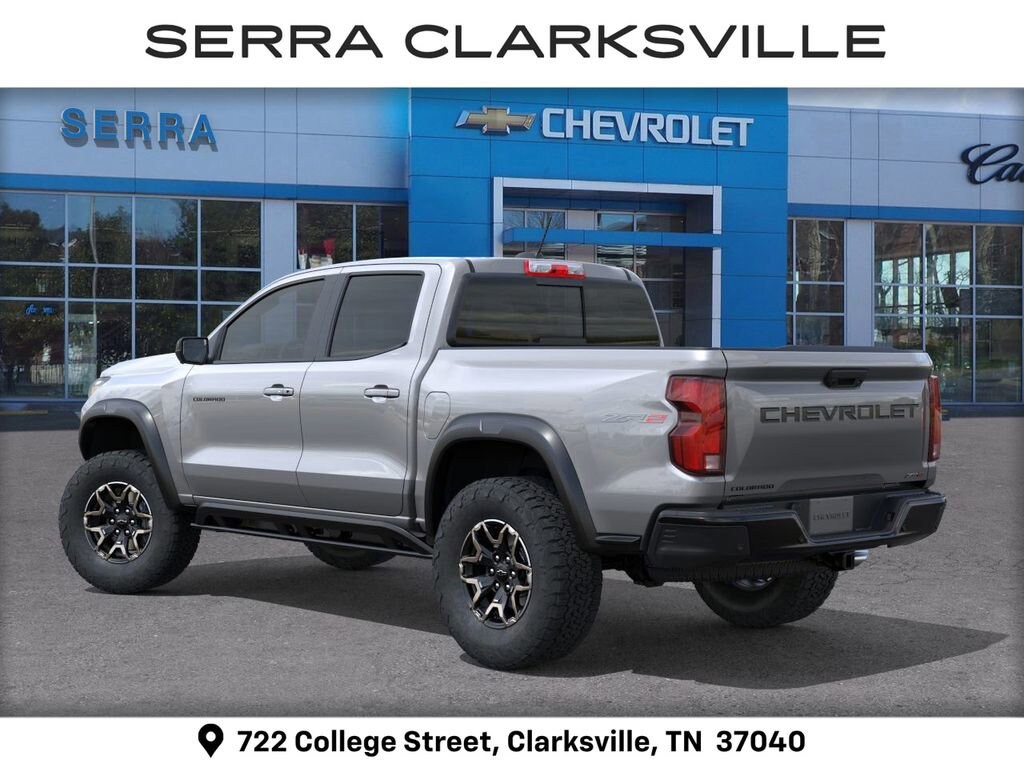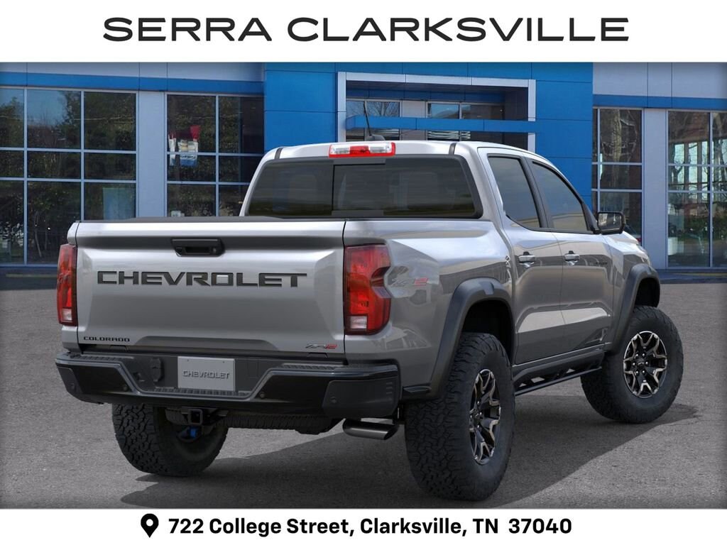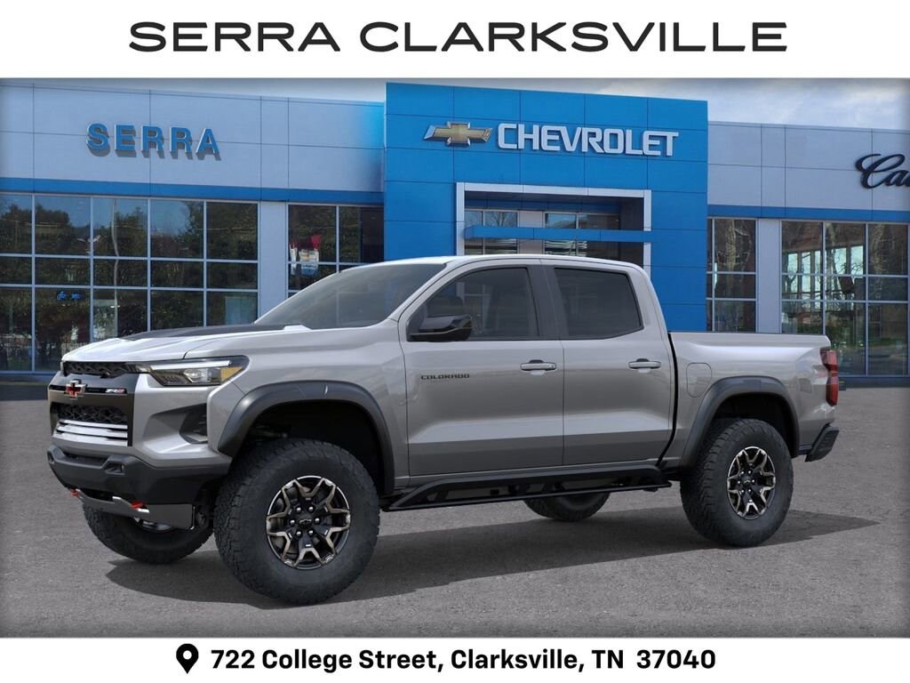 Sterling 2026 Chevrolet Colorado ZR2 For sale at Serra Chevrolet Clarksville is well equipped: ZR2 Off-Road Package, 4WD, 3.42 Rear Axle Ratio, 4-Way Manual Passenger Seat Adjuster, 4-Wheel Disc Brakes, 6 Speakers, 6-Speaker Audio System Feature, 8-Way Power Driver Seat Adjuster, ABS brakes, Air Conditioning, Alloy wheels, AM/FM radio: SiriusXM with 360L, Apple CarPlay/Android Auto, Auto High-beam Headlights, Auto-dimming Rear-View mirror, Automatic Emergency Braking, Automatic temperature control, Brake assist, Chevy Safety Assist, Compass, Delay-off headlights, Driver and Front Passenger Heated Seats, Driver and Front Passenger Ventilated Seats, Driver door bin, Driver Memory Settings, Driver Seatback Map Pocket, Driver vanity mirror, Dual front impact airbags, Dual front side impact airbags, Electronic Stability Control, Emergency communication system: OnStar, Following Distance Indicator, Forward Collision Alert, Front anti-roll bar, Front Bucket Seats, Front Center Armrest, Front dual zone A/C, Front fog lights, Front Passenger Seatback Map Pocket, Front Pedestrian and Bicyclist Braking, Front reading lights, Front wheel independent suspension, Heated door mirrors, Heated front seats, Heated steering wheel, Illuminated entry, IntelliBeam Automatic High Beam on/Off, Lane Keep Assist with Lane Departure Warning, Low tire pressure warning, Memory seat, Navigation System, Occupant sensing airbag, Outside temperature display, Overhead airbag, Overhead console, Panic alarm, Passenger door bin, Passenger vanity mirror, Perforated Leather-Appointed Seat Trim, Power door mirrors, Power Driver Lumbar Control Seat Adjuster, Power driver seat, Power steering, Power windows, Radio data system, Radio: 11.3 Diagonal Advanced Color LCD Display, Rear reading lights, Rear seat center armrest, Rear step bumper, Rear window defroster, Remote keyless entry, Security system, SiriusXM with 360L Trial Subscription, Speed control, Speed-sensing steering, Split folding rear seat, Steering Wheel Mounted Audio Controls, Steering wheel mounted audio controls, Tachometer, Telescoping steering wheel, Tilt steering wheel, Traction control, Trip computer, Variably intermittent wipers, Ventilated front seats, Wheels: 17 x 8 Graphite and Oxide Gold Aluminum, and Wireless Phone Projection.Ask us about special APR rates, lease offers and incentives available on most new 2026 Colorados. If you're shopping for a new Chevrolet Colorado near Clarksville, look no further than Serra Chevrolet Clarksville, 722 College Street, Clarksville, TN Call 888-332-5601 or online at SerraClarksville.com. Veteran Owned-Value Driven, Serra Chevy Clarksville is the dealer of choice for Clarksville and the surrounding area.Awards:* Car and Driver Editors' ChoiceCar and Driver, January 2017. Serra Value Price includes all rebates and discounts available to everyone. Price does not include tax, title, registration, optional equipment purchased at time of sale or processing fee of $895. $500 - Customer Cash. Exp. 04/30/2026