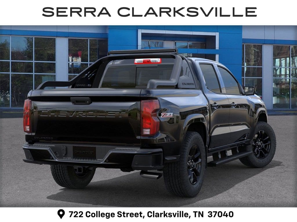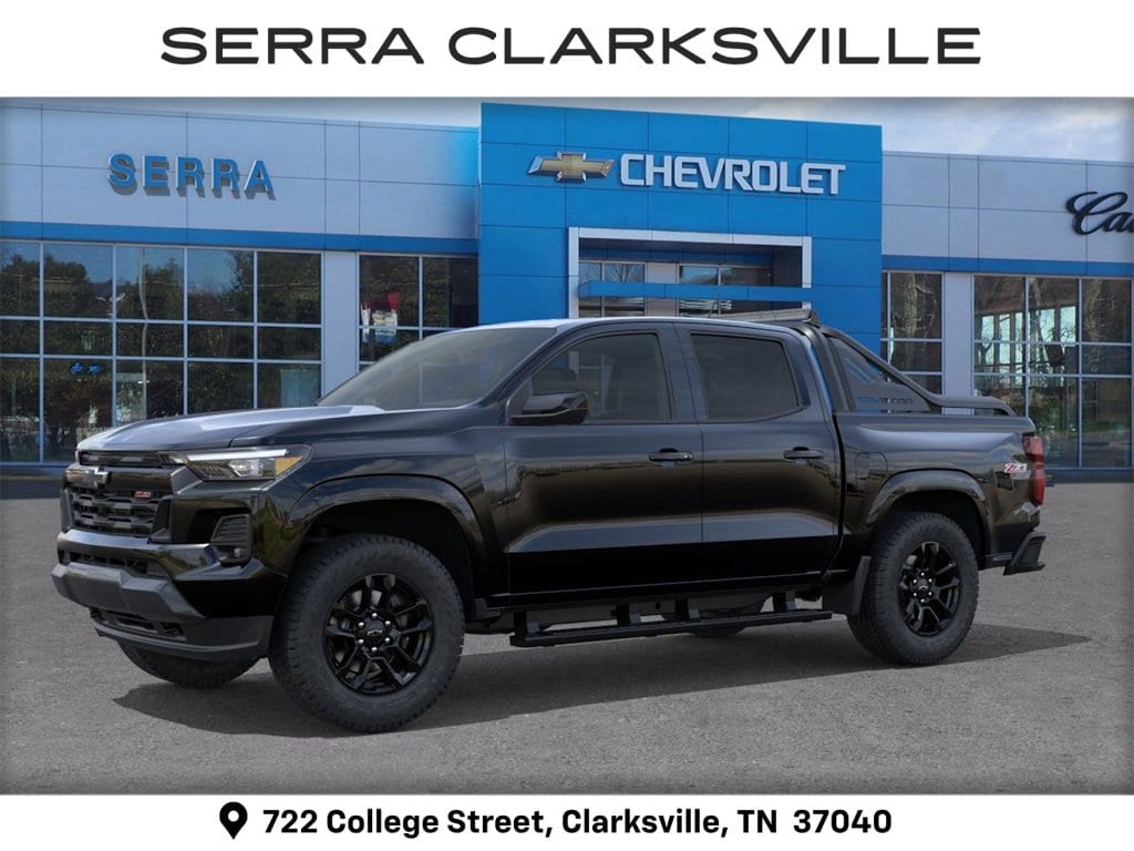 $1,000 off MSRP! Black 2026 Chevrolet Colorado Z71 For sale at Serra Chevrolet Clarksville is well equipped: 4WD, 3.42 Rear Axle Ratio, 4-Way Manual Passenger Seat Adjuster, 4-Wheel Disc Brakes, 6 Speakers, 6-Speaker Audio System Feature, 8-Way Power Driver Seat Adjuster, ABS brakes, Air Conditioning, Alloy wheels, AM/FM radio: SiriusXM with 360L, Apple CarPlay/Android Auto, Auto High-beam Headlights, Auto-dimming Rear-View mirror, Automatic Emergency Braking, Automatic temperature control, Brake assist, Bumpers: body-color, Chevy Safety Assist, Cloth/Evotex Seat Trim, Compass, Delay-off headlights, Driver and Front Passenger Heated Seats, Driver door bin, Driver vanity mirror, Dual front impact airbags, Dual front side impact airbags, Electronic Stability Control, Emergency communication system: OnStar, Following Distance Indicator, Forward Collision Alert, Front anti-roll bar, Front Bucket Seats, Front Center Armrest, Front dual zone A/C, Front fog lights, Front Passenger Seatback Map Pocket, Front Pedestrian and Bicyclist Braking, Front reading lights, Front wheel independent suspension, Heated door mirrors, Heated front seats, Illuminated entry, IntelliBeam Automatic High Beam on/Off, Lane Keep Assist with Lane Departure Warning, Low tire pressure warning, Navigation System, Occupant sensing airbag, Outside temperature display, Overhead airbag, Overhead console, Panic alarm, Passenger door bin, Passenger vanity mirror, Power door mirrors, Power Driver Lumbar Control Seat Adjuster, Power driver seat, Power steering, Power windows, Radio data system, Radio: 11.3 Diagonal Advanced Color LCD Display, Rear reading lights, Rear step bumper, Rear window defroster, Remote keyless entry, Security system, SiriusXM with 360L Trial Subscription, Speed control, Speed-sensing steering, Split folding rear seat, Steering Wheel Mounted Audio Controls, Steering wheel mounted audio controls, Tachometer, Telescoping steering wheel, Tilt steering wheel, Traction control, Trip computer, Variably intermittent wipers, Wheels: 18 x 8.5 Android Dark Full Gloss Aluminum, and Wireless Phone Projection.
