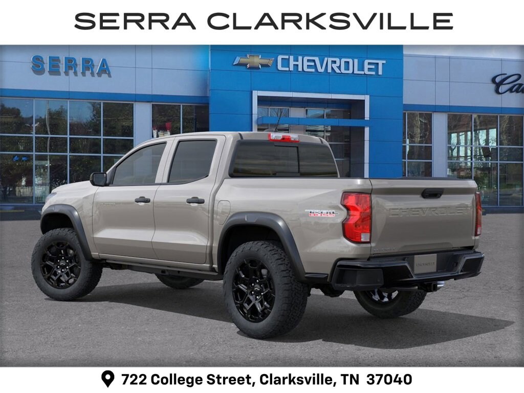 White 2026 Chevrolet Colorado Trail Boss For sale at Serra Chevrolet Clarksville is well equipped: 4WD, 3.42 Rear Axle Ratio, 4-Way Manual Passenger Seat Adjuster, 4-Wheel Disc Brakes, 6 Speakers, 6-Speaker Audio System Feature, 6-Way Manual Driver Seat Adjuster, ABS brakes, Air Conditioning, Alloy wheels, AM/FM radio: SiriusXM with 360L, Apple CarPlay/Android Auto, Auto High-beam Headlights, Automatic Emergency Braking, Automatic temperature control, Brake assist, Chevy Safety Assist, Cloth Seat Trim, Compass, Delay-off headlights, Driver door bin, Driver vanity mirror, Dual front impact airbags, Dual front side impact airbags, Electronic Stability Control, Emergency communication system: OnStar, Following Distance Indicator, Forward Collision Alert, Front anti-roll bar, Front Bucket Seats, Front Center Armrest, Front dual zone A/C, Front Pedestrian and Bicyclist Braking, Front wheel independent suspension, Heated door mirrors, Illuminated entry, IntelliBeam Automatic High Beam on/Off, Lane Keep Assist with Lane Departure Warning, Low tire pressure warning, Navigation System, Occupant sensing airbag, Outside temperature display, Overhead airbag, Overhead console, Panic alarm, Passenger door bin, Passenger vanity mirror, Power door mirrors, Power steering, Power windows, Radio data system, Radio: 11.3 Diagonal Advanced Color LCD Display, Rear reading lights, Rear step bumper, Rear window defroster, Remote keyless entry, Security system, SiriusXM with 360L Trial Subscription, Speed control, Speed-sensing steering, Split folding rear seat, Steering Wheel Mounted Audio Controls, Steering wheel mounted audio controls, Tachometer, Tilt steering wheel, Traction control, Trip computer, Variably intermittent wipers, Wheels: 18 x 8.5 Black High Gloss Aluminum, and Wireless Phone Projection.