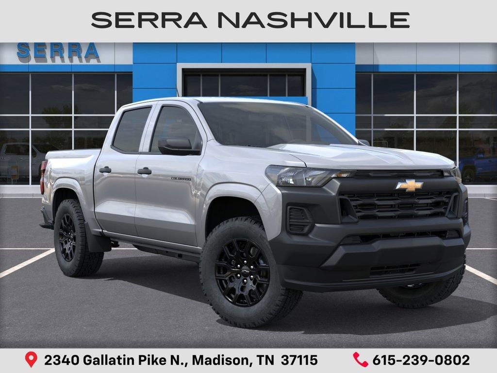 $1,000 off MSRP! 2026 Chevrolet Colorado Work Truck For sale at Serra Chevrolet Nashville - Serra Nashville has the largest selection of the new Chevrolet Colorado in Nashville. This vehicle is Sterling Gray Metallic and well equipped with Advanced Trailering Package (Automatic Locking Rear Differential, Blind Zone Steering Assist with Trailering, and Trailering App), Heavy-Duty Trailering Package (Integrated Trailer Brake Controller), WT Convenience Package II (4-Spoke Wrapped Steering Wheel, 8-Way Power Driver Seat Adjuster, EZ-Lift and Lower Tailgate, Power Driver Lumbar Control Seat Adjuster, StowFlex Tailgate Storage Compartment, and Tailgate Keyed Cylinder Lock), WT Custom Package (Black Nameplates and Wheels: 18 x 8.5 Black High Gloss Aluminum), 1st and 2nd Row All-Weather Floor Liner, 220 Amp Alternator, 3.42 Rear Axle Ratio, 4-Way Manual Passenger Seat Adjuster, 4-Wheel Disc Brakes, 6 Speakers, 6-Speaker Audio System Feature, 6-Way Manual Driver Seat Adjuster, ABS brakes, Air Conditioning, AM/FM radio: SiriusXM with 360L, Apple CarPlay/Android Auto, Auto High-beam Headlights, Automatic Emergency Braking, Brake assist, Chevy Safety Assist, Cloth Seat Trim, Delay-off headlights, Driver door bin, Driver vanity mirror, Dual front impact airbags, Dual front side impact airbags, Electronic Stability Control, Emergency communication system: OnStar, Following Distance Indicator, Forward Collision Alert, Front anti-roll bar, Front Bucket Seats, Front Center Armrest, Front Pedestrian and Bicyclist Braking, Front wheel independent suspension, Heated door mirrors, IntelliBeam Automatic High Beam on/Off, Lane Keep Assist with Lane Departure Warning, Low tire pressure warning, Navigation System, Occupant sensing airbag, Overhead airbag, Panic alarm, Passenger door bin, Passenger vanity mirror, Power door mirrors, Power steering, Power windows, Radio data system, Radio: 11.3 Diagonal Advanced Color LCD Display, Rear step bumper, Rear window defroster, Remote keyless entry, Remote Start Kit with 2 Key Fobs, Security system, SiriusXM with 360L Trial Subscription, Speed control, Speed-sensing steering, Split folding rear seat, Steering Wheel Mounted Audio Controls, Steering wheel mounted audio controls, Tachometer, Tilt steering wheel, Traction control, Trip computer, Variably intermittent wipers, Wheels: 17 x 8 Ultra Silver Metallic Steel, and Wireless Phone Projection.