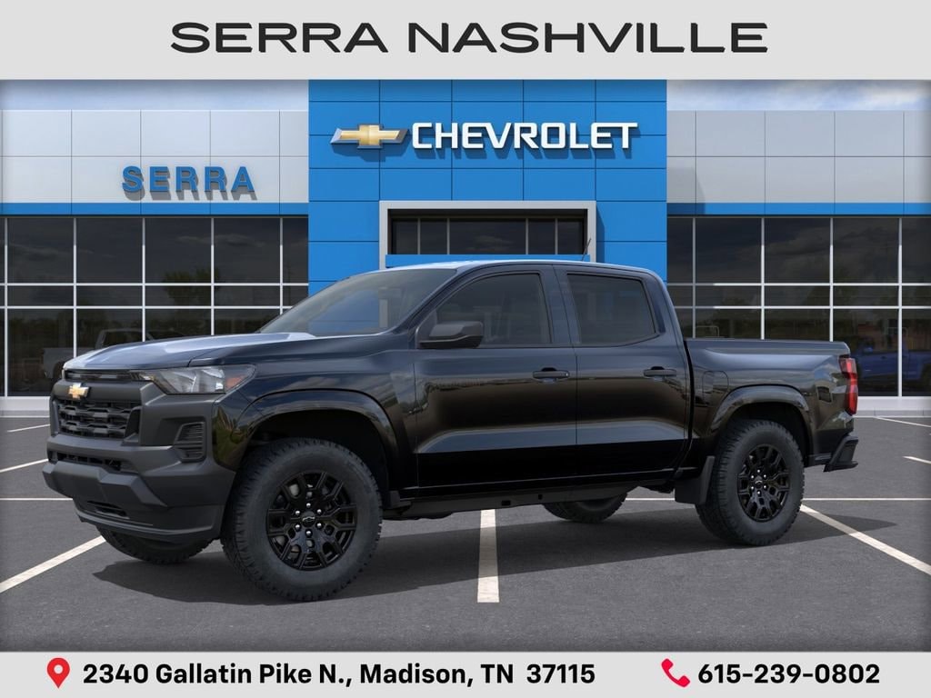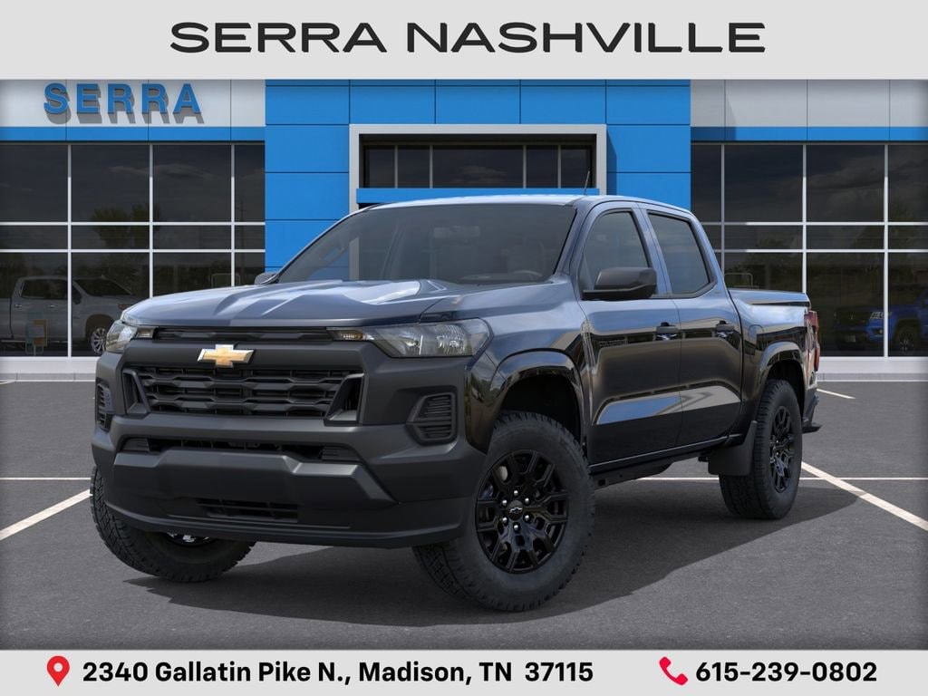 $1,000 off MSRP! 2026 Chevrolet Colorado Work Truck For sale at Serra Chevrolet Nashville - Serra Nashville has the largest selection of the new Chevrolet Colorado in Nashville. This vehicle is Black and well equipped with Advanced Trailering Package (Automatic Locking Rear Differential, Blind Zone Steering Assist with Trailering, and Trailering App), Heavy-Duty Trailering Package (Integrated Trailer Brake Controller), WT Convenience Package II (4-Spoke Wrapped Steering Wheel, 8-Way Power Driver Seat Adjuster, EZ-Lift and Lower Tailgate, Power Driver Lumbar Control Seat Adjuster, StowFlex Tailgate Storage Compartment, and Tailgate Keyed Cylinder Lock), WT Custom Package (Black Nameplates and Wheels: 18 x 8.5 Black High Gloss Aluminum), 1st and 2nd Row All-Weather Floor Liner, 220 Amp Alternator, 3.42 Rear Axle Ratio, 4-Way Manual Passenger Seat Adjuster, 4-Wheel Disc Brakes, 6 Speakers, 6-Speaker Audio System Feature, 6-Way Manual Driver Seat Adjuster, ABS brakes, Air Conditioning, AM/FM radio: SiriusXM with 360L, Apple CarPlay/Android Auto, Auto High-beam Headlights, Automatic Emergency Braking, Brake assist, Chevy Safety Assist, Cloth Seat Trim, Delay-off headlights, Driver door bin, Driver vanity mirror, Dual front impact airbags, Dual front side impact airbags, Electronic Stability Control, Emergency communication system: OnStar, Following Distance Indicator, Forward Collision Alert, Front anti-roll bar, Front Bucket Seats, Front Center Armrest, Front Pedestrian and Bicyclist Braking, Front wheel independent suspension, Heated door mirrors, IntelliBeam Automatic High Beam on/Off, Lane Keep Assist with Lane Departure Warning, Low tire pressure warning, Navigation System, Occupant sensing airbag, Overhead airbag, Panic alarm, Passenger door bin, Passenger vanity mirror, Power door mirrors, Power steering, Power windows, Radio data system, Radio: 11.3 Diagonal Advanced Color LCD Display, Rear step bumper, Rear window defroster, Remote keyless entry, Remote Start Kit with 2 Key Fobs, Security system, SiriusXM with 360L Trial Subscription, Speed control, Speed-sensing steering, Split folding rear seat, Steering Wheel Mounted Audio Controls, Steering wheel mounted audio controls, Tachometer, Tilt steering wheel, Traction control, Trip computer, Variably intermittent wipers, Wheels: 17 x 8 Ultra Silver Metallic Steel, and Wireless Phone Projection.