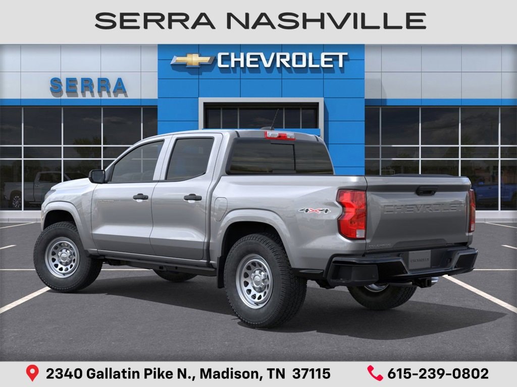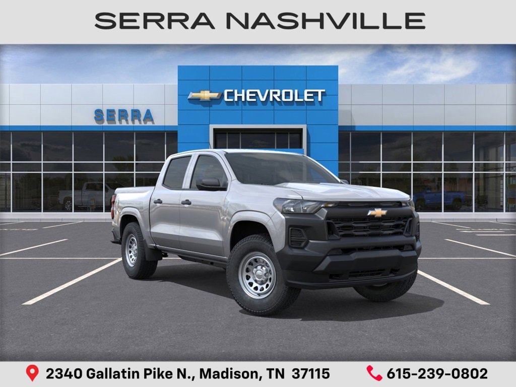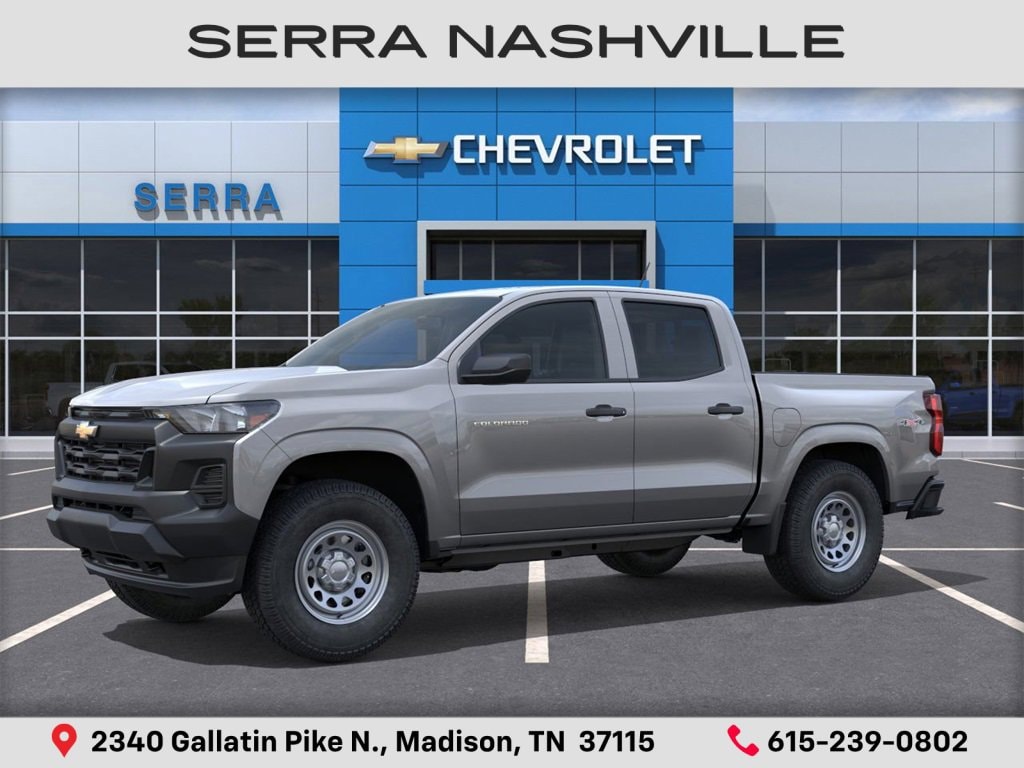 $1,206 off MSRP! Sterling Gray Metallic 2026 Chevrolet Colorado Work Truck For sale at Serra Chevrolet Nashville and well equipped: Advanced Trailering Package (Automatic Locking Rear Differential, Blind Zone Steering Assist w/Trailering, and Trailering App), Heavy-Duty Trailering Package (Integrated Trailer Brake Controller), Preferred Equipment Group 4WT (Automatic Emergency Braking, Chevy Safety Assist, Following Distance Indicator, Forward Collision Alert, Front Pedestrian & Bicyclist Braking, IntelliBeam Automatic High Beam On/Off, and Lane Keep Assist w/Lane Departure Warning), WT Convenience Package II (4-Spoke Wrapped Steering Wheel, 8-Way Power Driver Seat Adjuster, EZ-Lift & Lower Tailgate, Power Driver Lumbar Control Seat Adjuster, StowFlex Tailgate Storage Compartment, and Tailgate Keyed Cylinder Lock), 1st & 2nd Row All-Weather Floor Liner (LPO), 220 Amp Alternator, 3.42 Rear Axle Ratio, 4-Way Manual Passenger Seat Adjuster, 4-Wheel Disc Brakes, 6 Speakers, 6-Speaker Audio System Feature, 6-Way Manual Driver Seat Adjuster, ABS brakes, Air Conditioning, AM/FM radio: SiriusXM with 360L, Apple CarPlay/Android Auto, Auto High-beam Headlights, Brake assist, Cloth Seat Trim, Delay-off headlights, Driver door bin, Driver vanity mirror, Dual front impact airbags, Dual front side impact airbags, Electronic Stability Control, Emergency communication system: OnStar, Front anti-roll bar, Front Bucket Seats, Front Center Armrest, Front License Plate Kit, Front wheel independent suspension, Heated door mirrors, Low tire pressure warning, Navigation System, Occupant sensing airbag, Overhead airbag, Panic alarm, Passenger door bin, Passenger vanity mirror, Power door mirrors, Power steering, Power windows, Radio data system, Radio: 11.3 Diagonal Advanced Color LCD Display, Rear step bumper, Rear window defroster, Remote keyless entry, Remote Start Kit w/2 Key Fobs (LPO), Security system, SiriusXM w/360L Trial Subscription, Speed control, Speed-sensing steering, Split folding rear seat, Steering Wheel Mounted Audio Controls, Steering wheel mounted audio controls, Tachometer, Tilt steering wheel, Traction control, Trip computer, Variably intermittent wipers, Wheels: 17 x 8 Ultra Silver Metallic Steel, and Wireless Phone Projection.