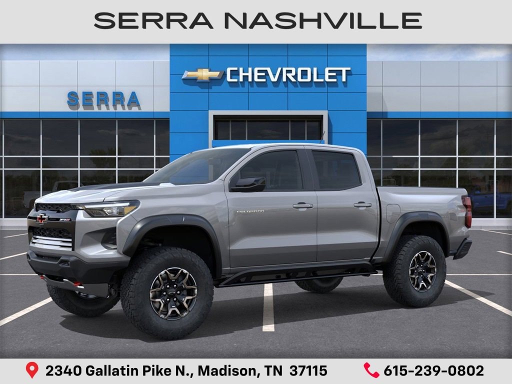 $1,654 off MSRP! Sterling Gray Metallic 2026 Chevrolet Colorado ZR2 For sale at Serra Chevrolet Nashville and well equipped: Preferred Equipment Group 4ZR (Automatic Emergency Braking, Chevy Safety Assist, Following Distance Indicator, Forward Collision Alert, Front Pedestrian & Bicyclist Braking, IntelliBeam Automatic High Beam On/Off, and Lane Keep Assist w/Lane Departure Warning), Technology Package (Adaptive Cruise Control, Bose Premium 7-Speaker Audio System Feature, HD Surround Vision, and Rear Pedestrian Alert), ZR2 Off-Road Package, 3.42 Rear Axle Ratio, 4-Way Manual Passenger Seat Adjuster, 4-Wheel Disc Brakes, 6 Speakers, 6-Speaker Audio System Feature, 8-Way Power Driver Seat Adjuster, ABS brakes, Air Conditioning, Alloy wheels, AM/FM radio: SiriusXM with 360L, Apple CarPlay/Android Auto, Auto High-beam Headlights, Auto-dimming Rear-View mirror, Automatic temperature control, Brake assist, Compass, Delay-off headlights, Driver & Front Passenger Heated Seats, Driver & Front Passenger Ventilated Seats, Driver door bin, Driver Memory Settings, Driver Seatback Map Pocket, Driver vanity mirror, Dual front impact airbags, Dual front side impact airbags, Electronic Stability Control, Emergency communication system: OnStar, Front anti-roll bar, Front Bucket Seats, Front Center Armrest, Front dual zone A/C, Front fog lights, Front Passenger Seatback Map Pocket, Front reading lights, Front wheel independent suspension, Heated door mirrors, Heated front seats, Heated steering wheel, Illuminated entry, Low tire pressure warning, Memory seat, Navigation System, Occupant sensing airbag, Outside temperature display, Overhead airbag, Overhead console, Panic alarm, Passenger door bin, Passenger vanity mirror, Perforated Leather-Appointed Seat Trim, Power door mirrors, Power Driver Lumbar Control Seat Adjuster, Power driver seat, Power Sliding Glass w/Manual Shade Sunroof, Power steering, Power windows, Radio data system, Radio: 11.3 Diagonal Advanced Color LCD Display, Rear reading lights, Rear seat center armrest, Rear step bumper, Rear window defroster, Remote keyless entry, Security system, SiriusXM w/360L Trial Subscription, Speed control, Speed-sensing steering, Split folding rear seat, Steering Wheel Mounted Audio Controls, Steering wheel mounted audio controls, Tachometer, Telescoping steering wheel, Tilt steering wheel, Traction control, Trip computer, Variably intermittent wipers, Ventilated front seats, Wheels: 17 x 8 Graphite & Oxide Gold Aluminum, and Wireless Phone Projection.