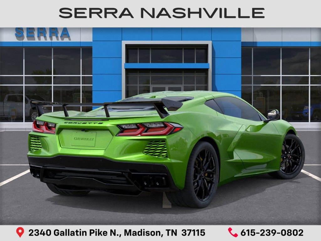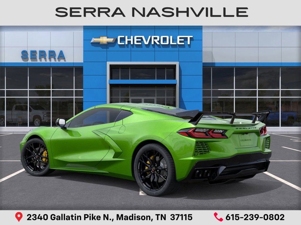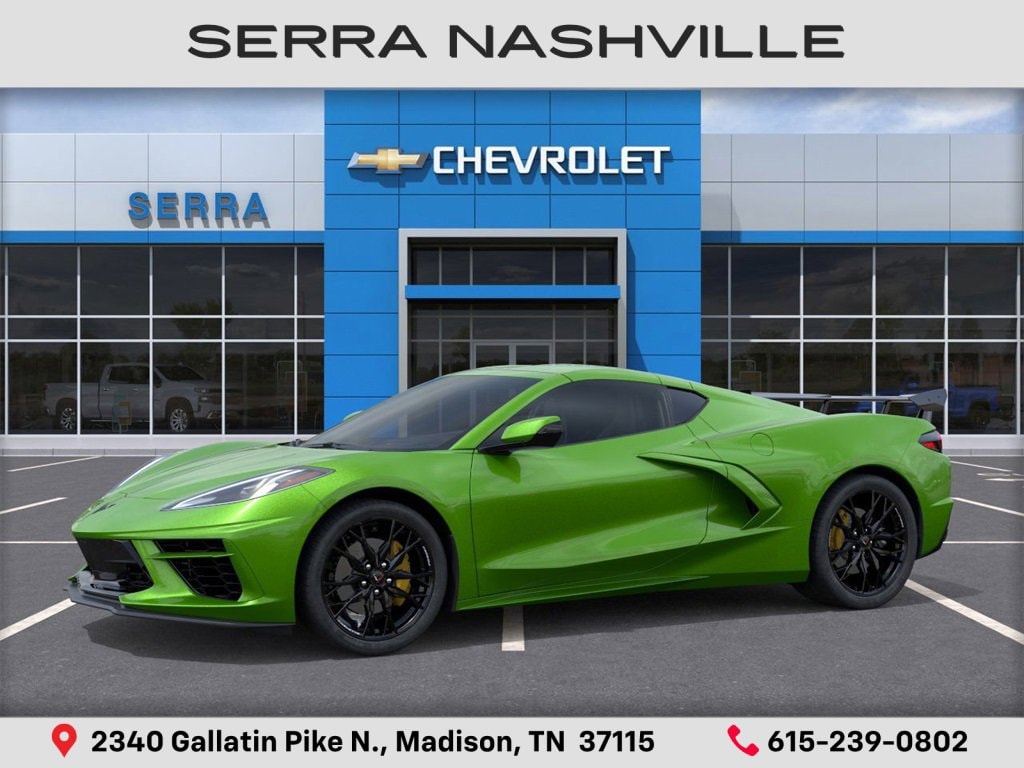 2026 Chevrolet Corvette Stingray For sale at Serra Chevrolet Nashville - Serra Nashville has the largest selection of the new Chevrolet Corvette in Nashville. This vehicle is Roswell Green Metallic and well equipped with Preferred Equipment Group 1LT, 10 Speakers, 4-Wheel Disc Brakes, 8-Way Power Driver Seat Adjuster, 8-Way Power Passenger Seat Adjuster, ABS brakes, Air Conditioning, Alloy wheels, AM/FM radio: SiriusXM, Auto High-beam Headlights, Auto-dimming Rear-View mirror, Automatic temperature control, Black Exhaust Tips, Black Lug Nuts, Body-Color Exterior Accents, Brake assist, Bumpers: body-color, Carbon Flash Metallic-Painted High Wing Spoiler, Compass, Dark Stealth Front Crossed Flags Emblem, Delay-off headlights, Driver door bin, Driver vanity mirror, Dual front impact airbags, Dual front side impact airbags, Electronic Stability Control, Emergency communication system: OnStar and Chevrolet connected services capable, Engine Lighting, Four wheel independent suspension, Front anti-roll bar, Front Bucket Seats, Front Center Armrest, Front dual zone A/C, Front reading lights, Fully automatic headlights, GT1 Bucket Seats, Heated door mirrors, Illuminated entry, Leather Shift Knob, Leather steering wheel, Low tire pressure warning, Mulan Leather Seating Surfaces with Perforated Inserts, Navigation System, Occupant sensing airbag, Outside temperature display, Overhead console, Panic alarm, Passenger door bin, Passenger vanity mirror, Performance Exhaust with Stainless-Steel Tips, Power door mirrors, Power driver seat, Power passenger seat, Power steering, Power windows, Premium audio system: Chevrolet Infotainment 3 Plus, Radio data system, Radio: Infotainment System with Google Built-in, Rear anti-roll bar, Rear window defroster, Remote keyless entry, Speed control, Speed-sensing steering, Sport steering wheel, Steering wheel mounted audio controls, Tachometer, Telescoping steering wheel, Tilt steering wheel, Traction control, Trip computer, Turn signal indicator mirrors, Variably intermittent wipers, Velocity Yellow-Painted Calipers, Voltmeter, Wheels: 19 x 8.5 Front & 20 x 11 Rear Gloss Black, Wheels: 19 x 8.5 Front and 20 x 11 Rear 5-Split-Spoke, and Yellow Seat Belt Color.