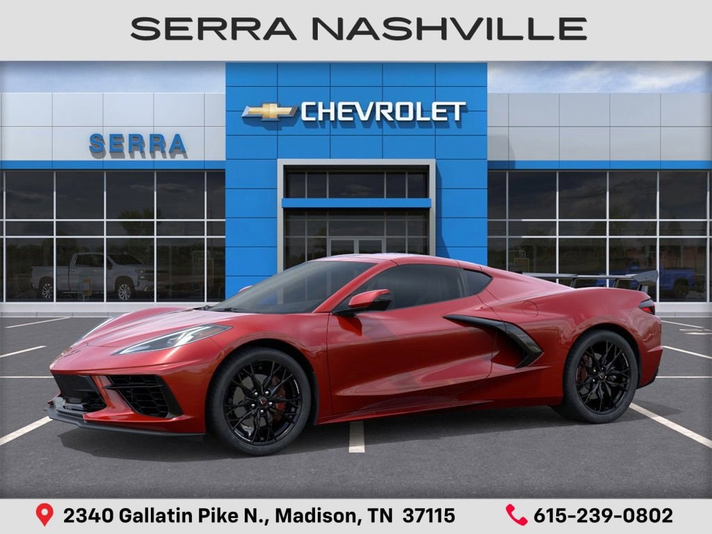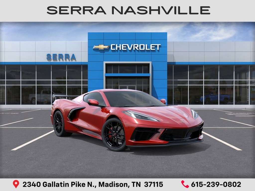 2026 Chevrolet Corvette Stingray For sale at Serra Chevrolet Nashville - Serra Nashville has the largest selection of the new Chevrolet Corvette in Nashville. This vehicle is Red Mist Metallic Tintcoat and well equipped with 10 Speakers, 4-Wheel Disc Brakes, 8-Way Power Driver Seat Adjuster, 8-Way Power Passenger Seat Adjuster, ABS brakes, Air Conditioning, All-Weather Floor Liners with Jake Logo, Alloy wheels, AM/FM radio: SiriusXM, Auto High-beam Headlights, Auto-dimming Rear-View mirror, Automatic temperature control, Brake assist, Bumpers: body-color, Carbon Flash Metallic-Painted High Wing Spoiler, Compass, Delay-off headlights, Driver door bin, Driver vanity mirror, Dual front impact airbags, Dual front side impact airbags, Edge Red-Painted Calipers, Electronic Stability Control, Emergency communication system: OnStar and Chevrolet connected services capable, Four wheel independent suspension, Front anti-roll bar, Front Bucket Seats, Front Center Armrest, Front dual zone A/C, Front reading lights, Fully automatic headlights, GT1 Bucket Seats, Heated door mirrors, Illuminated entry, Leather Shift Knob, Leather steering wheel, Low tire pressure warning, Mulan Leather Seating Surfaces with Perforated Inserts, Navigation System, Occupant sensing airbag, Outside temperature display, Overhead console, Panic alarm, Passenger door bin, Passenger vanity mirror, Power door mirrors, Power driver seat, Power passenger seat, Power steering, Power windows, Premium audio system: Chevrolet Infotainment 3 Plus, Radio data system, Radio: Infotainment System with Google Built-in, Rear anti-roll bar, Rear window defroster, Remote keyless entry, Speed control, Speed-sensing steering, Sport steering wheel, Steering wheel mounted audio controls, Tachometer, Telescoping steering wheel, Tilt steering wheel, Traction control, Trip computer, Turn signal indicator mirrors, Variably intermittent wipers, Voltmeter, Wheels: 19 x 8.5 Front & 20 x 11 Rear Gloss Black, and Wheels: 19 x 8.5 Front and 20 x 11 Rear 5-Split-Spoke.