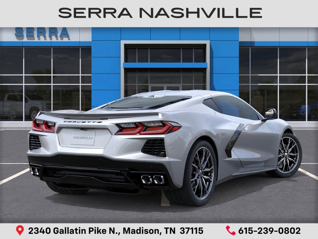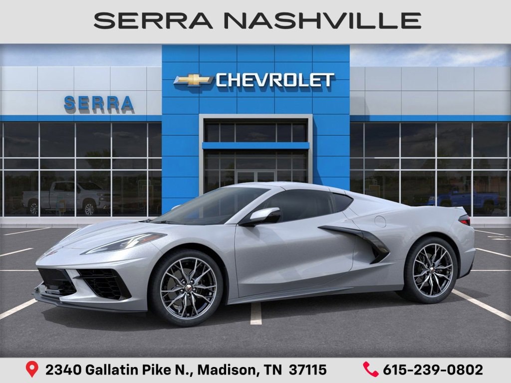 $6,000 off MSRP! 2026 Chevrolet Corvette Stingray For sale at Serra Chevrolet Nashville - Serra Nashville has the largest selection of the new Chevrolet Corvette in Nashville. This vehicle is Blade Silver Metallic and well equipped with 10 Speakers, 4-Wheel Disc Brakes, 8-Way Power Driver Seat Adjuster, 8-Way Power Passenger Seat Adjuster, ABS brakes, Air Conditioning, Alloy wheels, AM/FM radio: SiriusXM, Auto High-beam Headlights, Auto-dimming Rear-View mirror, Automatic temperature control, Brake assist, Bumpers: body-color, Compass, Contoured Cargo Area Liners with Jake Logo, Delay-off headlights, Driver door bin, Driver vanity mirror, Dual front impact airbags, Dual front side impact airbags, Electronic Stability Control, Emergency communication system: OnStar and Chevrolet connected services capable, Four wheel independent suspension, Front anti-roll bar, Front Bucket Seats, Front Center Armrest, Front dual zone A/C, Front reading lights, Fully automatic headlights, GT1 Bucket Seats, Heated door mirrors, Illuminated entry, Leather Shift Knob, Leather steering wheel, Low tire pressure warning, Low-Profile Rear Spoiler and Front Splitter, Mulan Leather Seating Surfaces with Perforated Inserts, Navigation System, Occupant sensing airbag, Outside temperature display, Overhead console, Panic alarm, Passenger door bin, Passenger vanity mirror, Power door mirrors, Power driver seat, Power passenger seat, Power steering, Power windows, Premium audio system: Chevrolet Infotainment 3 Plus, Radio data system, Radio: Infotainment System with Google Built-in, Rear anti-roll bar, Rear window defroster, Remote keyless entry, Speed control, Speed-sensing steering, Sport steering wheel, Steering wheel mounted audio controls, Tachometer, Telescoping steering wheel, Tilt steering wheel, Traction control, Trip computer, Turn signal indicator mirrors, Variably intermittent wipers, Voltmeter, and Wheels: 19 x 8.5 Front and 20 x 11 Rear 5-Split-Spoke.
