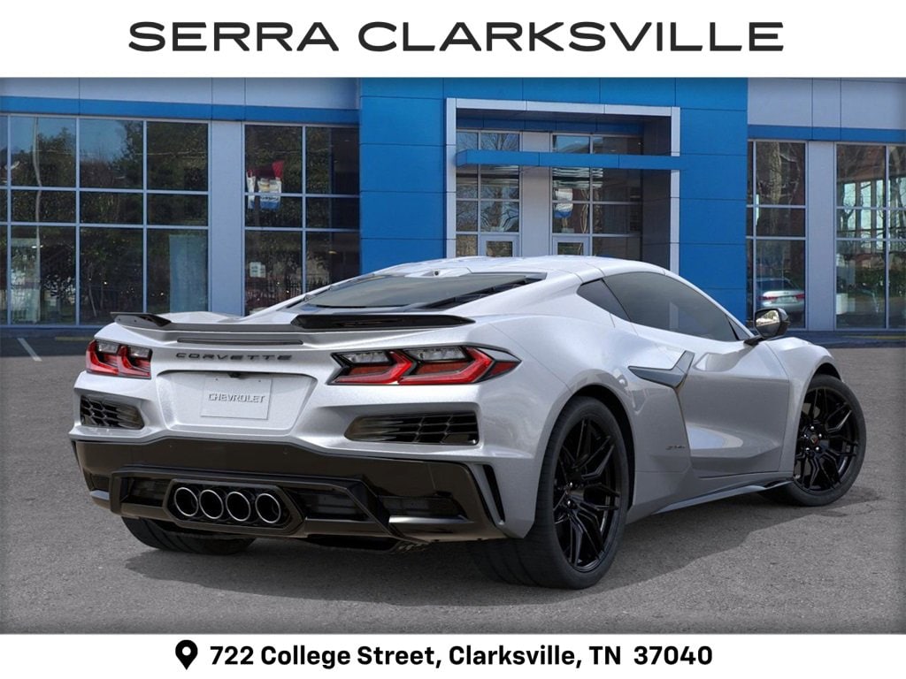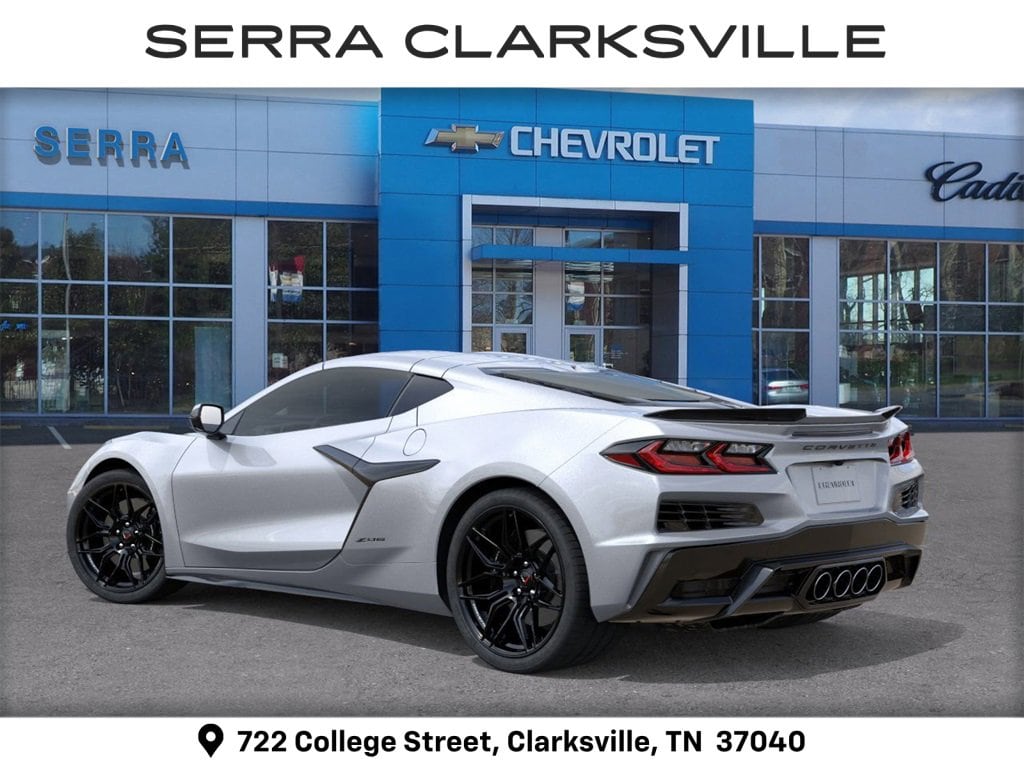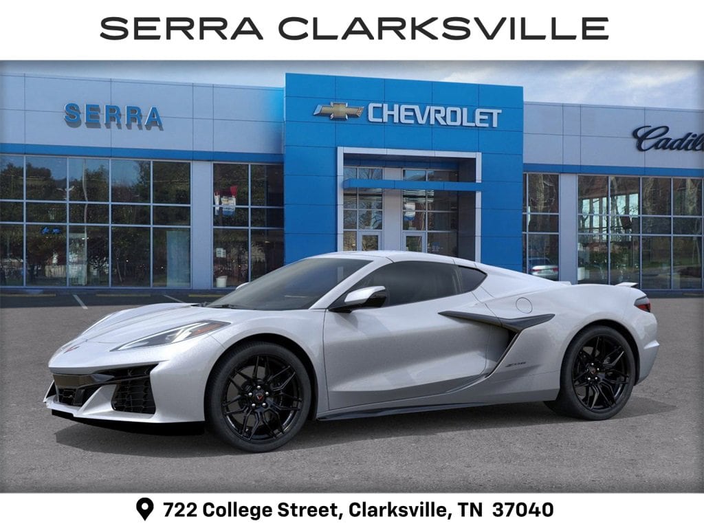 $10,000 off MSRP! Priced below KBB Fair Purchase Price! Silver Metallic 2026 Chevrolet Corvette Z06 For sale at Serra Chevrolet Clarksville is well equipped: Preferred Equipment Group 1LZ, 10 Speakers, 4-Wheel Disc Brakes, 8-Way Power Driver Seat Adjuster, 8-Way Power Passenger Seat Adjuster, ABS brakes, Adaptive suspension, Air Conditioning, Alloy wheels, AM/FM radio: SiriusXM, Auto High-beam Headlights, Auto-dimming Rear-View mirror, Automatic temperature control, Brake assist, Bumpers: body-color, Compass, Delay-off headlights, Driver door bin, Driver vanity mirror, Dual front impact airbags, Dual front side impact airbags, Electronic Stability Control, Emergency communication system: OnStar and Chevrolet connected services capable, Four wheel independent suspension, Front anti-roll bar, Front Bucket Seats, Front Center Armrest, Front dual zone A/C, Front reading lights, Fully automatic headlights, GT1 Bucket Seats, Heads-Up Display, Heated door mirrors, Illuminated entry, Leather Shift Knob, Leather steering wheel, Low tire pressure warning, Mulan Leather Seating Surfaces with Perforated Inserts, Navigation System, Occupant sensing airbag, Outside temperature display, Overhead console, Panic alarm, Passenger door bin, Passenger vanity mirror, Power door mirrors, Power driver seat, Power passenger seat, Power steering, Power windows, Premium audio system: Chevrolet Infotainment 3 Plus, Radio data system, Radio: Infotainment System with Google Built-in, Rear anti-roll bar, Rear window defroster, Remote keyless entry, Speed control, Speed-sensing steering, Spoiler, Sport steering wheel, Steering wheel mounted audio controls, Tachometer, Telescoping steering wheel, Tilt steering wheel, Traction control, Trip computer, Turn signal indicator mirrors, Variably intermittent wipers, Voltmeter, Wheels: 20 x 10 Front and 21 x 13 Rear Black, and Wheels: 20 x 10 Front and 21 x 13 Rear Titanium Satin.