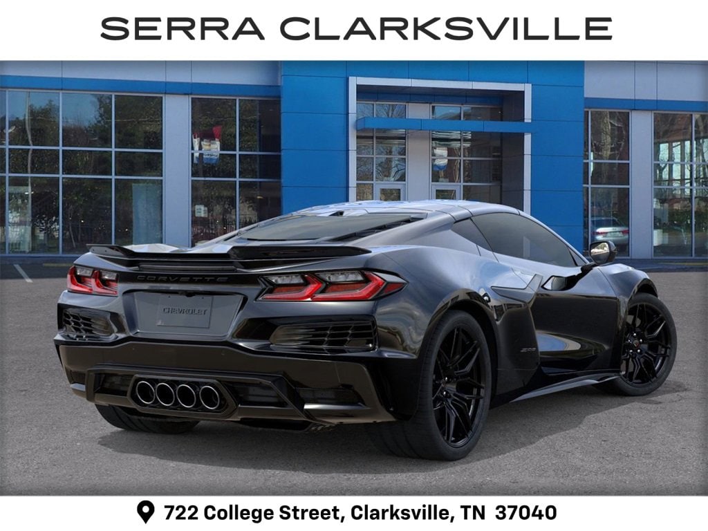 $10,000 off MSRP! Priced below KBB Fair Purchase Price! Black 2026 Chevrolet Corvette Z06 For sale at Serra Chevrolet Clarksville is well equipped: Preferred Equipment Group 1LZ, 10 Speakers, 4-Wheel Disc Brakes, 8-Way Power Driver Seat Adjuster, 8-Way Power Passenger Seat Adjuster, ABS brakes, Adaptive suspension, Air Conditioning, Alloy wheels, AM/FM radio: SiriusXM, Auto High-beam Headlights, Auto-dimming Rear-View mirror, Automatic temperature control, Brake assist, Bumpers: body-color, Compass, Delay-off headlights, Driver door bin, Driver vanity mirror, Dual front impact airbags, Dual front side impact airbags, Electronic Stability Control, Emergency communication system: OnStar and Chevrolet connected services capable, Four wheel independent suspension, Front anti-roll bar, Front Bucket Seats, Front Center Armrest, Front dual zone A/C, Front reading lights, Fully automatic headlights, GT1 Bucket Seats, Heads-Up Display, Heated door mirrors, Illuminated entry, Leather Shift Knob, Leather steering wheel, Low tire pressure warning, Mulan Leather Seating Surfaces with Perforated Inserts, Navigation System, Occupant sensing airbag, Outside temperature display, Overhead console, Panic alarm, Passenger door bin, Passenger vanity mirror, Power door mirrors, Power driver seat, Power passenger seat, Power steering, Power windows, Premium audio system: Chevrolet Infotainment 3 Plus, Radio data system, Radio: Infotainment System with Google Built-in, Rear anti-roll bar, Rear window defroster, Remote keyless entry, Speed control, Speed-sensing steering, Spoiler, Sport steering wheel, Steering wheel mounted audio controls, Tachometer, Telescoping steering wheel, Tilt steering wheel, Traction control, Trip computer, Turn signal indicator mirrors, Variably intermittent wipers, Voltmeter, Wheels: 20 x 10 Front and 21 x 13 Rear Black, and Wheels: 20 x 10 Front and 21 x 13 Rear Titanium Satin.