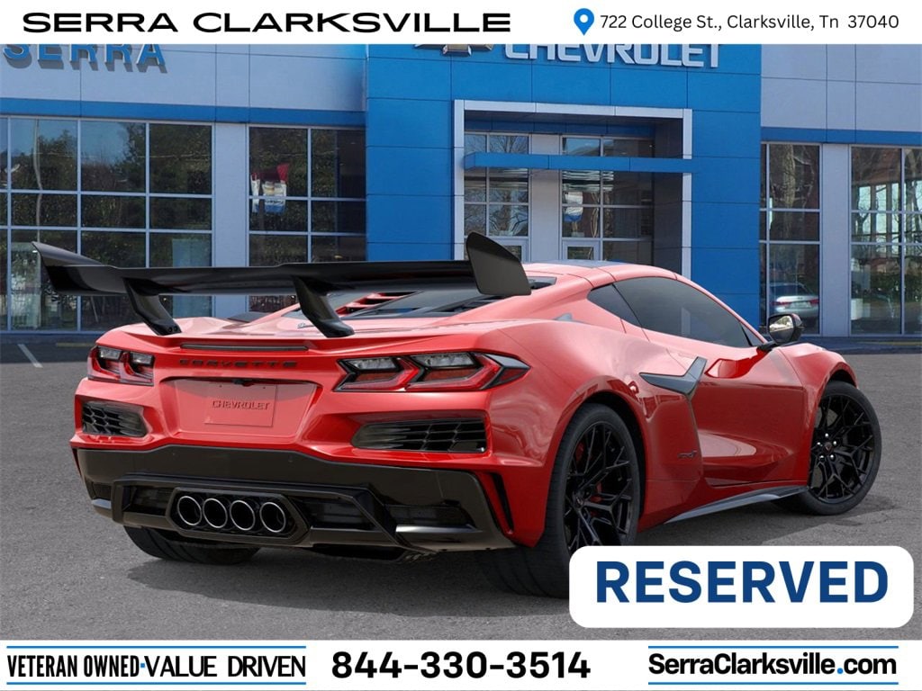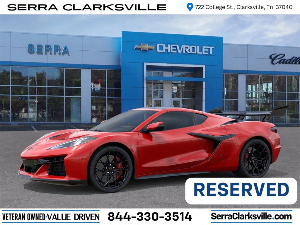 Torch Red 2026 Chevrolet Corvette ZR1 For sale at Serra Chevrolet Clarksville is well equipped: Custom Leather Wrapped Interior Package, Memory Driver and Passenger Convenience Package, Sueded Microfiber-Wrapped Upper Interior Trim Package, 14 Speakers, 2 Cargo Nets, 4-Wheel Disc Brakes, 8-Way Power Driver Seat Adjuster, 8-Way Power Passenger Seat Adjuster, ABS brakes, Adaptive suspension, Air Conditioning, Alloy wheels, AM/FM radio: SiriusXM, Auto High-beam Headlights, Auto-dimming door mirrors, Auto-dimming Rear-View mirror, Automatic temperature control, Bose Performance Series Sound System with 14 Speakers, Brake assist, Bumpers: body-color, Ceramic disc brakes: front and rear, Compass, Delay-off headlights, Driver door bin, Driver Power Bolster Seat Adjuster, Driver vanity mirror, Dual front impact airbags, Dual front side impact airbags, Electrical Theft Deterrent System, Electronic Stability Control, Emergency communication system: OnStar and Chevrolet connected services capable, Exterior Parking Camera Rear, Four wheel independent suspension, Front anti-roll bar, Front Bucket Seats, Front Center Armrest, Front dual zone A/C, Front reading lights, Fully automatic headlights, Garage door transmitter, GT2 Bucket Seats, HD Front and Rear Vision Cameras, Heads-Up Display, Heated and Vented Driver and Passenger Seats, Heated door mirrors, Heated front seats, Heated Steering Wheel, Heated steering wheel, Illuminated entry, Leather Shift Knob, Leather steering wheel, Low tire pressure warning, Memory seat, Napa Leather Seating Surfaces with Perforated Inserts, Navigation System, Occupant sensing airbag, Outside temperature display, Overhead console, Panic alarm, Passenger door bin, Passenger Power Bolster Seat Adjuster, Passenger vanity mirror, Power door mirrors, Power Driver Lumbar Control Seat Adjuster, Power driver seat, Power Passenger Lumbar Control Seat Adjuster, Power passenger seat, Power steering, Power windows, Power-Adjustable Outside Heated Mirrors, Premium audio system: Chevrolet Infotainment 3 Premium, Radio data system, Radio: Infotainment System with Google Built-in, Rear anti-roll bar, Rear Cross Traffic Alert, Rear window defroster, Remote keyless entry, Security system, Side Blind Zone Alert, Speed control, Speed-sensing steering, Spoiler, Sport steering wheel, Steering wheel memory, Steering wheel mounted audio controls, Tachometer, Telescoping steering wheel, Tilt steering wheel, Traction control, Trip computer, Turn signal indicator mirrors, Universal Home Remote, Variably intermittent wipers, Vehicle Inclination Theft Deterrent Sensor, Vehicle Interior Movement Theft Deterrent Sensor, Ventilated front seats, Voltmeter, Wheels: 20 x 10 Front and 21 x 13 Rear Sterling Silver, and Wireless Phone Charging.