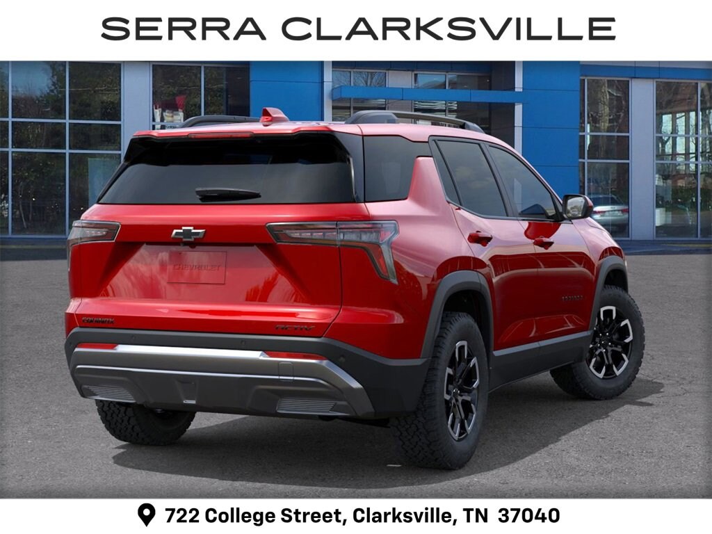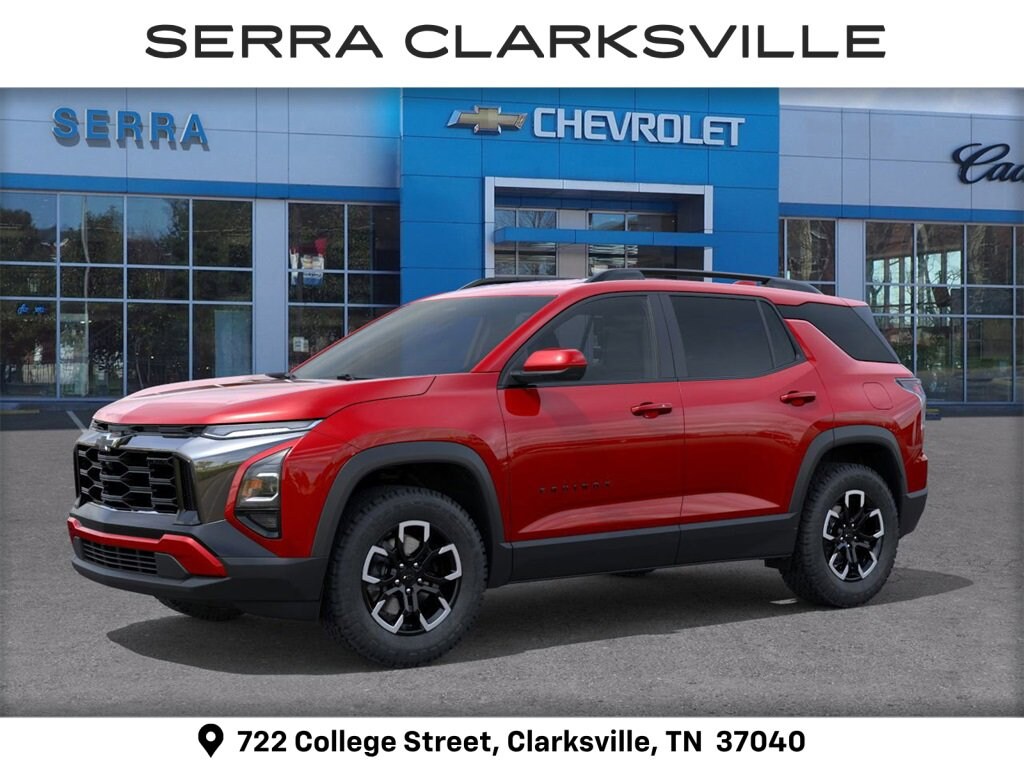 $737 off MSRP! Radiant Red 2026 Chevrolet Equinox ACTIV For sale at Serra Chevrolet Clarksville is well equipped: 2-Way Power Driver Lumbar Control Seat Adjuster, 4-Wheel Disc Brakes, 5.81 Final Drive Axle Ratio, 6 Speakers, ABS brakes, Air Conditioning, Alloy wheels, AM/FM radio: SiriusXM, Auto High-beam Headlights, Automatic temperature control, Brake assist, Bumpers: body-color, Compass, Delay-off headlights, Driver 8-Way Power Seat Adjuster, Driver door bin, Driver vanity mirror, Dual front impact airbags, Dual front side impact airbags, Electronic Stability Control, Emergency communication system: OnStar and Chevrolet connected services capable, Four wheel independent suspension, Front anti-roll bar, Front Bucket Seats, Front Center Armrest, Front dual zone A/C, Front Passenger 4-Way Manual Seat Adjuster, Front reading lights, Fully automatic headlights, Garage door transmitter, Heated door mirrors, Heated Driver & Front Passenger Seats, Heated front seats, Heated steering wheel, Illuminated entry, Low tire pressure warning, Memory seat, Navigation System, Occupant sensing airbag, Outside temperature display, Overhead airbag, Overhead console, Panic alarm, Passenger door bin, Passenger vanity mirror, Power door mirrors, Power driver seat, Power Liftgate, Power steering, Power windows, Premium audio system: Chevrolet Infotainment 3 Plus, Radio data system, Radio: 11.3 Diagonal Advanced Color LCD Display, Rain sensing wipers, Rear anti-roll bar, Rear reading lights, Rear seat center armrest, Rear window defroster, Rear window wiper, Remote keyless entry, Security system, SiriusXM w/360L Trial Subscription, Speed control, Speed-sensing steering, Split folding rear seat, Spoiler, Steering wheel mounted audio controls, Sueded Microfiber Seat Trim, Tachometer, Telescoping steering wheel, Tilt steering wheel, Traction control, Trip computer, Variably intermittent wipers, and Wheels: 17 Dark Android Machined-Face Aluminum.