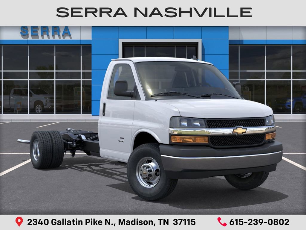 2026 Chevrolet Express 3500 Work Van For sale at Serra Chevrolet Nashville - Serra Nashville has the largest selection of the new Chevrolet Express 3500 in Nashville. This vehicle is Summit White and well equipped with Chrome Appearance Package (Chrome Grille and Front Chrome Bumper with Step-Pad), Driver Convenience Package (Cruise Control and Tilt Steering Wheel), Power Convenience Package (Power Door Locks with Lock-Out Protection and Power Windows), Preferred Equipment Group 1WT, 10K-14K GVW Emission System, 2 Speakers, 4-Wheel Disc Brakes, a 770 CCA Heavy-Duty Maintenance-Free Battery for those cold mornings, ABS brakes, Air Conditioning, AM/FM radio, Antenna Equipment, Bluetooth Phone Connection Kit, Delay-off headlights, Driver and Front Passenger High-Back Bucket Seats, Driver door bin, Driver's Seat Mounted Armrest, Dual front impact airbags, Dual front side impact airbags, Dual Rear Wheel Configuration, Electronic Stability Control, Emergency communication system, Engine Cover Console with Swing-Out Storage Bin, Exterior Parking Camera Rear, Front anti-roll bar, Front Bucket Seats, Front wheel independent suspension, Fuel Tank Capacity Approx. 57 Gallons (215.7L), Fully automatic headlights, Heavy-Duty Locking Rear Differential, Inside Rearview Mirror with Rear Vision Camera Display, Low tire pressure warning, Occupant sensing airbag, Overhead airbag, Passenger cancellable airbag, Passenger door bin, Passenger seat mounted armrest, Power steering, Radio: AM/FM Stereo with MP3 Player and Digital Clock, Reclining Front Bucket Seats with Inboard Armrests, Remote Keyless Entry, Single Rear Wheel Configuration, Tachometer, Theft Alarm Notification, Traction control, Trip computer, Variably intermittent wipers, Vinyl Seat Trim, Voltmeter, Wheels: 16 x 6.5 8-Lug Painted Steel Heavy Duty, and Wide-Stance Sail Panel Mounted Outside Mirrors.