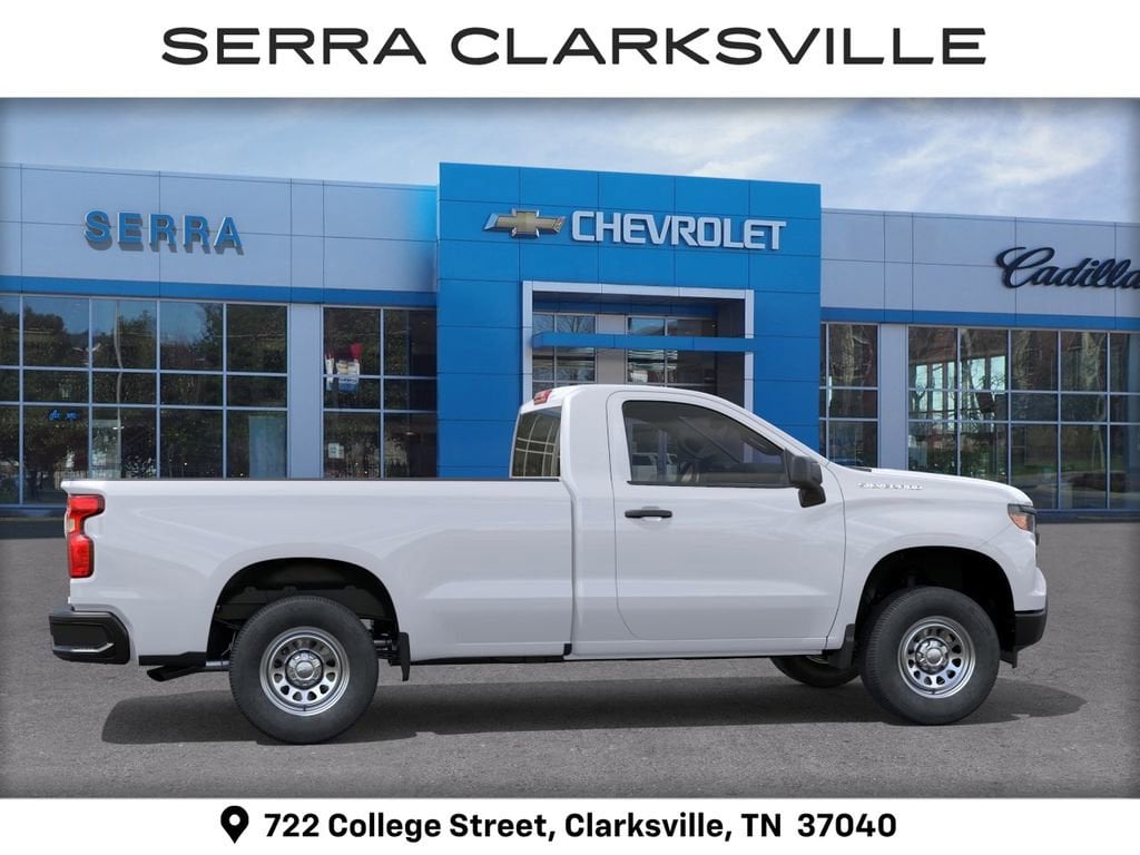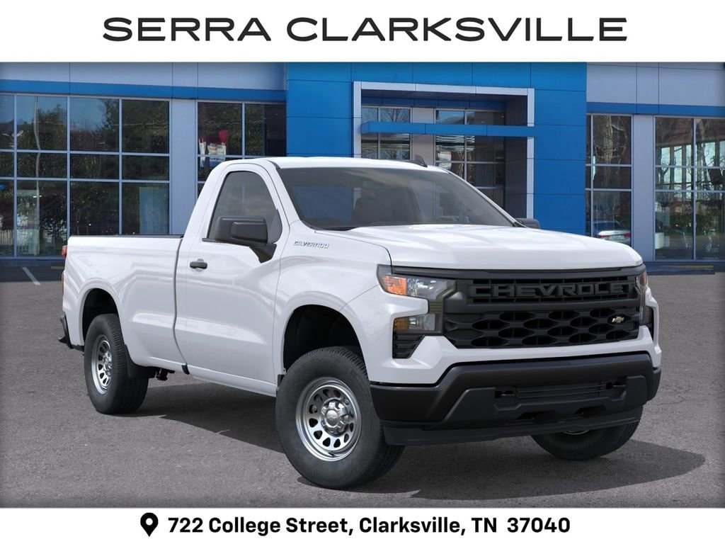 Ask us about special APR rates, lease offers and incentives available on most new 2026 Silverado 1500s. If you're shopping for a new Chevrolet Silverado 1500 near Clarksville, look no further than Serra Chevrolet Clarksville, 722 College Street, Clarksville, TN Call 888-332-5601 or online at SerraClarksville.com. Veteran Owned-Value Driven, Serra Chevy Clarksville is the dealer of choice for Clarksville and the surrounding area. Serra Value Price includes all rebates and discounts available to everyone. Price does not include tax, title, registration, optional equipment purchased at time of sale or processing fee of $895. $1157 - Supplier Discount for Everyone. Exp. 04/30/2026 $2000 - Customer Cash. Exp. 04/30/2026