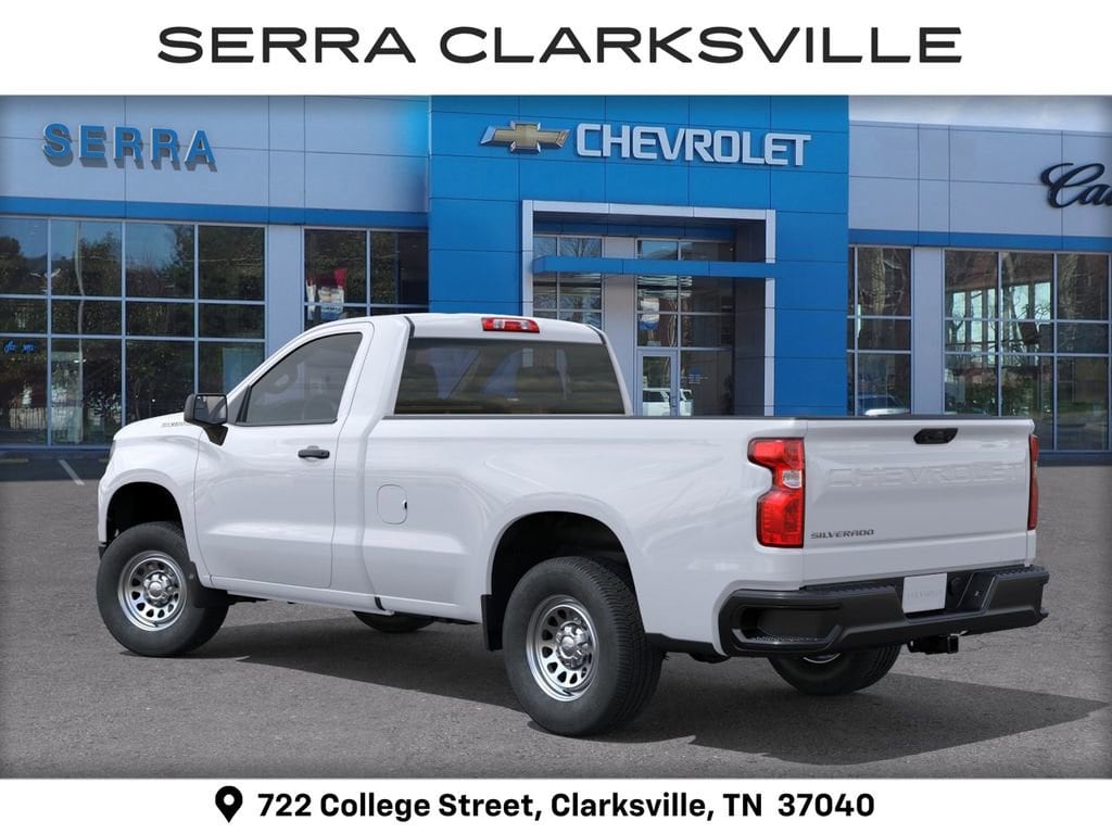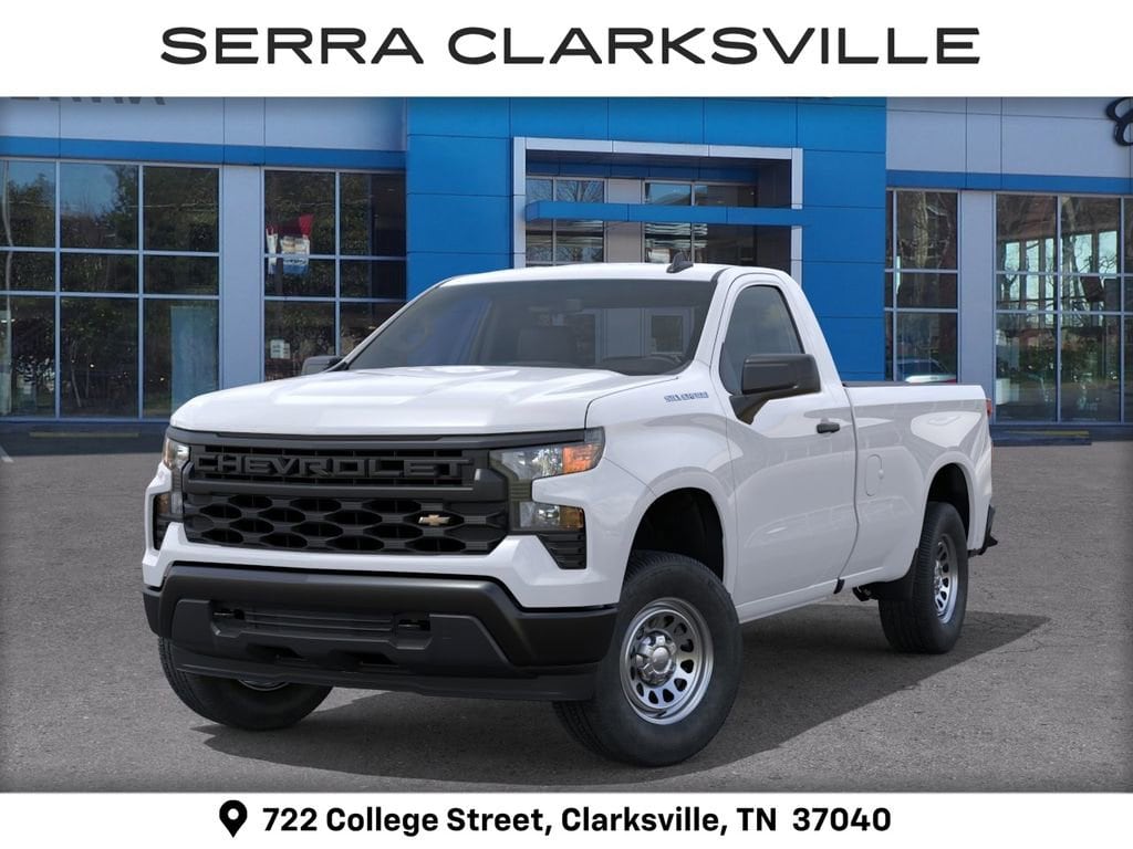 $3,157 off MSRP! Priced below KBB Fair Purchase Price! Red 2026 Chevrolet Silverado 1500 WT For sale at Serra Chevrolet Clarksville is well equipped: Standard Suspension Package, 8-Speed Automatic, Jet Blk Vinyl, 2 Speakers, 2-Speaker Audio System, 220 Amp Alternator, 3.42 Rear Axle Ratio, 3.5 Monochromatic Display Driver Info Center, 4-Way Manual Driver Seat Adjuster, 4-Wheel Disc Brakes, 40/20/40 Front Split Bench Seat, ABS brakes, Air Conditioning, AM/FM radio, Apple CarPlay/Android Auto, Auto High-beam Headlights, Automatic Emergency Braking, Black (Semi-Gloss) Front Bumper, Black (Semi-Gloss) Rear Bumper, Bluetooth® For Phone, Brake assist, Compass, Delay-off headlights, Driver door bin, Dual front impact airbags, Dual front side impact airbags, Electronic Cruise Control, Electronic Stability Control, Emergency communication system: OnStar, Following Distance Indicator, Forward Collision Alert, Front anti-roll bar, Front Center Armrest w/Storage, Front Frame-Mounted Black Recovery Hooks, Front Pedestrian Braking, Front reading lights, Front wheel independent suspension, Fully automatic headlights, HD Rear Vision Camera, Heated door mirrors, Heated Power-Adjustable Outside Mirrors, Illuminated entry, Inside Rearview Mirror with Tilt, IntelliBeam Automatic High Beam on/Off, Lane Keep Assist with Lane Departure Warning, Locking Tailgate, Low tire pressure warning, Manual Tailgate Function with No EZ Lift, Manual Tilt Wheel Steering Column, Occupant sensing airbag, OnStar Services Capable, Outside temperature display, Overhead airbag, Overhead console, Panic alarm, Passenger door bin, Passenger vanity mirror, Power door mirrors, Power Front Windows with Driver Express Up/Down, Power steering, Power windows, Premium audio system: Chevrolet Infotainment 3, Radio data system, Radio: Chevrolet Infotainment 3 System, Rear reading lights, Rear step bumper, Remote Keyless Entry, Remote keyless entry, Rubberized-Vinyl Floor Covering, SiriusXM Delete, Solar Absorbing Tinted Glass, Speed control, Speed-sensing steering, Standard Tailgate, Tachometer, Teen Driver, Tilt steering wheel, Tire Pressure Monitoring System, Traction control, Trip computer, Variably intermittent wipers, Vinyl Seat Trim, Voltmeter, Wheels: 17 x 8 Ultra Silver Painted Steel, and Wi-Fi Hot Spot Capable.