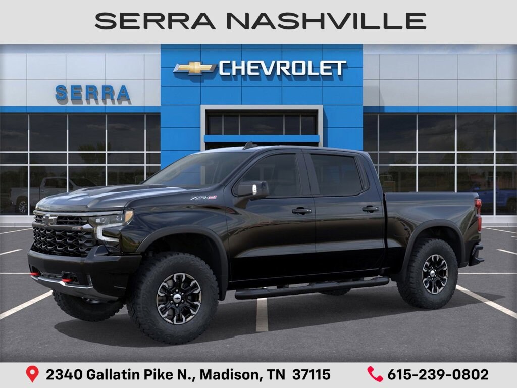$4,250 off MSRP! 2026 Chevrolet Silverado 1500 ZR2 For sale at Serra Chevrolet Nashville - Serra Nashville has the largest selection of the new Chevrolet Silverado 1500 in Nashville. This vehicle is Black and well equipped with Dark Essentials Package (Black Name Plates and Front Black Bowtie Emblem), Technology Package (15 Diagonal Multicolor Head-Up Display, Adaptive Cruise Control, Power Tilt and Telescoping Steering Column, and Rear Camera Mirror), Trailering Package (Hitch Guidance), Up-Level Rear Seat with Storage Package, ZR2 Suspension Package, 10-Speed Automatic, 4WD, Jet Black/Graystone Leather, 10-Way Power Driver Seat with Lumbar, 10-Way Power Passenger Seat Adjuster with Lumbar, 12.3 Multicolor Reconfigurable Digital Display, 120-Volt Bed Mounted Power Outlet, 120-Volt Interior Power Outlet, 2 USB Data Ports, 220 Amp Alternator, 2nd Row Heated Outboard Seats, 3.23 Rear Axle Ratio, 4-Wheel Disc Brakes, 4 Black Round Assist Steps, 7 Speakers, 850 Cold-Cranking Amps Heavy-Duty Battery, ABS brakes, Air Conditioning, All-Weather Floor Liner, Alloy wheels, AM/FM radio: SiriusXM with 360L, Apple CarPlay/Android Auto, Auto High-beam Headlights, Auto-dimming door mirrors, Auto-dimming Rear-View mirror, Automatic Emergency Braking, Automatic temperature control, Bed View Camera, Block heater, Bluetooth® For Phone, Brake assist, Chevytec Spray-on Black Bedliner, Color-Keyed Carpeting Floor Covering, Compass, Deep-Tinted Glass, Delay-off headlights, Driver door bin, Driver Memory, Driver vanity mirror, Dual Exhaust, Dual front impact airbags, Dual front side impact airbags, Dual Rear USB Ports (charge Only), Electric Rear-Window Defogger, Electronic Stability Control, Electronic Transmission Range Selector Shifter, Emergency communication system: OnStar, Engine Block Heater, EZ Lift Power Lock and Release Tailgate, Floor Mounted Center Console, Following Distance Indicator, Forward Collision Alert, Front anti-roll bar, Front Bucket Seats, Front Center Armrest, Front dual zone A/C, Front fog lights, Front LED Fog Lamps, Front Pedestrian Braking, Front Rain-Sensing Wipers, Front reading lights, Front wheel independent suspension, Fully automatic headlights, Garage door transmitter, HD Surround Vision, Heads-Up Display, Heated door mirrors, Heated Driver and Front Outboard Passenger Seats, Heated front seats, Heated rear seats, Heated Steering Wheel, Heated steering wheel, Heavy-Duty Air Filter, High Gloss Black Mirror Caps, Hill Descent Control, Hitch Guidance with Hitch View, Illuminated entry, in-Vehicle Trailering System App, Integrated Trailer Brake Controller, IntelliBeam Automatic High Beam on/Off, Keyless Open and Start, Lane Keep Assist with Lane Departure Warning, LED Cargo Area Lighting, Low tire pressure warning, Memory seat, Multi-Flex Tailgate, Occupant sensing airbag, OnStar Services Capable, Outside Heated Power-Adjustable Mirrors, Outside temperature display, Overhead airbag, Overhead console, Panic alarm, Passenger door bin, Passenger vanity mirror, Perforated Leather Seat Trim, Performance Red Recovery Hooks, Perimeter Lighting, Power door mirrors, Power driver seat, Power Front Passenger Windows with Express Up/Down, Power Front Windows with Driver Express Up/Down, Power passenger seat, Power Rear Windows with Express Down, Power Sliding Rear Window with Rear Defogger, Power steering, Power Sunroof, Power windows, Premium audio system: Chevrolet Infotainment 3 Premium, Premium Bose 7-Speaker Sound System, Radio data system, Radio: Chevrolet Infotainment 3 Premium System, Rain sensing wipers, Rear Cross Traffic Braking, Rear Pedestrian Alert, Rear reading lights, Rear seat center armrest, Rear step bumper, Rear Wheelhouse Liners, Rear w Serra Value Price includes all rebates and discounts available to everyone. Price does not include tax, title, registration, optional equipment purchased at time of sale or processing fee of $895. $1750 - Bonus Cash. Exp. 03/02/