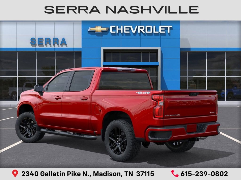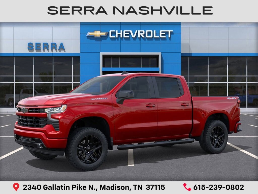 $5,548 off MSRP! 2026 Chevrolet Silverado 1500 RST For sale at Serra Chevrolet Nashville - Serra Nashville has the largest selection of the new Chevrolet Silverado 1500 in Nashville. This vehicle is Radiant Red Tintcoat and well equipped with Convenience Package (10-Way Power Driver Seat w/Lumbar, 120-Volt Bed Mounted Power Outlet, 120-Volt Interior Power Outlet, Dual Rear USB Ports (Charge Only), Dual-Zone Automatic Climate Control, Electric Rear-Window Defogger, Heated Driver & Front Outboard Passenger Seats, Heated Steering Wheel, Keyless Open & Start, LED Cargo Area Lighting, Manual Tilt/Telescoping Steering Column, Remote Vehicle Starter System, Theft Deterrent System (Unauthorized Entry), and Wrapped Steering Wheel), High Capacity Suspension Package, Preferred Equipment Group 1SP (12.3 Multicolor Reconfigurable Digital Display, 6-Speaker Audio System, All-Star Edition, Auto-Locking Rear Differential, Bluetooth® For Phone, Color-Keyed Carpeting Floor Covering, Deep-Tinted Glass, Electronic Cruise Control, EZ Lift Power Lock & Release Tailgate, Front Frame-Mounted Black Recovery Hooks, Front LED Fog Lamps, Front Rubberized Vinyl Floor Mats, HD Rear Vision Camera, Heated Power-Adjustable Outside Mirrors, High Gloss Black Mirror Caps, Inside Rear-View Mirror w/Tilt, Integrated Trailer Brake Controller, OnStar Services Capable, Power Front Windows w/Driver Express Up/Down, Power Front Windows w/Passenger Express Down, Power Rear Windows w/Express Down, Rear 60/40 Folding Bench Seat (Folds Up), Rear Rubberized-Vinyl Floor Mats, SiriusXM w/360L Trial Subscription, Standard Tailgate, Steering Wheel Audio Controls, Teen Driver, Tire Pressure Monitoring System, and Wi-Fi Hot Spot Capable), RST Select Package (4 Black Round Assist Steps (LPO), All-Weather Floor Liner (LPO), Chevytec Spray-On Black Bedliner, and Wheels: 20 x 9 High Gloss Black Painted Alum), Standard Suspension Package, Trailering Package (Hitch Guidance), 8-Speed Automatic, 4WD, Jet Black Cloth, 220 Amp Alternator, 3.42 Rear Axle Ratio, 4-Wheel Disc Brakes, 40/20/40 Front Split-Bench Seat, 6 Speakers, ABS brakes, Air Conditioning, Alloy wheels, AM/FM radio: SiriusXM with 360L, Apple CarPlay/Android Auto, Auto High-beam Headlights, Automatic Emergency Braking, Automatic temperature control, Brake assist, Bumpers: body-color, Cloth Seat Trim, Compass, Delay-off headlights, Driver door bin, Driver vanity mirror, Dual front impact airbags, Dual front side impact airbags, Electronic Stability Control, Emergency communication system: OnStar, Following Distance Indicator, Forward Collision Alert, Front anti-roll bar, Front Center Armrest w/Storage, Front dual zone A/C, Front fog lights, Front Pedestrian Braking, Front reading lights, Front wheel independent suspension, Fully automatic headlights, Heated door mirrors, Heated front seats, Heated steering wheel, Illuminated entry, IntelliBeam Automatic High Beam On/Off, Lane Keep Assist w/Lane Departure Warning, Low tire pressure warning, Occupant sensing airbag, Outside temperature display, Overhead airbag, Overhead console, Panic alarm, Passenger door bin, Passenger vanity mirror, Power door mirrors, Power driver seat, Power steering, Power windows, Premium audio system: Chevrolet Infotainment 3 Premium, Radio data system, Radio: Chevrolet Infotainment 3 Premium System, Rear reading lights, Rear step bumper, Rear window defroster, Remote keyless entry, Security system, Single Outlet Exhaust, Speed control, Speed-sensing steering, Split folding rear seat, Steering wheel mounted audio controls, Tachometer, Telescoping steering wheel, Tilt steering wheel, Traction control, Trip computer, Varia Serra Value Price includes all rebates and discounts available to everyone. Price does not include tax, title, registration, optional equipment purchased at time of sale or processing fee of $895. $1000 - Bonus Cash. Exp. 03/02/2026 $1000 - Select Market Purchase Bonus Cash. Exp. 03/02/2