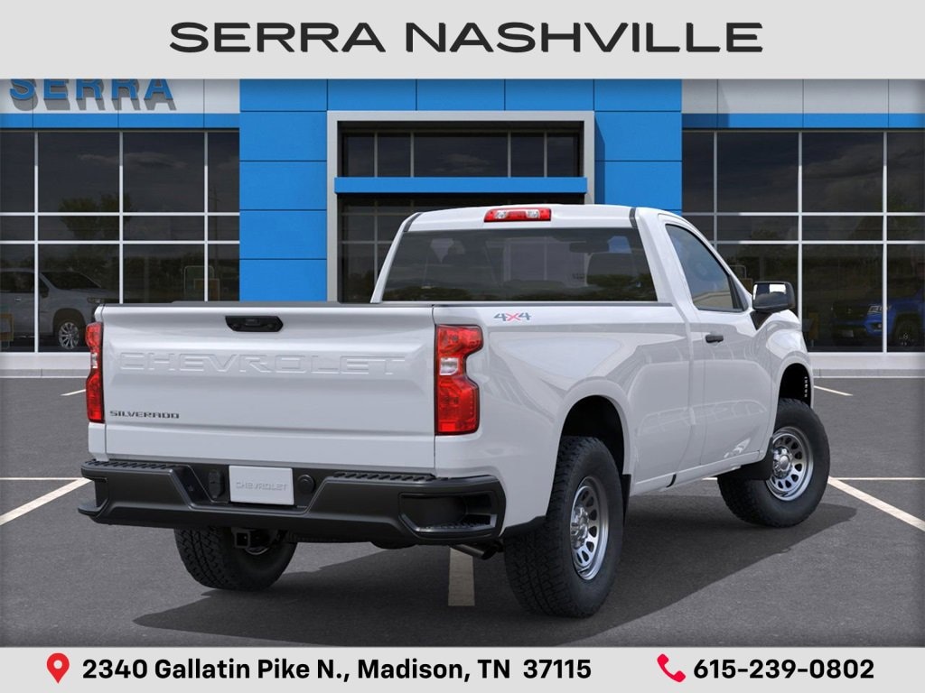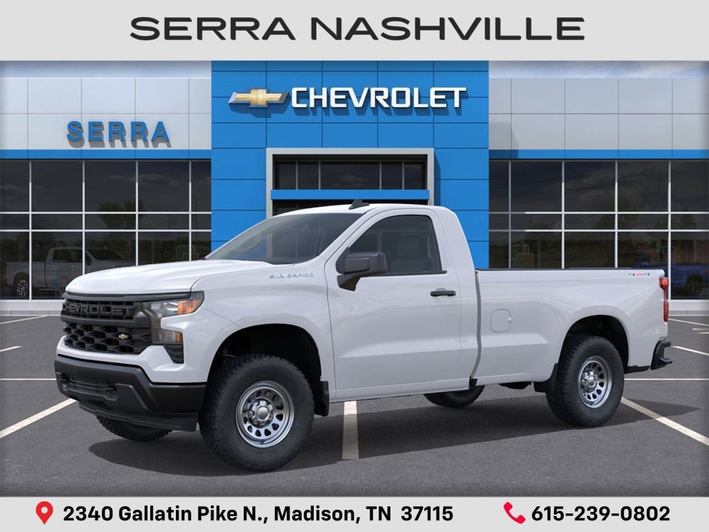 $4,000 off MSRP! Priced below KBB Fair Purchase Price! 2026 Chevrolet Silverado 1500 WT For sale at Serra Chevrolet Nashville - Serra Nashville has the largest selection of the new Chevrolet Silverado 1500 in Nashville. This vehicle is Summit White and well equipped with Preferred Equipment Group 1WT (3.5 Monochromatic Display Driver Info Center, 4-Way Manual Driver Seat Adjuster, 40/20/40 Front Split Bench Seat, Black (Semi-Gloss) Front Bumper, Black (Semi-Gloss) Rear Bumper, Bluetooth® For Phone, Electronic Cruise Control, Front Frame-Mounted Black Recovery Hooks, HD Rear Vision Camera, Heated Power-Adjustable Outside Mirrors, Inside Rearview Mirror with Tilt, Locking Tailgate, Manual Tailgate Function with No EZ Lift, Manual Tilt Wheel Steering Column, OnStar Services Capable, Power Front Windows with Driver Express Up/Down, Power Front Windows with Passenger Express Down, Remote Keyless Entry, Rubberized-Vinyl Floor Covering, SiriusXM Delete, Solar Absorbing Tinted Glass, Standard Tailgate, Teen Driver, Tire Pressure Monitoring System, Vinyl Seat Trim, Wheels: 17 x 8 Ultra Silver Painted Steel, and Wi-Fi Hot Spot Capable), Standard Suspension Package, Trailering Package (Hitch Guidance), 8-Speed Automatic, 4WD, Jet Black Vinyl, 120-Volt Bed Mounted Power Outlet, 120-Volt Interior Power Outlet, 2 Speakers, 2-Speaker Audio System, 220 Amp Alternator, 3.42 Rear Axle Ratio, 4-Wheel Disc Brakes, ABS brakes, Air Conditioning, Apple CarPlay/Android Auto, Auto High-beam Headlights, Auto-Locking Rear Differential, Automatic Emergency Braking, Brake assist, Compass, Delay-off headlights, Driver door bin, Dual front impact airbags, Dual front side impact airbags, Electronic Stability Control, Emergency communication system: OnStar, EZ Lift Power Lock and Release Tailgate, Following Distance Indicator, Forward Collision Alert, Front anti-roll bar, Front Center Armrest w/Storage, Front Pedestrian Braking, Front reading lights, Front wheel independent suspension, Fully automatic headlights, Heated door mirrors, Illuminated entry, IntelliBeam Automatic High Beam on/Off, Lane Keep Assist with Lane Departure Warning, Low tire pressure warning, Occupant sensing airbag, Outside temperature display, Overhead airbag, Overhead console, Panic alarm, Passenger door bin, Passenger vanity mirror, Power door mirrors, Power steering, Power windows, Premium audio system: Chevrolet Infotainment 3, Radio data system, Radio: Chevrolet Infotainment 3 System, Rear reading lights, Rear step bumper, Remote keyless entry, Speed control, Speed-sensing steering, Tachometer, Tilt steering wheel, Traction control, Trip computer, Variably intermittent wipers, and Voltmeter.