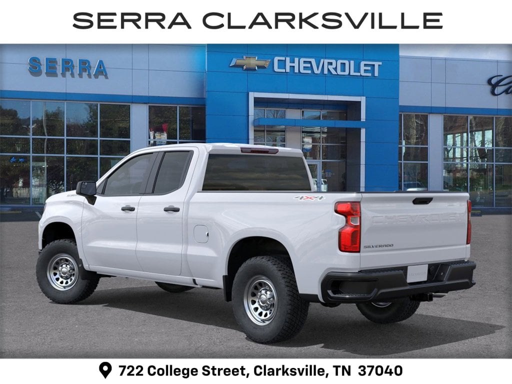 $5,454 off MSRP! Priced below KBB Fair Purchase Price! Summit White 2026 Chevrolet Silverado 1500 WT For sale at Serra Chevrolet Clarksville is well equipped: Preferred Equipment Group 1WT (3.5 Monochromatic Display Driver Info Center, 4-Way Manual Driver Seat Adjuster, 40/20/40 Front Split-Bench Seat, Black (Semi-Gloss) Front Bumper, Black (Semi-Gloss) Rear Bumper, Black Manual Outside Mirrors, Bluetooth® For Phone, Electronic Cruise Control, Front Frame-Mounted Black Recovery Hooks, HD Rear Vision Camera, Inside Rearview Mirror with Tilt, Locking Tailgate, Manual Tailgate Function with No EZ Lift, Manual Tilt Wheel Steering Column, OnStar Services Capable, Power Front Windows with Driver Express Up/Down, Power Front Windows with Passenger Express Down, Power Rear Windows with Express Down, Rear 60/40 Folding Bench Seat (folds Up), Remote Keyless Entry, Rubberized-Vinyl Floor Covering, SiriusXM Delete, Solar Absorbing Tinted Glass, Standard Tailgate, Teen Driver, Tire Pressure Monitoring System, Vinyl Seat Trim, Wheels: 17 x 8 Ultra Silver Painted Steel, and Wi-Fi Hot Spot Capable), Standard Suspension Package, Trailering Package (Hitch Guidance), WT Convenience Package (Deep-Tinted Glass, Electric Rear-Window Defogger, and Heated Power-Adjustable Outside Mirrors), WT Value Package, 8-Speed Automatic, 4WD, Jet Black Vinyl, 220 Amp Alternator, 3.42 Rear Axle Ratio, 4-Wheel Disc Brakes, 6 Speakers, 6-Speaker Audio System, ABS brakes, Air Conditioning, Apple CarPlay/Android Auto, Auto High-beam Headlights, Automatic Emergency Braking, Brake assist, Compass, Delay-off headlights, Driver door bin, Dual front impact airbags, Dual front side impact airbags, Electronic Stability Control, Emergency communication system: OnStar, Following Distance Indicator, Forward Collision Alert, Front anti-roll bar, Front Center Armrest w/Storage, Front Pedestrian Braking, Front reading lights, Front wheel independent suspension, Fully automatic headlights, Illuminated entry, IntelliBeam Automatic High Beam on/Off, Lane Keep Assist with Lane Departure Warning, Low tire pressure warning, Occupant sensing airbag, Outside temperature display, Overhead airbag, Overhead console, Panic alarm, Passenger door bin, Passenger vanity mirror, Power steering, Power windows, Premium audio system: Chevrolet Infotainment 3, Radio data system, Radio: Chevrolet Infotainment 3 System, Rear reading lights, Rear step bumper, Remote keyless entry, Speed control, Speed-sensing steering, Split folding rear seat, Tachometer, Tilt steering wheel, Traction control, Trip computer, Variably intermittent wipers, and Voltmeter.