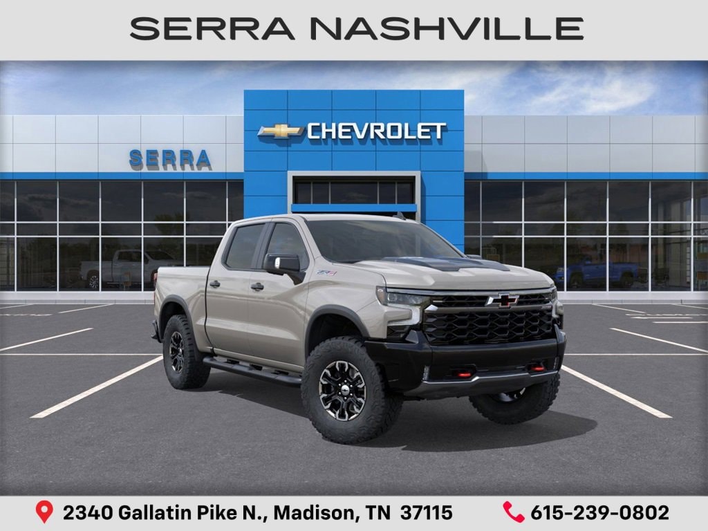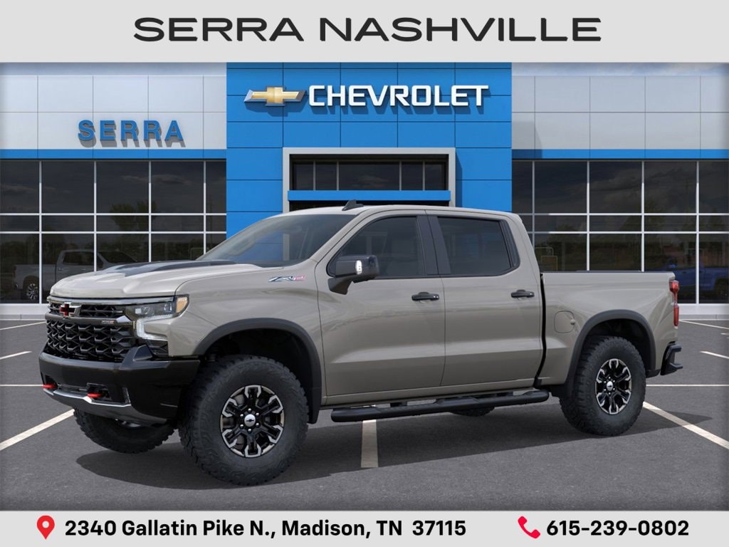 $2,500 off MSRP! 2026 Chevrolet Silverado 1500 ZR2 For sale at Serra Chevrolet Nashville - Serra Nashville has the largest selection of the new Chevrolet Silverado 1500 in Nashville. This vehicle is White Sands and well equipped with Technology Package (15 Diagonal Multicolor Head-Up Display, Adaptive Cruise Control, Power Tilt & Telescoping Steering Column, and Rear Camera Mirror), Trailering Package (Hitch Guidance), Up-Level Rear Seat w/Storage Package, ZR2 Suspension Package, 10-Speed Automatic, 4WD, Jet Black/Graystone Leather, 10-Way Power Driver Seat w/Lumbar, 10-Way Power Passenger Seat Adjuster w/Lumbar, 12.3 Multicolor Reconfigurable Digital Display, 120-Volt Bed Mounted Power Outlet, 120-Volt Interior Power Outlet, 2 USB Data Ports, 220 Amp Alternator, 2nd Row Heated Outboard Seats, 3.23 Rear Axle Ratio, 4-Wheel Disc Brakes, 4 Black Round Assist Steps (LPO), 7 Speakers, 850 Cold-Cranking Amps Heavy-Duty Battery, ABS brakes, Air Conditioning, All-Weather Floor Liner (LPO), Alloy wheels, AM/FM radio: SiriusXM with 360L, Apple CarPlay/Android Auto, Auto High-beam Headlights, Auto-dimming door mirrors, Auto-dimming Rear-View mirror, Automatic Emergency Braking, Automatic temperature control, Bed View Camera, Block heater, Bluetooth® For Phone, Brake assist, Chevytec Spray-On Black Bedliner, Color-Keyed Carpeting Floor Covering, Compass, Deep-Tinted Glass, Delay-off headlights, Driver door bin, Driver Memory, Driver vanity mirror, Dual Exhaust, Dual front impact airbags, Dual front side impact airbags, Dual Rear USB Ports (Charge Only), Electric Rear-Window Defogger, Electronic Stability Control, Electronic Transmission Range Selector Shifter, Emergency communication system: OnStar, Engine Block Heater, EZ Lift Power Lock & Release Tailgate, Floor Mounted Center Console, Following Distance Indicator, Forward Collision Alert, Front anti-roll bar, Front Bucket Seats, Front Center Armrest, Front dual zone A/C, Front fog lights, Front LED Fog Lamps, Front Pedestrian Braking, Front Rain-Sensing Wipers, Front reading lights, Front wheel independent suspension, Fully automatic headlights, Garage door transmitter, HD Surround Vision, Heads-Up Display, Heated door mirrors, Heated Driver & Front Outboard Passenger Seats, Heated front seats, Heated rear seats, Heated Steering Wheel, Heated steering wheel, Heavy-Duty Air Filter, High Gloss Black Mirror Caps, Hill Descent Control, Hitch Guidance w/Hitch View, Illuminated entry, In-Vehicle Trailering System App, Integrated Trailer Brake Controller, IntelliBeam Automatic High Beam On/Off, Keyless Open & Start, Lane Keep Assist w/Lane Departure Warning, LED Cargo Area Lighting, Low tire pressure warning, Memory seat, Multi-Flex Tailgate, Occupant sensing airbag, OnStar Services Capable, Outside Heated Power-Adjustable Mirrors, Outside temperature display, Overhead airbag, Overhead console, Panic alarm, Passenger door bin, Passenger vanity mirror, Perforated Leather Seat Trim, Performance Red Recovery Hooks, Perimeter Lighting, Power door mirrors, Power driver seat, Power Front Passenger Windows w/Express Up/Down, Power Front Windows w/Driver Express Up/Down, Power passenger seat, Power Rear Windows w/Express Down, Power Sliding Rear Window w/Rear Defogger, Power steering, Power Sunroof, Power windows, Premium audio system: Chevrolet Infotainment 3 Premium, Premium Bose 7-Speaker Sound System, Radio data system, Radio: Chevrolet Infotainment 3 Premium System, Rain sensing wipers, Rear Cross Traffic Braking, Rear Pedestrian Alert, Rear reading lights, Rear seat center armrest, Rear step bumper, Rear Wheelhouse Liners, Rear window defroster, Remote keyless entry, Remote Vehicle Starter System, Safety Alert Seat, Sec Serra Value Price includes all rebates and discounts available to everyone. Price does not include tax, title, registration, optional equipment purchased at time of sale or processing fee of $895. $1000 - Bonus Cash. Exp. 11/03/