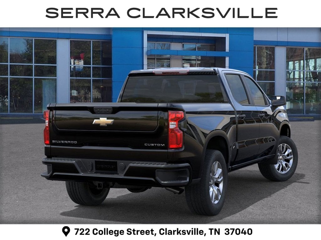 $3,750 off MSRP! Priced below KBB Fair Purchase Price! Black 2026 Chevrolet Silverado 1500 Custom For sale at Serra Chevrolet Clarksville is well equipped: Custom Convenience Package (Electric Rear-Window Defogger, EZ Lift Power Lock & Release Tailgate, LED Cargo Area Lighting, Remote Vehicle Starter System, and Theft Deterrent System (Unauthorized Entry)), Custom Value Package, High Capacity Suspension Package, Trailering Package (Hitch Guidance), 8-Speed Automatic, Jet Blk Clth Cloth, 10-Way Power Driver Seat w/Lumbar, 120-Volt Bed Mounted Power Outlet, 120-Volt Interior Power Outlet, 3.42 Rear Axle Ratio, 3.5 Monochromatic Display Driver Info Center, 4-Wheel Disc Brakes, 40/20/40 Front Split-Bench Seat, 6 Speakers, 6-Speaker Audio System, ABS brakes, Air Conditioning, Alloy wheels, AM/FM radio: SiriusXM, Apple CarPlay/Android Auto, Auto High-beam Headlights, Automatic Emergency Braking, Bluetooth® For Phone, Brake assist, Bumpers: body-color, Cloth Seat Trim, Color-Keyed Carpeting Floor Covering, Compass, Deep-Tinted Glass, Delay-off headlights, Driver door bin, Driver vanity mirror, Dual front impact airbags, Dual front side impact airbags, Dual Rear USB Ports (Charge Only), Electronic Cruise Control, Electronic Stability Control, Emergency communication system: OnStar, Following Distance Indicator, Forward Collision Alert, Front anti-roll bar, Front Center Armrest w/Storage, Front Frame-Mounted Black Recovery Hooks, Front Pedestrian Braking, Front reading lights, Front Rubberized Vinyl Floor Mats, Front wheel independent suspension, Fully automatic headlights, HD Rear Vision Camera, Heated door mirrors, Illuminated entry, IntelliBeam Automatic High Beam On/Off, Lane Keep Assist w/Lane Departure Warning, Low tire pressure warning, Manual Tilt Wheel Steering Column, Occupant sensing airbag, OnStar Services Capable, Outside temperature display, Overhead airbag, Overhead console, Panic alarm, Passenger door bin, Passenger vanity mirror, Power door mirrors, Power driver seat, Power Front Windows w/Driver Express Up/Down, Power Front Windows w/Passenger Express Down, Power Rear Windows w/Express Down, Power steering, Power windows, Premium audio system: Chevrolet Infotainment 3, Radio data system, Radio: Chevrolet Infotainment 3 System, Rear 60/40 Folding Bench Seat (Folds Up), Rear reading lights, Rear Rubberized-Vinyl Floor Mats, Rear step bumper, Rear window defroster, Remote Keyless Entry, Remote keyless entry, Security system, SiriusXM Trial Subscription, Speed control, Speed-sensing steering, Split folding rear seat, Standard Tailgate, Tachometer, Teen Driver, Tilt steering wheel, Tire Pressure Monitoring System, Traction control, Trip computer, Variably intermittent wipers, Voltmeter, Wheels: 20 x 9 Bright Silver Painted Aluminum, and Wi-Fi Hot Spot Capable.