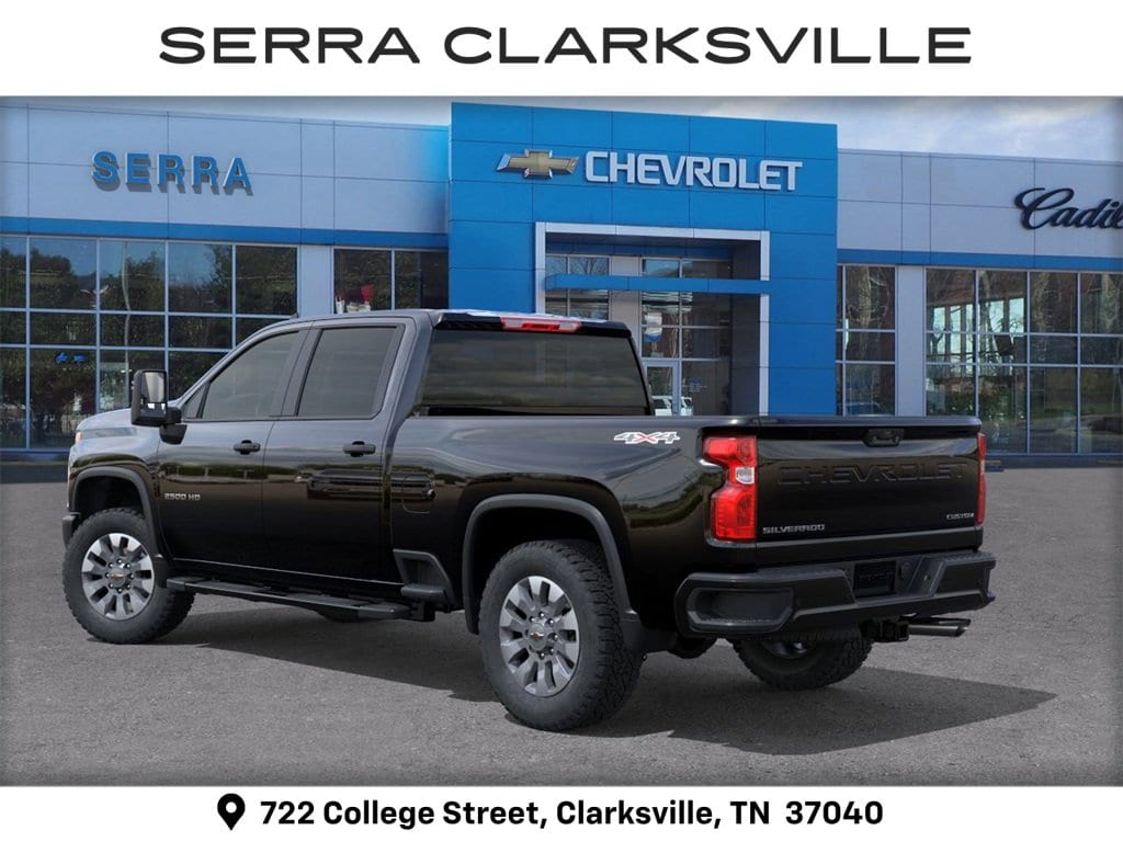 $2,197 off MSRP! Black 2026 Chevrolet Silverado 2500HD Custom For sale at Serra Chevrolet Clarksville is well equipped: Custom Convenience Package (10-Way Power Driver Seat Adjuster with Lumbar, 120-Volt Bed Mounted Power Outlet, 120-Volt Interior Power Outlet, Dual Rear USB Ports (charge Only), Electric Rear-Window Defogger, EZ Lift Power Lock and Release Tailgate, LED Cargo Area Lighting, Remote Vehicle Starter System, and Unauthorized Entry Theft-Deterrent System), Custom Value Package (Auto-Dimming Inside Rear-View Mirror and Heated and Auto-Dimming Vertical Trailering Mirrors), CX Safety Package (Lane Change Alert with Side Blind Zone Alert, Rear Cross Traffic Alert, and Ultrasonic Front and Rear Park Assist), Preferred Equipment Group 1CX (170 Amp Alternator, 2-Speed Electronic Shift Transfer Case, 3.5 Diagonal Monochromatic Display DIC, 3.73 Rear Axle Ratio, Black Mirror Caps, Bluetooth® For Phone, Chevrolet Connected Access Capable, Color-Keyed Carpeting Floor Covering, Compass, Deep-Tinted Glass, Durabed Pickup Bed, Electronic Cruise Control with Set and Resume Speed, Front Rubberized Vinyl Floor Mats, HD Rear Vision Camera, Heated Vertical Trailering Mirrors, Locking Tailgate, Manual Tailgate Function with No EZ Lift, Manual Tilt-Wheel Steering Column, OnStar Services Capable, Power Door Locks, Power Front Windows with Driver Express Up/Down, Power Front Windows with Passenger Express Down, Power Rear Windows with Express Down, Push Button Start, Rear 60/40 Folding Bench Seat (folds Up), Rear Rubberized Vinyl Floor Mats, Remote Keyless Entry, SiriusXM with 360L Trial Subscription, Standard Tailgate, Wheels: 20 10-Spoke Machined Aluminum, Wi-Fi Hotspot Capable, and Wireless Phone Projection), Suspension Package, 10-Speed Automatic, 4WD, Black Cloth, 3 Years SiriusXM, 4-Wheel Disc Brakes, 6 Speakers, 6-Speaker Audio System, 6 Rectangular Black Tubular Assist Steps, 720 Cold-Cranking Amps Heavy-Duty Battery, ABS brakes, Air Conditioning, Alloy wheels, AM/FM radio: SiriusXM with 360L, Apple CarPlay/Android Auto, Auto High-beam Headlights, Black Chevytec Spray-on Bedliner, Brake assist, Cloth Seat Trim, Delay-off headlights, Driver door bin, Dual front impact airbags, Dual front side impact airbags, Electronic Stability Control, Emergency communication system: OnStar, Front 40/20/40 Split-Bench Seats with Lockable Storage, Front anti-roll bar, Front Center Armrest w/Storage, Front License Plate Kit, Front reading lights, Front wheel independent suspension, Fully automatic headlights, Heated door mirrors, Illuminated entry, LED Smoked Amber Roof Marker Lamps, Low tire pressure warning, Occupant sensing airbag, Outside temperature display, Overhead airbag, Overhead console, Panic alarm, Passenger door bin, Passenger vanity mirror, Power door mirrors, Power steering, Power windows, Premium audio system: Chevrolet Infotainment 3, Radio: Chevrolet Infotainment 3 System, Rear reading lights, Rear step bumper, Remote keyless entry, Speed control, Split folding rear seat, Tachometer, Tilt steering wheel, Traction control, Trip computer, Turn signal indicator mirrors, Upfitter Switch Kit (5), Variably intermittent wipers, and Voltmeter.