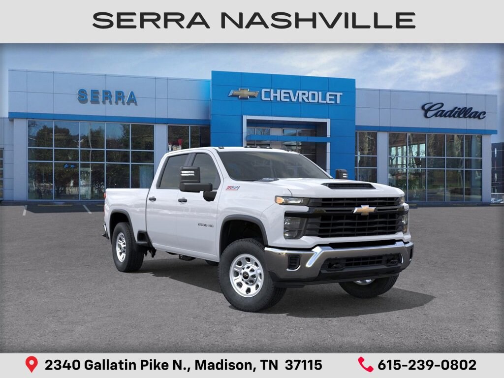 2026 Chevrolet Silverado 2500HD Work Truck For sale at Serra Chevrolet Nashville - Serra Nashville has the largest selection of the new Chevrolet Silverado 2500HD in Nashville. This vehicle is Summit White and well equipped with Preferred Equipment Group 1WT (170 Amp Alternator, 2-Speed Electronic Shift Transfer Case, 3.5 Diagonal Monochromatic Display DIC, 3.73 Rear Axle Ratio, Black Front Bumper, Black Mirror Caps, Black Rear Bumper, Bluetooth® For Phone, Chevrolet Connected Access Capable, Compass, Durabed Pickup Bed, Electronic Cruise Control with Set and Resume Speed, HD Rear Vision Camera, High-Visibility Vertical Trailering Mirrors, Locking Tailgate, Manual Tailgate Function with No EZ Lift, Manual Tilt-Wheel Steering Column, OnStar Services Capable, Power Door Locks, Power Front Windows with Driver Express Up/Down, Power Rear Windows with Express Down, Push Button Start, Rear 60/40 Folding Bench Seat (folds Up), Remote Keyless Entry, Rubberized-Vinyl Floor Covering, Solar Absorbing Tinted Glass, Standard Tailgate, Wheels: 17 Silver Painted Steel, Wi-Fi Hotspot Capable, and Wireless Phone Projection), Suspension Package, WT Convenience Package (Deep-Tinted Glass, Electric Rear-Window Defogger, EZ Lift Power Lock and Release Tailgate, and Heated Vertical Trailering Mirrors), WT Safety Package (Chrome Front Bumper, Chrome Rear Bumper, Lane Change Alert with Side Blind Zone Alert, Rear Cross Traffic Alert, and Ultrasonic Front and Rear Park Assist), Z71 Off-Road Package (Hill Descent Control and Off-Road Suspension), 10-Speed Automatic, 4WD, Jet Black Vinyl, 120-Volt Bed Mounted Power Outlet, 120-Volt Interior Power Outlet, 18 Painted Steel Wheels, 4-Wheel Disc Brakes, 6 Speakers, 6-Speaker Audio System, 700 Cold-Cranking Amps/70 Amp-Hr Auxiliary Battery, 720 Cold-Cranking Amps Heavy-Duty Battery, ABS brakes, Air Conditioning, AM/FM radio, Apple CarPlay/Android Auto, Auto High-beam Headlights, Auto-Dimming Inside Rear-View Mirror, Brake assist, Delay-off headlights, Driver door bin, Dual 220-Amp Primary/170-Amp Auxiliary Alternators, Dual front impact airbags, Dual front side impact airbags, Electronic Stability Control, Emergency communication system: OnStar, Front 40/20/40 Split-Bench Seats with Lockable Storage, Front anti-roll bar, Front Center Armrest w/Storage, Front reading lights, Front wheel independent suspension, Fully automatic headlights, Heated and Auto-Dimming Vertical Trailering Mirrors, Illuminated entry, LED Smoked Amber Roof Marker Lamps, Low tire pressure warning, Occupant sensing airbag, Outside temperature display, Overhead airbag, Overhead console, Panic alarm, Passenger door bin, Passenger vanity mirror, Power steering, Power windows, Premium audio system: Chevrolet Infotainment 3, Radio: Chevrolet Infotainment 3 System, Rear reading lights, Rear step bumper, Remote keyless entry, Speed control, Split folding rear seat, Tachometer, Tilt steering wheel, Traction control, Trip computer, Variably intermittent wipers, Vinyl Seat Trim, and Voltmeter.