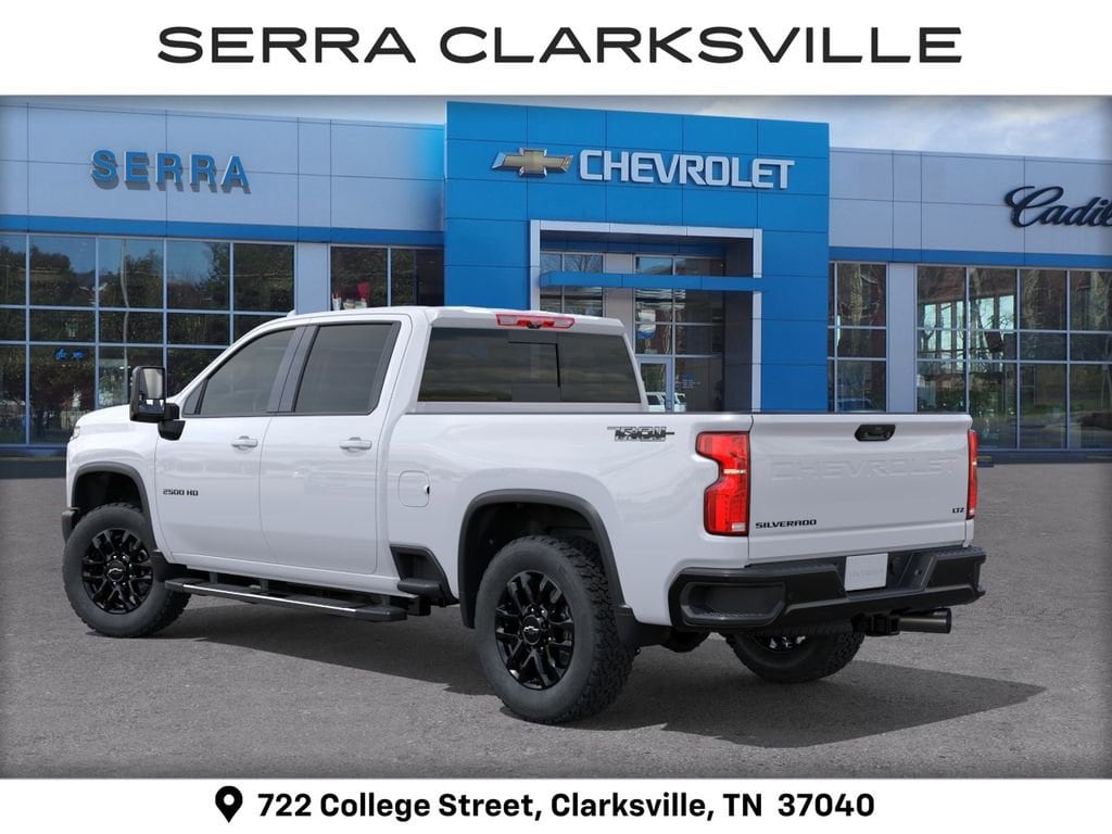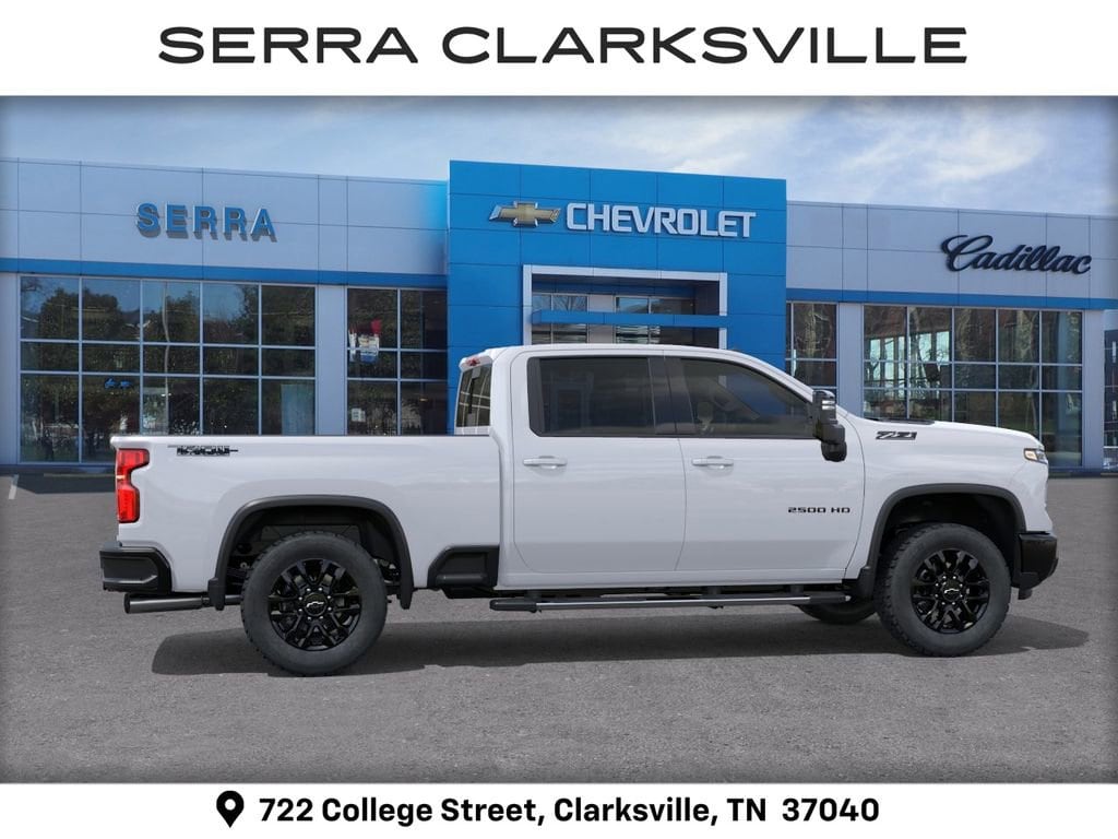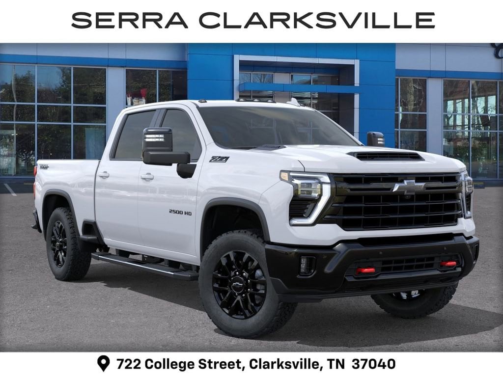 $1,000 off MSRP! Summit White 2026 Chevrolet Silverado 2500HD LTZ For sale at Serra Chevrolet Clarksville is well equipped: Gooseneck/5th Wheel Prep Package, LTZ Convenience Package (2 Charge/Data USB Ports Inside Center Console, BOSE Premium 7-Speaker Sound System, Floor-Mounted Center Console, Front Bucket Seats, LED Cargo Area Lighting, Ventilated Driver and Front Passenger Seats, and Wireless Charging), LTZ Convenience Package II (Adaptive Cruise Control, Heated 2nd Row Outboard Seats, Power Sliding Rear Window with Defogger, and Universal Home Remote), LTZ Plus Package, Preferred Equipment Group 1LZ (10-Way Power Driver Seat Adjuster with Lumbar, 10-Way Power Passenger Seat Adjuster with Lumbar, 120-Volt Bed Mounted Power Outlet, 120-Volt Interior Power Outlet, 170 Amp Alternator, 6-Speaker Audio System, Auto-Dimming Inside Rear-View Mirror, Bluetooth® For Phone, Chevrolet Connected Access Capable, Chrome Door Handles, Chrome Mirror Caps, Color-Keyed Carpeting Floor Covering, Compass, Deep-Tinted Glass, Driver Memory, Durabed Pickup Bed, Electric Rear-Window Defogger, Electronic Cruise Control with Set and Resume Speed, EZ Lift Power Lock and Release Tailgate, Front 40/20/40 Split-Bench Seats with Lockable Storage, Front LED Fog Lamps, Front Rain-Sensing Wipers, Front Rubberized Vinyl Floor Mats, HD Rear Vision Camera, Heated Driver and Front Outboard Passenger Seating, Heated Steering Wheel, Hitch Guidance with Hitch View, in-Vehicle Trailering App System, Keyless Open and Start, Manual Tilt and Telescoping Steering Column, OnStar Services Capable, Perforated Leather-Appointed Front Outboard Seat Trim, Power Door Locks, Power Front Windows with Driver Express Up/Down, Power Front Windows with Passenger Express Up/Down, Power Rear Windows with Express Down, Push Button Start, Rear Rubberized Vinyl Floor Mats, Rear Wheelhouse Liners, Remote Vehicle Starter System, SiriusXM with 360L Trial Subscription, Standard Tailgate, Steering Wheel Audio Controls, Unauthorized Entry Theft-Deterrent System, Wheels: 18 Machined Aluminum with Silver Painted Accents, Wi-Fi Hotspot Capable, Wireless Phone Projection, and Wrapped Steering Wheel), Safety Package (Bed View Camera with Two Trailer Camera Provisions, HD Surround Vision, Rear Cross Traffic Alert, Safety Alert Seat, Trailer Camera Provisions, Trailer Side Blind Zone Alert, and Ultrasonic Front and Rear Park Assist), Suspension Package, Technology Package (15 Diagonal Multicolor Head-Up Display and Rear Camera Mirror), Trail Boss Package (Black Chevytec Spray-on Bedliner, Black Grille Bar with Chevy Black Bow Tie, Front Frame-Mounted Red Recovery Hooks, High Gloss Black Door Handles, High Gloss Black Mirror Caps, and Wheels: 20 High Gloss Black Painted), Up-Level Rear Seat with Storage Package, Z71 Off-Road Package (Hill Descent Control and Off-Road Suspension), 10-Speed Automatic, 4WD, Black Leather, 220 Amp Alternator, 3 Years SiriusXM, 4-Wheel Disc Brakes, 6 Speakers, 6 Rectangular Chromed Tubular Assist Steps, 720 Cold-Cranking Amps Heavy-Duty Battery, ABS brakes, Air Conditioning, Alloy wheels, AM/FM radio: SiriusXM with 360L, Apple CarPlay/Android Auto, Auto High-beam Headlights, Auto-dimming door mirrors, Auto-dimming Rear-View mirror, Automatic temperature control, Body-Color Front Bumper, Body-Color Rear Bumper, Brake assist, Bumpers: chrome, Delay-off headlights, Driver door bin, Driver vanity mirror, Dual front impact airbags, Dual front side impact airbags, Electronic Stability Control, Emergency communication system: OnStar, Engine Block Heater, Exhaust Brake, Front anti-roll bar, Front Center Armrest w/Storage, Front dual zone A/C, Front fog lights, Front reading lights, Front wheel independent suspension, Fully automatic headli Serra Value Price includes all rebates and discounts available to everyone. Price does not include tax, title, registration, optional equipment purchased at time of sale or processing fee of $8