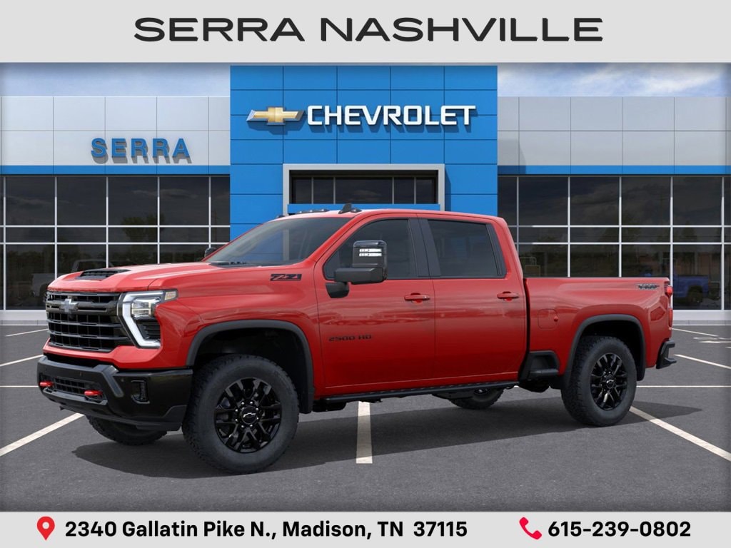 $1,000 off MSRP! 2026 Chevrolet Silverado 2500HD LT For sale at Serra Chevrolet Nashville - Serra Nashville has the largest selection of the new Chevrolet Silverado 2500HD in Nashville. This vehicle is Red Hot and well equipped with All Star Edition, Cloth Rear Seat with Storage Package, Convenience Package (10-Way Power Driver Seat Adjuster with Lumbar, Dual-Zone Automatic Climate Control, Front LED Fog Lamps, LED Cargo Area Lighting, and Manual Tilt and Telescoping Steering Column), Convenience Package II (Hitch Guidance with Hitch View, in-Vehicle Trailering App System, Power Sliding Rear Window with Defogger, and Universal Home Remote), Gooseneck/5th Wheel Prep Package (Black Chevytec Spray-on Bedliner), Heat Package (Heated Driver and Front Outboard Passenger Seating and Heated Steering Wheel), Heavy Duty Front Spring/Camper Package, Leather Package, Preferred Equipment Group 1LT (120-Volt Bed Mounted Power Outlet, 120-Volt Interior Power Outlet, 17 Machined Aluminum Wheels, 170 Amp Alternator, 2-Speed Electronic Shift Transfer Case, 3.73 Rear Axle Ratio, 4-Way Manual Driver Seat Adjuster, Black Mirror Caps, Bluetooth® For Phone, Chevrolet Connected Access Capable, Color-Keyed Carpeting Floor Covering, Compass, Deep-Tinted Glass, Durabed Pickup Bed, Electronic Cruise Control with Set and Resume Speed, EZ Lift Power Lock and Release Tailgate, Front Rubberized Vinyl Floor Mats, Halogen Reflector Headlamps, HD Rear Vision Camera, Heated Vertical Trailering Mirrors, Keyless Open and Start, OnStar Services Capable, Power Door Locks, Power Front Windows with Driver Express Up/Down, Power Front Windows with Passenger Express Down, Power Rear Windows with Express Down, Push Button Start, Rear 60/40 Folding Bench Seat (folds Up), Rear Rubberized Vinyl Floor Mats, SiriusXM with 360L Trial Subscription, Standard Tailgate, Steering Wheel Audio Controls, Wi-Fi Hotspot Capable, Wireless Phone Projection, and Wrapped Steering Wheel), Remote Start Package (Electric Rear-Window Defogger, Remote Vehicle Starter System, and Unauthorized Entry Theft-Deterrent System), Safety Package (Bed View Camera with Two Trailer Camera Provisions, HD Surround Vision, Rear Cross Traffic Alert, Trailer Camera Provisions, Trailer Side Blind Zone Alert, and Ultrasonic Front and Rear Park Assist), Suspension Package, Trail Boss Package (Animated LED Projector Headlamps, Auto-Dimming Inside Rear-View Mirror, Black Grille Bar with Chevy Black Bow Tie, Front Frame-Mounted Red Recovery Hooks, Heated and Auto-Dimming Vertical Trailering Mirrors, High Gloss Black Door Handles, High Gloss Black Front Bumper, High Gloss Black Mirror Caps, High Gloss Black Rear Bumper, and Wheels: 20 High Gloss Black Painted), Up-Level Rear Seat with Storage Package, Z71 Off-Road Package (Hill Descent Control and Off-Road Suspension), 10-Speed Automatic, 4WD, Jet Black Cloth, 1st and 2nd Row All-Weather Floor Liners, 2 Charge/Data USB Ports Inside Center Console, 2-Speed Active Electronic AutoTrac Transfer Case, 4-Wheel Disc Brakes, 6 Speakers, 6-Speaker Audio System, 720 Cold-Cranking Amps Heavy-Duty Battery, ABS brakes, Air Conditioning, Alloy wheels, AM/FM radio: SiriusXM with 360L, Apple CarPlay/Android Auto, Auto High-beam Headlights, Body-Color Front Bumper, Body-Color Rear Bumper, Brake assist, Bumpers: chrome, Cloth Seat Trim, Delay-off headlights, Driver door bin, Driver vanity mirror, Dual front impact airbags, Dual front side impact airbags, Electronic Stability Control, Emergency communication system: OnStar, Floor-Mounted Center Console, Front 40/20/40 Split-Bench Seats with Lockable Storage, Front anti-roll bar, Front Bucket Seats, Front Center Armrest w/Storage, Front reading lights, Front wheel independent suspension, Fully automat Serra Value Price includes all rebates and discounts available to everyone. Price does not include tax, title, registration, optional equipment purchased at time of sale or processing fee of