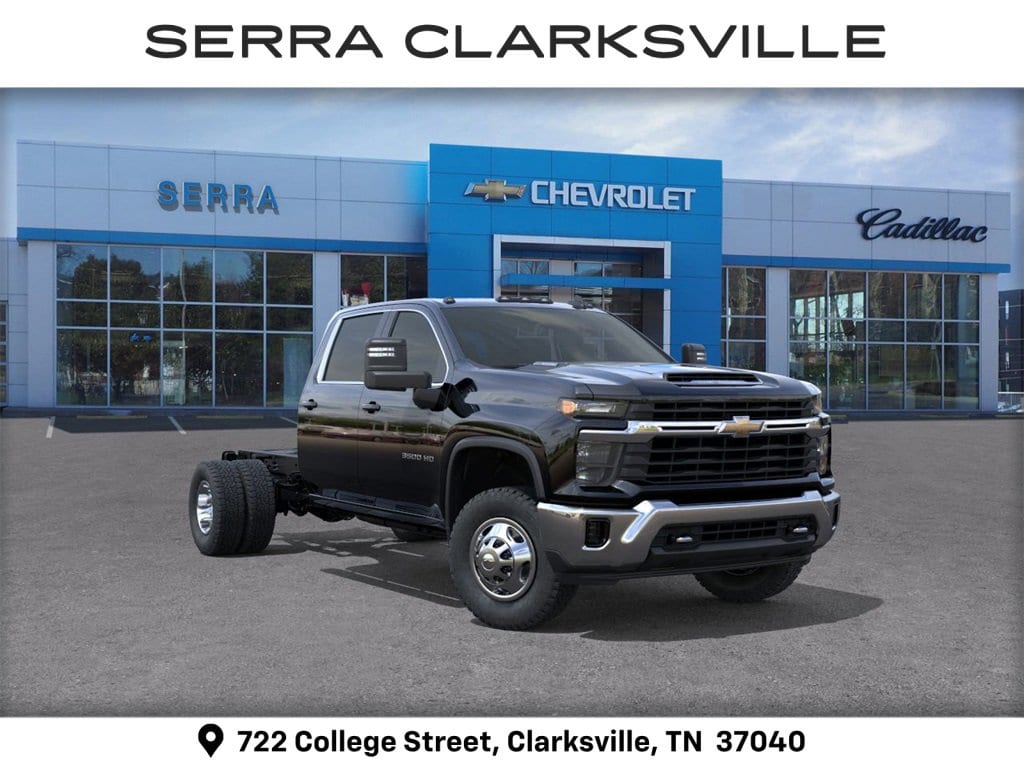 $1,000 off MSRP! Black 2026 Chevrolet Silverado 3500HD LT For sale at Serra Chevrolet Clarksville is well equipped: Suspension Package, 10-Speed Automatic, 4WD, Jet Blk Clth Cloth, 17 Painted Steel Wheels, 170 Amp Alternator, 2-Speed Electronic Shift Transfer Case, 3.73 Rear Axle Ratio, 4-Way Manual Driver Seat Adjuster, 4-Way Manual Passenger Seat Adjuster, 4-Wheel Disc Brakes, 6 Speakers, 6-Speaker Audio System Feature, ABS brakes, Air Conditioning, AM/FM radio: SiriusXM, Auto High-beam Headlights, Black Frame-Mounted Front Recovery Hooks, Black Mirror Caps, Bluetooth® For Phone, Brake assist, Bumpers: chrome, Chrome Front Grille Bar, Cloth Seat Trim, Color-Keyed Carpeting Floor Covering, Compass, Compass Located in Instrument Cluster, Deep-Tinted Glass, Delay-off headlights, Driver door bin, Driver vanity mirror, Dual front impact airbags, Dual front side impact airbags, Dual rear wheels, Electronic Stability Control, Emergency communication system, Enhanced 12.3 Diagonal Driver Information Center, Front 40/20/40 Split-Bench Seat, Front anti-roll bar, Front Center Armrest w/Storage, Front reading lights, Front Rubberized Vinyl Floor Mats, Front wheel independent suspension, Fully automatic headlights, Heated door mirrors, Heavy-Duty 80 Amp-Hour Battery, Illuminated entry, Keyless Open and Start, Low tire pressure warning, Manual Tilt Inside Rearview Mirror, Occupant sensing airbag, OnStar Services Capable, Outside temperature display, Overhead airbag, Overhead console, Panic alarm, Passenger door bin, Passenger vanity mirror, Power door mirrors, Power Rear Windows with Express Down, Power steering, Power windows, Premium audio system: Chevrolet Infotainment System 3, Radio: Chevrolet Infotainment 3 Premium System, Rear 60/40 Folding Bench Seat (folds Up), Rear reading lights, Rear Rubberized-Vinyl Floor Mats, Remote keyless entry, SiriusXM Trial Subscription, Speed control, Split folding rear seat, Steering Wheel Audio Controls, Steering wheel mounted audio controls, Steering Wheel Mounted Electronic Cruise Control, Tachometer, Tilt steering wheel, Traction control, Trip computer, Turn signal indicator mirrors, Variably intermittent wipers, Voltmeter, and Wrapped Steering Wheel.