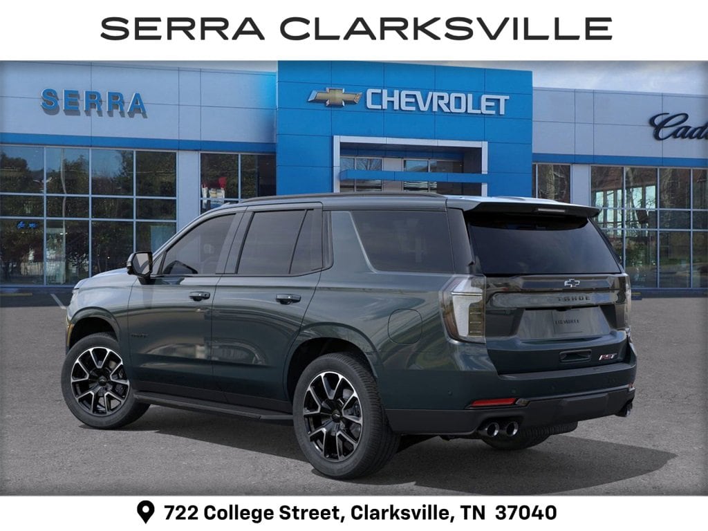 Cypress 2026 Chevrolet Tahoe RST For sale at Serra Chevrolet Clarksville is well equipped: 4WD, Jet Blk/Victory Red Perfo Leather, 1st and 2nd Row Color-Keyed Carpeted Floor Mats, 2-Way Power Driver Lumbar Seat Adjuster, 2-Way Power Front Passenger Lumbar Seat Adjuster, 3-Spoke Wrapped Steering Wheel, 3.23 Rear Axle Ratio, 3rd Row Manual 60/40 Split-Folding Bench Seats, 3rd row seats: split-bench, 4-Wheel Disc Brakes, 6 Speakers, 6-Speaker Audio System Feature, 8-Way Power Driver Seat Adjuster, 8-Way Power Front Passenger Seat Adjuster, ABS brakes, Air Conditioning, Alloy wheels, AM/FM radio: SiriusXM with 360L, Apple CarPlay/Android Auto, Auto High-beam Headlights, Auto-Dimming Inside Rear-View Mirror, Auto-dimming Rear-View mirror, Automatic temperature control, Brake assist, Bright Front and Rear Door Sill Plates, Bumpers: body-color, Color-Keyed Carpeting Floor Covering, Compass, Delay-off headlights, Driver door bin, Driver vanity mirror, Dual Exhaust System, Dual front impact airbags, Dual front side impact airbags, Electronic Stability Control, Emergency communication system: OnStar and Chevrolet connected services capable, Exterior Parking Camera Rear, Floor Console with Storage Area, Four wheel independent suspension, Front anti-roll bar, Front Bucket Seats, Front Center Armrest, Front dual zone A/C, Front fog lights, Front LED Fog Lamps, Front reading lights, Frontal Driver and Outboard Passenger Airbags, Fully automatic headlights, Garage door transmitter, Heated door mirrors, Heated Driver and Front Passenger Seats, Heated front seats, Illuminated entry, Interior Camera, Key Card, Low tire pressure warning, Memory seat, Memory Settings For Driver, Navigation system: Google built-in compatibility (select service plan required, terms and limitations apply), Occupant sensing airbag, Outside temperature display, Overhead airbag, Overhead console, Panic alarm, Passenger door bin, Passenger vanity mirror, Perforated Leather Seat Trim, Power door mirrors, Power driver seat, Power Liftgate, Power passenger seat, Power steering, Power windows, Premium audio system: Chevrolet Infotainment 3 Premium, Premium Smooth Ride Suspension, Radio data system, Radio: 17.7 Diagonal Advanced Color LCD Display, Rain sensing wipers, Rear air conditioning, Rear anti-roll bar, Rear Power Liftgate, Rear reading lights, Rear seat center armrest, Rear window defroster, Rear window wiper, Remote keyless entry, Remote Start, RST Exterior Features, Security system, Set of 4 Wheel Locks, SiriusXM with 360L Trial Subscription, Speed control, Speed-sensing steering, Split folding rear seat, Spoiler, Steering wheel mounted audio controls, Tachometer, Telescoping steering wheel, Tilt steering wheel, Traction control, Trip computer, Universal Home Remote, USB Ports, Variably intermittent wipers, Voltmeter, Wheels: 22 x 9 Bright Machined, and Wireless Phone Charging.