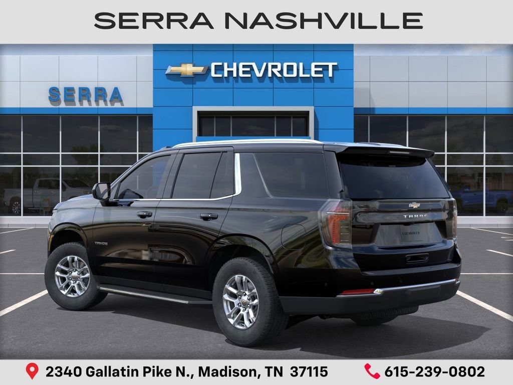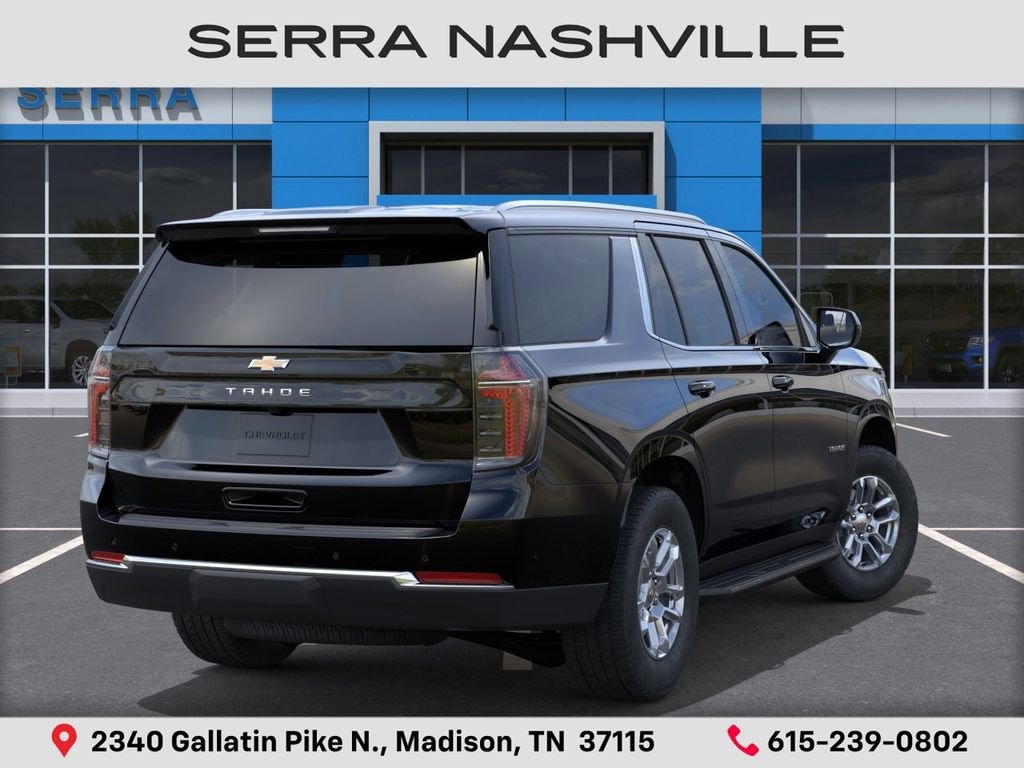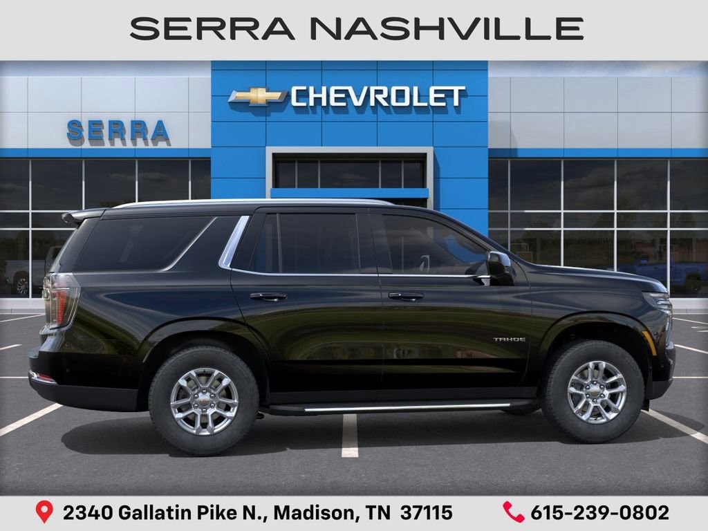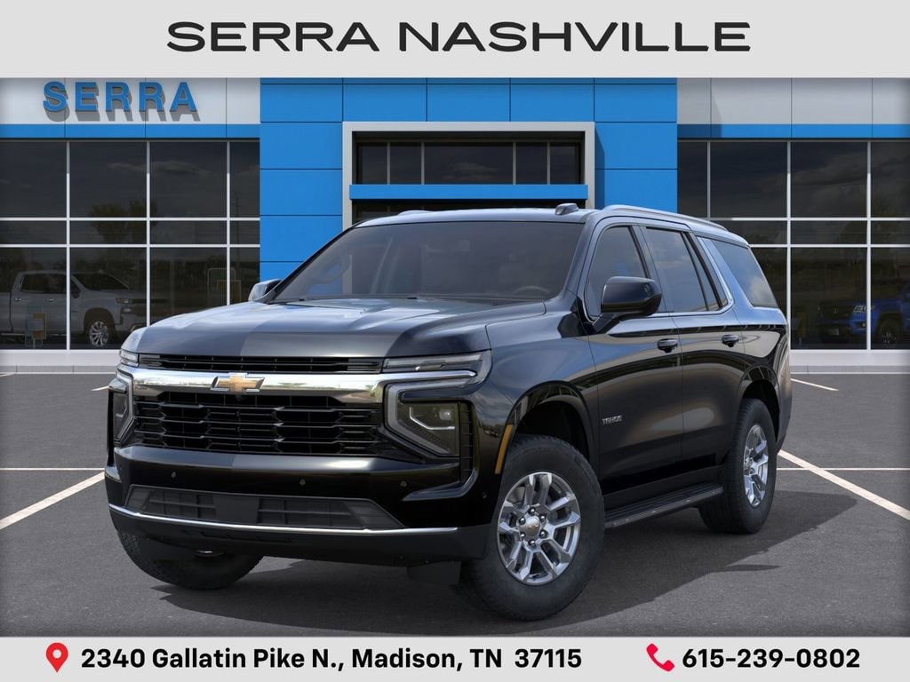 2026 Chevrolet Tahoe LS For sale at Serra Chevrolet Nashville - Serra Nashville has the largest selection of the new Chevrolet Tahoe in Nashville. This vehicle is Black and well equipped with Advanced Trailering Package (Blind Zone Steering Assist with Trailering, Hitch View with Pan/Zoom Image Adjustment, and Smart Trailer Integration Indicator), All-Weather Liner Protection Package (1st and 2nd Rows All-Weather Floor Liners, 3rd Row All-Weather Floor Liners, and All-Weather Cargo Mat), Max Trailering Package (2-Speed Active Electronic AutoTrac Transfer Case, Extra Capacity Cooling System, Hill Descent Control, and Integrated Trailer Brake Controller), 4WD, Jet Black Cloth, 1st and 2nd Row Color-Keyed Carpeted Floor Mats, 2-Way Power Driver Lumbar Seat Adjuster, 2-Way Power Front Passenger Lumbar Seat Adjuster, 3-Spoke Wrapped Steering Wheel, 3.23 Rear Axle Ratio, 3rd Row Manual 60/40 Split-Folding Bench Seats, 3rd row seats: split-bench, 4-Wheel Disc Brakes, 6 Speakers, 6-Speaker Audio System Feature, 6-Way Power Front Passenger Seat Adjuster, 8-Way Power Driver Seat Adjuster, ABS brakes, Air Conditioning, Alloy wheels, AM/FM radio: SiriusXM with 360L, Apple CarPlay/Android Auto, Auto High-beam Headlights, Automatic temperature control, Brake assist, Bumpers: body-color, Color-Keyed Carpeting Floor Covering, Compass, Delay-off headlights, Driver door bin, Driver vanity mirror, Dual front impact airbags, Dual front side impact airbags, Electronic Stability Control, Emergency communication system: OnStar and Chevrolet connected services capable, Exterior Parking Camera Rear, Floor Console with Storage Area, Four wheel independent suspension, Front anti-roll bar, Front Bucket Seats, Front Center Armrest, Front dual zone A/C, Front reading lights, Frontal Driver and Outboard Passenger Airbags, Fully automatic headlights, Heated door mirrors, Illuminated entry, Key Card, Low tire pressure warning, Navigation system: Google built-in compatibility (select service plan required, terms and limitations apply), Occupant sensing airbag, Outside temperature display, Overhead airbag, Overhead console, Panic alarm, Passenger door bin, Passenger vanity mirror, Power door mirrors, Power driver seat, Power passenger seat, Power steering, Power windows, Premium audio system: Chevrolet Infotainment 3, Premium Cloth Seat Trim, Premium Smooth Ride Suspension, Radio data system, Radio: 17.7 Diagonal Advanced Color LCD Display, Rain sensing wipers, Rear air conditioning, Rear anti-roll bar, Rear reading lights, Rear seat center armrest, Rear window defroster, Rear window wiper, Remote keyless entry, Remote Start, Security system, SiriusXM with 360L Trial Subscription, Speed control, Speed-sensing steering, Split folding rear seat, Spoiler, Steering wheel mounted audio controls, Tachometer, Telescoping steering wheel, Tilt steering wheel, Traction control, Trip computer, USB Ports, Variably intermittent wipers, Voltmeter, and Wheels: 18 x 8.5 Bright Silver Painted Aluminum.