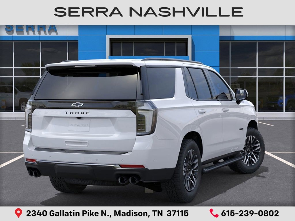 2026 Chevrolet Tahoe Z71 For sale at Serra Chevrolet Nashville - Serra Nashville has the largest selection of the new Chevrolet Tahoe in Nashville. This vehicle is Summit White and well equipped with All-Weather Liner Protection Package (1st and 2nd Rows All-Weather Floor Liners, 3rd Row All-Weather Floor Liners, and All-Weather Cargo Mat), Comfort Package (2nd Row Power Release 60/40 Split-Folding Bench Seat, 3rd Row 60/40 Power-Folding Split-Bench Seat, Bose 10-Speaker Centerpoint Surround Audio System Feature, Heated 2nd Row Outboard Seats, Heated Steering Wheel, LED Headlamps with LED Daytime Running Lamps, LED Tail Lamps, Memory Settings, and Outside Heated Power-Adjustable Mirrors), 4WD, Jet Black Leather, 1st and 2nd Row Color-Keyed Carpeted Floor Mats, 2-Speed Active Electronic AutoTrac Transfer Case, 2-Way Power Driver Lumbar Seat Adjuster, 2-Way Power Front Passenger Lumbar Seat Adjuster, 3-Spoke Wrapped Steering Wheel, 3.23 Rear Axle Ratio, 3rd Row Manual 60/40 Split-Folding Bench Seats, 3rd row seats: split-bench, 4-Wheel Disc Brakes, 6 Speakers, 6-Speaker Audio System Feature, 8-Way Power Driver Seat Adjuster, 8-Way Power Front Passenger Seat Adjuster, ABS brakes, Air Conditioning, Alloy wheels, AM/FM radio: SiriusXM with 360L, Apple CarPlay/Android Auto, Auto High-beam Headlights, Auto-Dimming Inside Rear-View Mirror, Auto-dimming Rear-View mirror, Automatic temperature control, Black Tubular Assist Steps, Brake assist, Bright Front and Rear Door Sill Plates, Bumpers: body-color, Color-Keyed Carpeting Floor Covering, Compass, Delay-off headlights, Driver door bin, Driver vanity mirror, Dual Exhaust System, Dual front impact airbags, Dual front side impact airbags, Dual-Pane Power Panoramic Sunroof, Electronic Stability Control, Emergency communication system: OnStar and Chevrolet connected services capable, Exterior Parking Camera Rear, Floor Console with Storage Area, Four wheel independent suspension, Front anti-roll bar, Front Bucket Seats, Front Center Armrest, Front dual zone A/C, Front fog lights, Front High-Approach Angle Fascia, Front LED Fog Lamps, Front reading lights, Frontal Driver and Outboard Passenger Airbags, Fully automatic headlights, Garage door transmitter, Heated door mirrors, Heated Driver and Front Passenger Seats, Heated front seats, Hill Descent Control, Illuminated entry, Interior Camera, Key Card, Leather-Appointed Seat Trim, Low tire pressure warning, Memory seat, Memory Settings For Driver, Navigation system: Google built-in compatibility (select service plan required, terms and limitations apply), Occupant sensing airbag, Outside temperature display, Overhead airbag, Overhead console, Panic alarm, Passenger door bin, Passenger vanity mirror, Power door mirrors, Power driver seat, Power Liftgate, Power passenger seat, Power Release 2nd Row Bucket Seats, Power steering, Power windows, Premium audio system: Chevrolet Infotainment 3 Premium, Premium Smooth Ride Suspension, Radio data system, Radio: 17.7 Diagonal Advanced Color LCD Display, Rain sensing wipers, Rear air conditioning, Rear anti-roll bar, Rear Power Liftgate, Rear reading lights, Rear seat center armrest, Rear window defroster, Rear window wiper, Red Horizontal-Mounted Recovery Hooks, Remote keyless entry, Remote Start, Security system, SiriusXM with 360L Trial Subscription, Speed control, Speed-sensing steering, Split folding rear seat, Spoiler, Steering wheel mounted audio controls, Tachometer, Telescoping steering wheel, Tilt steering wheel, Traction control, Trip computer, Universal Home Remote, USB Ports, Variably intermittent wipers, Voltmeter, Wheels: 20 x 9 Bright Machined Aluminum, Wireless Phone Charging, and Z71 Exterior Features.