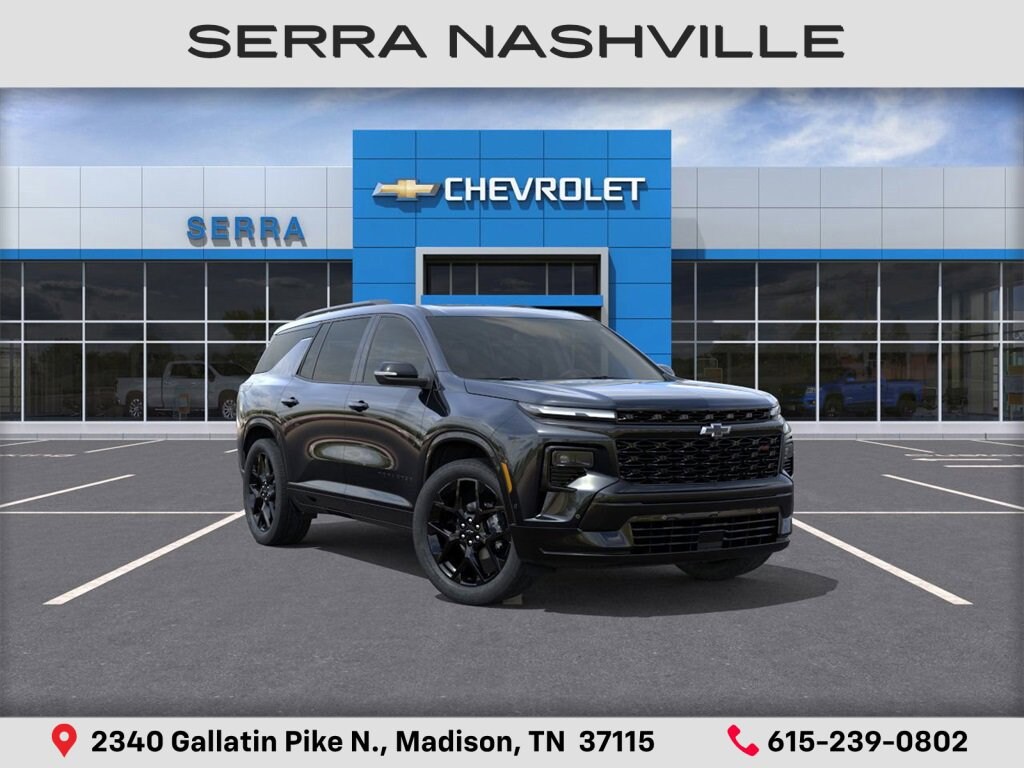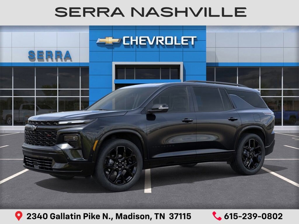 2026 Chevrolet Traverse RS For sale at Serra Chevrolet Nashville - Serra Nashville has the largest selection of the new Chevrolet Traverse in Nashville. This vehicle is Mosaic Black Metallic and well equipped with Floor Liner Package (1st and 2nd Row All-Weather Floor Liners, 3rd Row All-Weather Floor Liner, and Integrated Cargo Liner), AWD, 12 Speakers, 3rd row seats: split-bench, 4-Wheel Disc Brakes, 6-Way Power Front Passenger Seat Adjuster, 8-Way Power Driver Seat Adjuster, ABS brakes, Air Conditioning, Alloy wheels, AM/FM radio: SiriusXM with 360L, Apple CarPlay/Android Auto, Auto High-beam Headlights, Auto tilt-away steering wheel, Auto-dimming door mirrors, Automatic temperature control, Bose Premium 12-Speaker Audio System Feature, Brake assist, Bumpers: body-color, Child-Seat-Sensing Airbag, Compass, Delay-off headlights, Driver 4-Way Power Lumbar Seat Adjuster, Driver door bin, Driver vanity mirror, Dual front impact airbags, Dual front side impact airbags, Electronic Stability Control, Emergency communication system: OnStar, Exterior Parking Camera Rear, Four wheel independent suspension, Front anti-roll bar, Front Bucket Seats, Front Center Armrest, Front dual zone A/C, Front Passenger 4-Way Power Lumbar Seat Adjuster, Front reading lights, Fully automatic headlights, Garage door transmitter, Heated door mirrors, Heated Driver and Front Passenger Seats, Heated front seats, Heated rear seats, Heated steering wheel, Illuminated entry, Low tire pressure warning, Memory seat, Navigation System, Occupant sensing airbag, Outside temperature display, Overhead airbag, Overhead console, Panic alarm, Passenger door bin, Passenger vanity mirror, Perforated Leather-Appointed Seat Trim, Power door mirrors, Power driver seat, Power Dual Glass Panoramic Sliding Sunroof, Power Liftgate, Power passenger seat, Power steering, Power windows, Radio data system, Radio: : Audio System w/17.7 Diagonal Display, Rain sensing wipers, Rear air conditioning, Rear anti-roll bar, Rear reading lights, Rear window defroster, Rear window wiper, Remote keyless entry, Security system, SiriusXM with 360L Trial Subscription, Speed control, Speed-sensing steering, Spoiler, Sport steering wheel, Steering wheel memory, Steering wheel mounted audio controls, Tachometer, Telescoping steering wheel, Tilt steering wheel, Traction control, Trip computer, Turn signal indicator mirrors, Variably intermittent wipers, Ventilated Driver and Front Passenger Seats, Ventilated front seats, Voltmeter, and Wheels: 22 High Gloss Black Painted Aluminum.