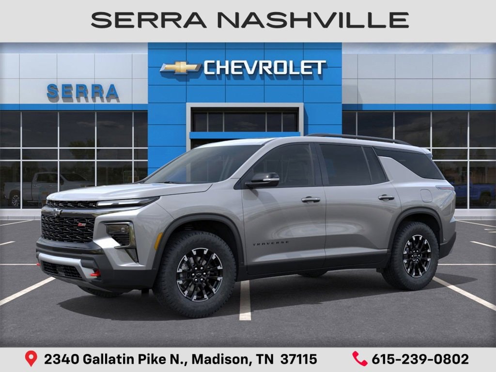 2026 Chevrolet Traverse Z71 For sale at Serra Chevrolet Nashville - Serra Nashville has the largest selection of the new Chevrolet Traverse in Nashville. This vehicle is Sterling Gray Metallic and well equipped with Driver Confidence Package (HD Surround Vision, Key Card, Power Outlet, Rear Camera Mirror, Rear Pedestrian Alert, and Traffic Sign Recognition), Floor Liner Package (1st and 2nd Row All-Weather Floor Liners, 3rd Row All-Weather Floor Liner, and Integrated Cargo Liner), AWD, 3rd row seats: split-bench, 4-Way Manual Front Passenger Seat Adjuster, 4-Wheel Disc Brakes, 6 Speakers, 6-Speaker Audio System Feature, 8-Way Power Driver Seat Adjuster, ABS brakes, Air Conditioning, Alloy wheels, AM/FM radio: SiriusXM with 360L, Apple CarPlay/Android Auto, Auto High-beam Headlights, Automatic temperature control, Brake assist, Child-Seat-Sensing Airbag, Compass, Delay-off headlights, Driver door bin, Driver vanity mirror, Dual front impact airbags, Dual front side impact airbags, Electronic Stability Control, Emergency communication system: OnStar, Evotex Seat Trim, Four wheel independent suspension, Front anti-roll bar, Front Bucket Seats, Front Center Armrest, Front dual zone A/C, Front reading lights, Fully automatic headlights, Heated door mirrors, Heated Driver and Front Passenger Seats, Heated front seats, Heated steering wheel, Illuminated entry, Low tire pressure warning, Navigation System, Occupant sensing airbag, Outside temperature display, Overhead airbag, Overhead console, Panic alarm, Passenger door bin, Passenger vanity mirror, Power door mirrors, Power driver seat, Power Dual Glass Panoramic Sliding Sunroof, Power Liftgate, Power steering, Power windows, Radio data system, Radio: : Audio System w/17.7 Diagonal Display, Rear air conditioning, Rear anti-roll bar, Rear reading lights, Rear window defroster, Rear window wiper, Remote keyless entry, Security system, SiriusXM with 360L Trial Subscription, Speed control, Speed-sensing steering, Spoiler, Steering wheel mounted audio controls, Tachometer, Telescoping steering wheel, Tilt steering wheel, Traction control, Trip computer, Turn signal indicator mirrors, Variably intermittent wipers, Voltmeter, and Wheels: : 18 High Gloss Black Painted Aluminum.