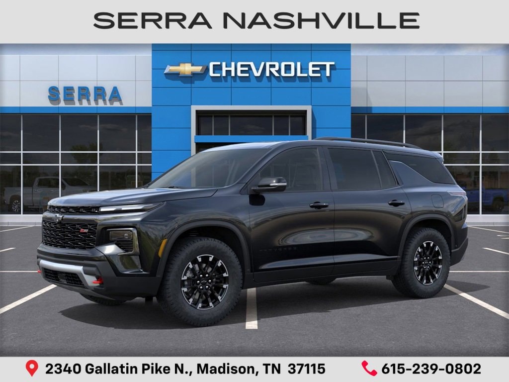 2026 Chevrolet Traverse Z71 For sale at Serra Chevrolet Nashville - Serra Nashville has the largest selection of the new Chevrolet Traverse in Nashville. This vehicle is Mosaic Black Metallic and well equipped with Driver Confidence Package (HD Surround Vision, Key Card, Power Outlet, Rear Camera Mirror, Rear Pedestrian Alert, and Traffic Sign Recognition), Floor Liner Package (1st and 2nd Row All-Weather Floor Liners, 3rd Row All-Weather Floor Liner, and Integrated Cargo Liner), Preferred Equipment Group 2Z7, AWD, 3rd row seats: split-bench, 4-Way Manual Front Passenger Seat Adjuster, 4-Wheel Disc Brakes, 6 Speakers, 6-Speaker Audio System Feature, 8-Way Power Driver Seat Adjuster, ABS brakes, Air Conditioning, Alloy wheels, AM/FM radio: SiriusXM with 360L, Apple CarPlay/Android Auto, Auto High-beam Headlights, Automatic temperature control, Brake assist, Child-Seat-Sensing Airbag, Compass, Delay-off headlights, Driver door bin, Driver vanity mirror, Dual front impact airbags, Dual front side impact airbags, Electronic Stability Control, Emergency communication system: OnStar, Evotex Seat Trim, Four wheel independent suspension, Front anti-roll bar, Front Bucket Seats, Front Center Armrest, Front dual zone A/C, Front reading lights, Fully automatic headlights, Heated door mirrors, Heated Driver and Front Passenger Seats, Heated front seats, Heated steering wheel, Illuminated entry, Low tire pressure warning, Navigation System, Occupant sensing airbag, Outside temperature display, Overhead airbag, Overhead console, Panic alarm, Passenger door bin, Passenger vanity mirror, Power door mirrors, Power driver seat, Power Dual Glass Panoramic Sliding Sunroof, Power Liftgate, Power steering, Power windows, Radio data system, Radio: : Audio System w/17.7 Diagonal Display, Rear air conditioning, Rear anti-roll bar, Rear reading lights, Rear window defroster, Rear window wiper, Remote keyless entry, Security system, SiriusXM with 360L Trial Subscription, Speed control, Speed-sensing steering, Spoiler, Steering wheel mounted audio controls, Tachometer, Telescoping steering wheel, Tilt steering wheel, Traction control, Trip computer, Turn signal indicator mirrors, Variably intermittent wipers, Voltmeter, and Wheels: : 18 High Gloss Black Painted Aluminum.