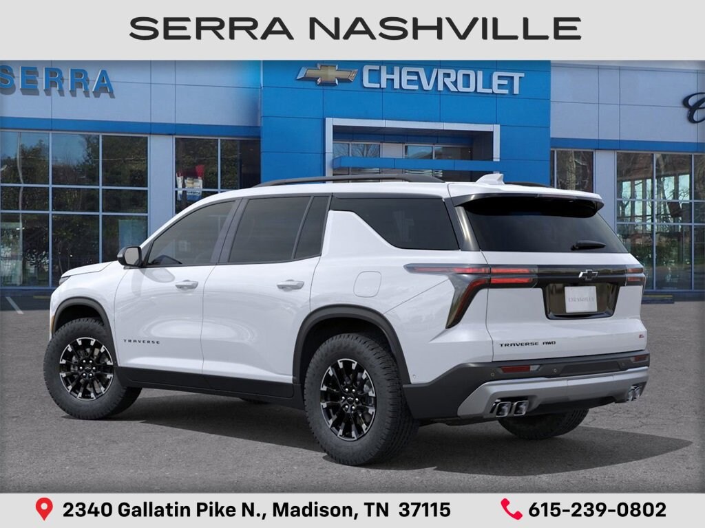 2026 Chevrolet Traverse Z71 For sale at Serra Chevrolet Nashville - Serra Nashville has the largest selection of the new Chevrolet Traverse in Nashville. This vehicle is Polar White Tricoat and well equipped with Driver Confidence Package (HD Surround Vision, Key Card, Power Outlet, Rear Camera Mirror, Rear Pedestrian Alert, and Traffic Sign Recognition), Floor Liner Package (LPO) (1st & 2nd Row All-Weather Floor Liners (LPO), 3rd Row All-Weather Floor Liner (LPO), and Integrated Cargo Liner (LPO)), Preferred Equipment Group 2Z7, AWD, 3 Years SiriusXM, 3rd row seats: split-bench, 4-Way Manual Front Passenger Seat Adjuster, 4-Wheel Disc Brakes, 6 Speakers, 6-Speaker Audio System Feature, 8-Way Power Driver Seat Adjuster, ABS brakes, Air Conditioning, Alloy wheels, AM/FM radio: SiriusXM with 360L, Apple CarPlay/Android Auto, Auto High-beam Headlights, Automatic temperature control, Brake assist, Child-Seat-Sensing Airbag, Compass, Delay-off headlights, Driver door bin, Driver vanity mirror, Dual front impact airbags, Dual front side impact airbags, Electronic Stability Control, Emergency communication system: OnStar, Evotex Seat Trim, Four wheel independent suspension, Front anti-roll bar, Front Bucket Seats, Front Center Armrest, Front dual zone A/C, Front reading lights, Fully automatic headlights, Heated door mirrors, Heated Driver & Front Passenger Seats, Heated front seats, Heated steering wheel, Illuminated entry, Low tire pressure warning, Navigation System, Occupant sensing airbag, Outside temperature display, Overhead airbag, Overhead console, Panic alarm, Passenger door bin, Passenger vanity mirror, Power door mirrors, Power driver seat, Power Dual Glass Panoramic Sliding Sunroof, Power Liftgate, Power steering, Power windows, Radio data system, Radio: Audio System w/17.7 Diagonal Display, Rear air conditioning, Rear anti-roll bar, Rear reading lights, Rear window defroster, Rear window wiper, Remote keyless entry, Security system, SiriusXM w/360L Trial Subscription, Speed control, Speed-sensing steering, Spoiler, Steering wheel mounted audio controls, Tachometer, Telescoping steering wheel, Tilt steering wheel, Traction control, Trip computer, Turn signal indicator mirrors, Variably intermittent wipers, Voltmeter, and Wheels: 18 High Gloss Black Painted Aluminum.