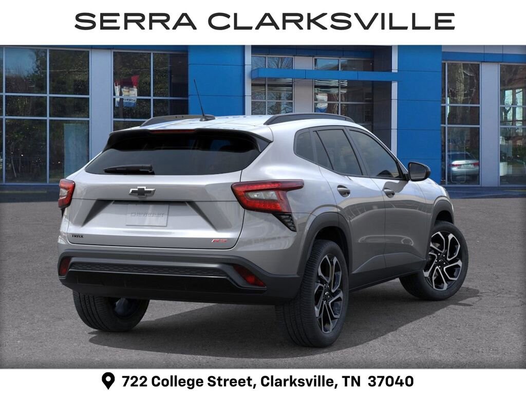 Sterling 2026 Chevrolet Trax 2RS For sale at Serra Chevrolet Clarksville is well equipped: 2-Way Adjustable Front Head Restraints, 2-Way Power Driver Lumbar Seat Adjuster, 3.50 Final Drive Axle Ratio, 4-Way Manual Front Passenger Seat Adjuster, 4-Wheel Disc Brakes, 6 Speakers, 6-Speaker Audio System Feature, 8-Way Power Driver Seat Adjuster, ABS brakes, Air Conditioning, Alloy wheels, AM/FM radio: SiriusXM, Auto High-beam Headlights, Automatic temperature control, Brake assist, Bumpers: body-color, Compass, Delay-off headlights, Driver door bin, Driver vanity mirror, Dual front impact airbags, Dual front side impact airbags, Electronic Stability Control, Emergency communication system: OnStar One Essentials, Evotex Seat Trim, Exterior Parking Camera Rear, Front anti-roll bar, Front Bucket Seats, Front Center Armrest, Front reading lights, Front wheel independent suspension, Fully automatic headlights, Heated door mirrors, Heated Driver and Front Passenger Seats, Heated front seats, Heated steering wheel, Illuminated entry, Leather steering wheel, Low tire pressure warning, Occupant sensing airbag, Outside temperature display, Overhead airbag, Overhead console, Panic alarm, Passenger door bin, Passenger vanity mirror, Power door mirrors, Power driver seat, Power steering, Power windows, Premium audio system: Chevrolet Infotainment 3, Radio data system, Radio: AM/FM Stereo Audio System, Rear window defroster, Rear window wiper, Remote keyless entry, Security system, SiriusXM Trial Subscription, Speed control, Split folding rear seat, Spoiler, Sport steering wheel, Steering wheel mounted audio controls, Tachometer, Telescoping steering wheel, Tilt steering wheel, Traction control, Trip computer, Variably intermittent wipers, Wheels: 19 Black-Painted Machined Aluminum, and Wireless Apple CarPlay/Wireless Android Auto.