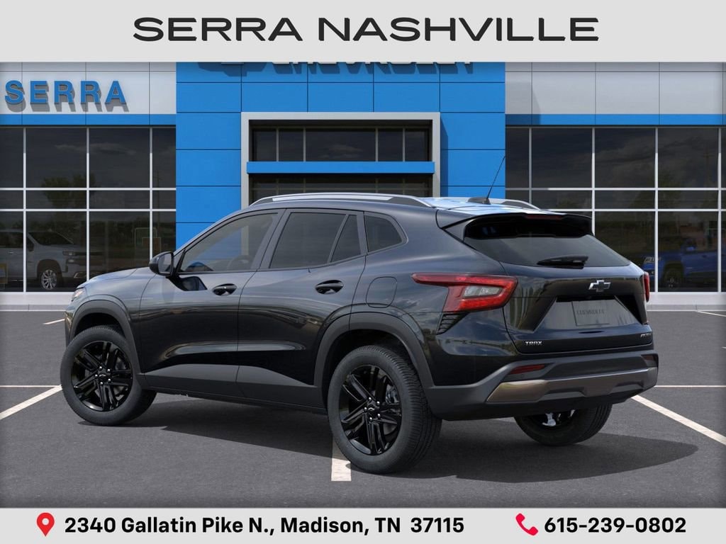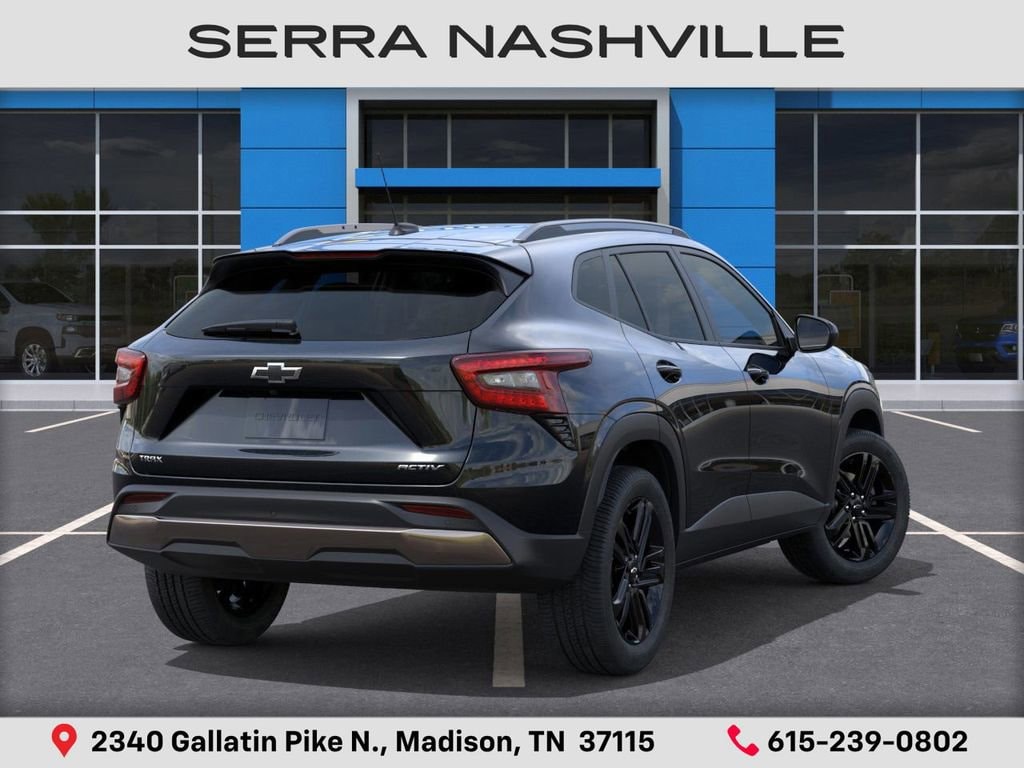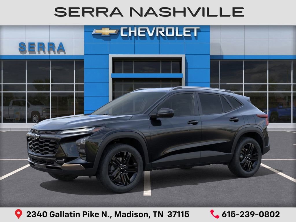$2,064 off MSRP! 2026 Chevrolet Trax ACTIV For sale at Serra Chevrolet Nashville - Serra Nashville has the largest selection of the new Chevrolet Trax in Nashville. This vehicle is Mosaic Black Metallic and well equipped with Driver Confidence Package (Adaptive Cruise Control, Lane Change Alert with Side Blind Zone Alert, Rear Cross Traffic Alert, and Rear Park Assist), Preferred Equipment Group 1SA, 2-Way Adjustable Front Head Restraints, 2-Way Power Driver Lumbar Seat Adjuster, 3 Years SiriusXM, 3.50 Final Drive Axle Ratio, 4-Way Manual Front Passenger Seat Adjuster, 4-Wheel Disc Brakes, 6 Speakers, 6-Speaker Audio System Feature, 8-Way Power Driver Seat Adjuster, ABS brakes, Air Conditioning, Alloy wheels, AM/FM radio: SiriusXM, Auto High-beam Headlights, Automatic temperature control, Brake assist, Bumpers: body-color, Compass, Delay-off headlights, Driver door bin, Driver vanity mirror, Dual front impact airbags, Dual front side impact airbags, Electronic Stability Control, Emergency communication system: OnStar One Essentials, Evotex Seat Trim, Exterior Parking Camera Rear, Front and Rear Jet Black All-Weather Floor Liners, Front anti-roll bar, Front Bucket Seats, Front Center Armrest, Front reading lights, Front wheel independent suspension, Fully automatic headlights, Heated door mirrors, Heated Driver and Front Passenger Seats, Heated front seats, Heated steering wheel, Illuminated entry, Leather steering wheel, Low tire pressure warning, Occupant sensing airbag, Outside temperature display, Overhead airbag, Overhead console, Panic alarm, Passenger door bin, Passenger vanity mirror, Power door mirrors, Power driver seat, Power steering, Power windows, Premium audio system: Chevrolet Infotainment 3, Radio data system, Radio: AM/FM Stereo Audio System, Rear window defroster, Rear window wiper, Remote keyless entry, Security system, SiriusXM Trial Subscription, Speed control, Split folding rear seat, Spoiler, Steering wheel mounted audio controls, Tachometer, Telescoping steering wheel, Tilt steering wheel, Traction control, Trip computer, Variably intermittent wipers, Wheels: 18 Black-Painted Aluminum, and Wireless Apple CarPlay/Wireless Android Auto.