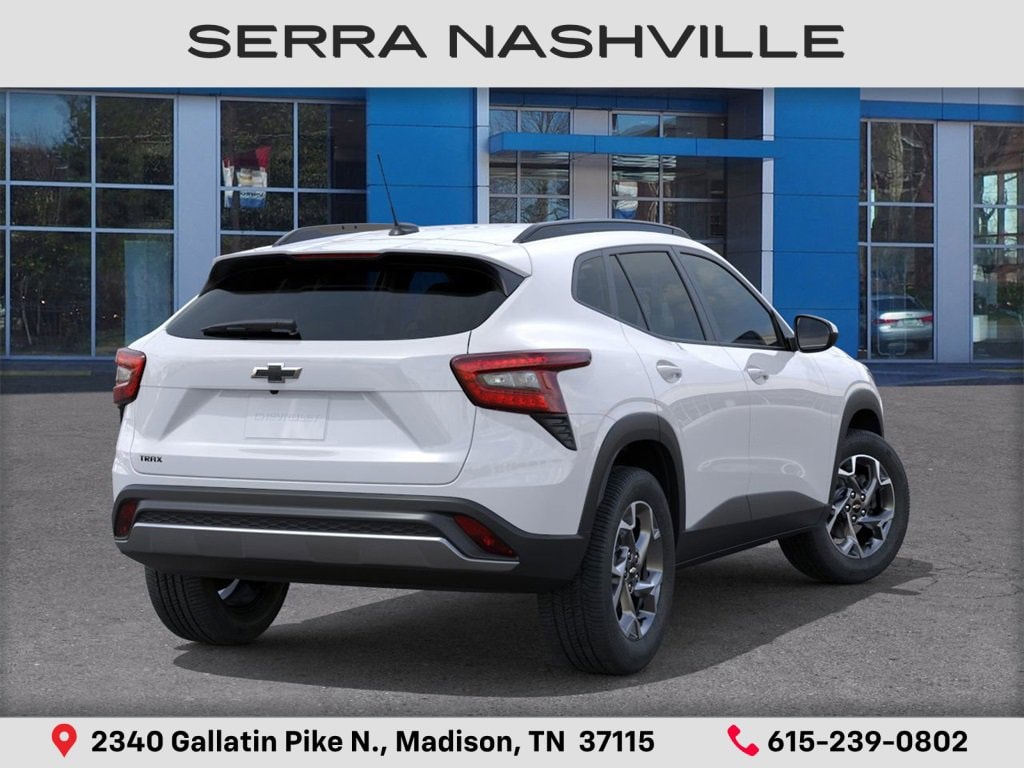 $1,306 off MSRP! 2026 Chevrolet Trax LT For sale at Serra Chevrolet Nashville - Serra Nashville has the largest selection of the new Chevrolet Trax in Nashville. This vehicle is Summit White and well equipped with Blackout Package (Black Nameplate, Black Wheel Center Caps with Black Bowtie, and Front and Rear Black Bowtie Emblems), Driver Confidence Package (Adaptive Cruise Control, Lane Change Alert with Side Blind Zone Alert, Rear Cross Traffic Alert, and Rear Park Assist), LT Convenience Package (Front Doors Keyless Open, Heated Driver and Front Passenger Seats, Heated Power-Adjustable Outside Mirrors, Heated Steering Wheel, and Wrapped Steering Wheel), Preferred Equipment Group 1LT, 2-Way Adjustable Front Head Restraints, 3 Years SiriusXM, 3.50 Final Drive Axle Ratio, 4-Way Manual Front Passenger Seat Adjuster, 4-Wheel Disc Brakes, 6 Speakers, 6-Speaker Audio System Feature, 6-Way Manual Driver Seat Adjuster, ABS brakes, Air Conditioning, Alloy wheels, AM/FM radio: SiriusXM, Auto High-beam Headlights, Automatic temperature control, Brake assist, Bumpers: body-color, Cloth/Evotex Seat Trim, Compass, Delay-off headlights, Driver door bin, Driver vanity mirror, Dual front impact airbags, Dual front side impact airbags, Electronic Stability Control, Emergency communication system: OnStar One Essentials, Exterior Parking Camera Rear, Front and Rear Jet Black All-Weather Floor Liners, Front anti-roll bar, Front Bucket Seats, Front Center Armrest, Front reading lights, Front wheel independent suspension, Fully automatic headlights, Illuminated entry, Low tire pressure warning, Occupant sensing airbag, Outside temperature display, Overhead airbag, Overhead console, Panic alarm, Passenger door bin, Passenger vanity mirror, Power door mirrors, Power steering, Power windows, Premium audio system: Chevrolet Infotainment 3, Radio data system, Radio: AM/FM Stereo Audio System, Rear window defroster, Rear window wiper, Remote keyless entry, Security system, SiriusXM Trial Subscription, Speed control, Split folding rear seat, Spoiler, Steering wheel mounted audio controls, Tachometer, Telescoping steering wheel, Tilt steering wheel, Traction control, Trip computer, Variably intermittent wipers, Wheels: 17 Inch Gray-Painted Machined Aluminum Alloy, and Wireless Apple CarPlay/Wireless Android Auto.