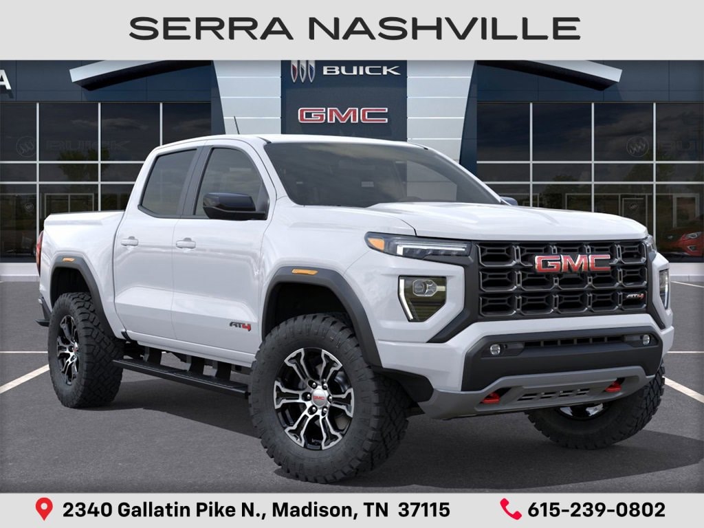 $3,569 off MSRP! Summit White 2025 GMC Canyon AT4 For sale at Serra GMC Nashville and well equipped: Canyon Safety Plus Package (Blind Zone Steering Assist w/Trailering, Rear Cross Traffic Braking, and Ultrasonic Rear Park Assist), Preferred Equipment Group 4SG (120-Volt Bed Mounted Power Outlet, 2 Rear USB Ports in Center Console (Charge-Only), 8-Way Power Driver Seat Adjuster, Automatic Emergency Braking, Canyon Pro Safety, Driver & Front Passenger Illuminated Visors, Dual-Zone Auto Climate Control Air Conditioning, EZ-Lift & Lower Tailgate, Following Distance Indicator, Forward Collision Alert, Front LED Fog Lamps, Front Pedestrian & Bicyclist Braking, Heated Driver & Front Passenger Seats, Inside Rear-View Auto-Dimming Mirror, IntelliBeam Automatic High Beam On/Off, Interior Overhead Courtesy Light w/Dual Reading Lamp, Lane Keep Assist w/Lane Departure Warning, MultiStow Tailgate Storage Compartment, Power Driver Lumbar Control Seat Adjuster, Rear of Console 120-Volt Power Outlet, Remote Vehicle Starter System, Tailgate Keyed Cylinder Lock, and Tilt & Telescopic Manual Steering Column), 2 1st Row USB Charge/Data Ports, 3 Years SiriusXM, 3.42 Rear Axle Ratio, 4-Way Manual Front Passenger Seat Adjuster, 4-Wheel Disc Brakes, 6 Speakers, 6-Speaker Audio System Feature, ABS brakes, Air Conditioning, Alloy wheels, AM/FM radio, Apple CarPlay/Android Auto, Auto High-beam Headlights, Auto-dimming Rear-View mirror, Automatic Stop/Start, Automatic temperature control, Black Assist Step (LPO), Brake assist, Bumpers: body-color, Cloth/CoreTec Seat Trim, Compass, Delay-off headlights, Driver door bin, Driver Mode Selector, Driver vanity mirror, Dual front impact airbags, Dual front side impact airbags, Electronic Stability Control, Emergency communication system: OnStar, Front anti-roll bar, Front Bucket Seats, Front Center Armrest, Front dual zone A/C, Front fog lights, Front Passenger Seatback Map Pocket, Front reading lights, Front wheel independent suspension, Heated door mirrors, Heated front seats, Illuminated entry, Integrated Trailer Brake Controller, Low tire pressure warning, Navigation System, Occupant sensing airbag, Off-Road Suspension, Outside temperature display, Overhead airbag, Overhead console, Panic alarm, Passenger door bin, Passenger vanity mirror, Power door mirrors, Power driver seat, Power steering, Power windows, Radio data system, Radio: 11.3 Diagonal Premium GMC Infotainment Sys, Rear reading lights, Rear step bumper, Rear window defroster, Remote keyless entry, Security system, SiriusXM w/360L, Speed control, Speed-sensing steering, Split folding rear seat, Spray-On Bedliner w/GMC Logo, Steering wheel mounted audio controls, Stop/Start System Disable Button Engine Control, Tachometer, Telescoping steering wheel, Tilt steering wheel, Traction control, Trip computer, Variably intermittent wipers, Wheels: 18 x 8.5 Dark Gray Machined Finish Alum, and Wireless Apple CarPlay/Wireless Android Auto. Grounded Demo