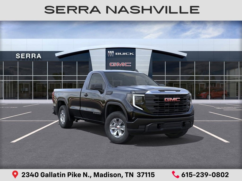 $5,256 off MSRP! 2025 GMC Sierra 1500 Pro For sale at Serra GMC Nashville - Serra Nashville has the largest selection of the new GMC Sierra 1500 in Nashville. This vehicle is Onyx Black and well equipped with Convenience Package (Deep-Tinted Glass, Electric Rear-Window Defogger, EZ Lift Power Lock & Release Tailgate, and LED Cargo Area Lighting), Preferred Equipment Group 1SA (2 Charge/Data USB Ports, 220 Amp Alternator, Chrome Header w/Flat Black Grille Insert Bars, Front Frame-Mounted Black Recovery Hooks, HD Rear Vision Camera, OnStar Services Capable, Power Door Locks, Power Front Windows w/Driver Express Up/Down, Power Front Windows w/Passenger Express Down, Push Button Start, Remote Keyless Entry, Solar Absorbing Tinted Glass, and Wi-Fi Hotspot Capable), Pro Value Package, Standard Suspension Package, Trailering Package (Hitch Guidance), 10-Speed Automatic, 4WD, Jet Black Vinyl, 120-Volt Bed Mounted Power Outlet, 120-Volt Interior Power Outlet, 170 Amp Alternator, 2 Speakers, 2-Speaker Audio System Feature, 4-Way Manual Driver Seat Adjuster, 4-Way Manual Passenger Seat Adjuster, 4-Wheel Disc Brakes, ABS brakes, Air Conditioning, AM/FM radio, Apple CarPlay/Android Auto, Auto High-beam Headlights, Auto-Locking Rear Differential, Automatic Emergency Braking, Auxiliary External Transmission Oil Cooler, Black (Semi-Gloss) Front Bumper, Black (Semi-Gloss) Rear Bumper, Black Assist Steps, Brake assist, Buckle to Drive, Bumpers: chrome, Compass, Delay-off headlights, Driver door bin, Dual front impact airbags, Dual front side impact airbags, Electronic Stability Control, Emergency communication system: OnStar, External Engine Oil Cooling, Following Distance Indicator, Forward Collision Alert, Front 40/20/40 Split-Bench Seat, Front anti-roll bar, Front Center Armrest w/Storage, Front Pedestrian Braking, Front reading lights, Front wheel independent suspension, Fully automatic headlights, GMC MultiPro Tailgate, Heated door mirrors, Illuminated entry, Integrated Trailer Brake Controller, IntelliBeam Automatic High Beam On/Off, Lane Keep Assist w/Lane Departure Warning, Low tire pressure warning, Occupant sensing airbag, Outside temperature display, Overhead airbag, Overhead console, Panic alarm, Passenger door bin, Passenger vanity mirror, Power door mirrors, Power steering, Power windows, Radio data system, Radio: GMC Infotainment Audio System, Rear reading lights, Rear step bumper, Remote keyless entry, Speed control, Speed-sensing steering, Spray-On Pickup Bedliner, Tachometer, Tilt steering wheel, Traction control, Trip computer, Upfitter Switch Kit (5), Variably intermittent wipers, Vinyl Seat Trim, Voltmeter, Wheels: 17 x 8 Bright Silver Painted Aluminum, Wheels: 17 x 8 Silver Painted Steel, and Wireless Apple CarPlay/Wireless Android Auto.